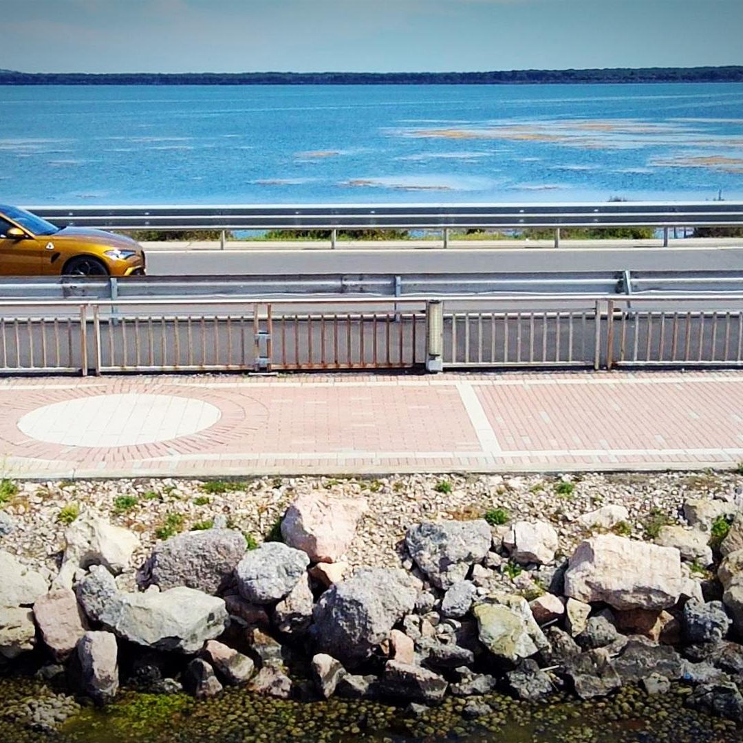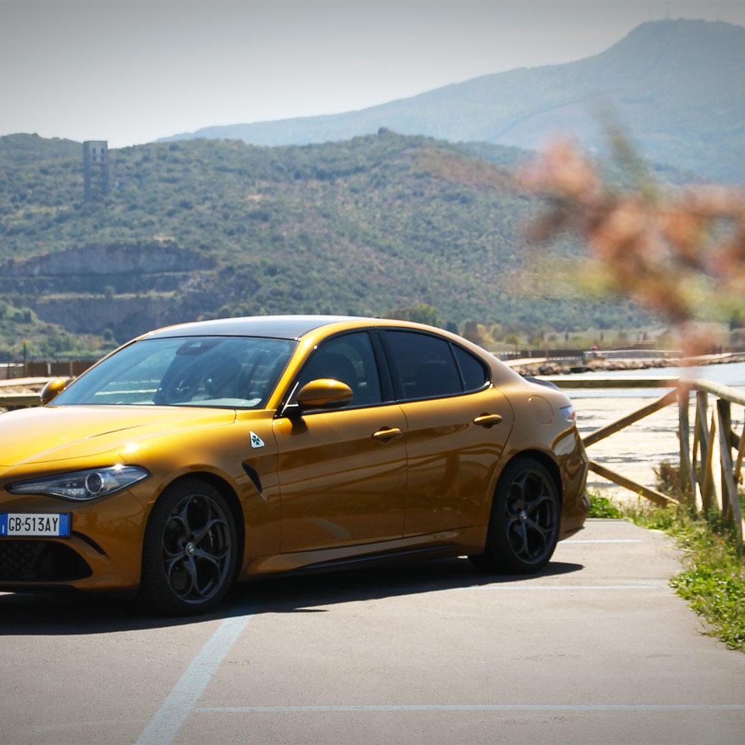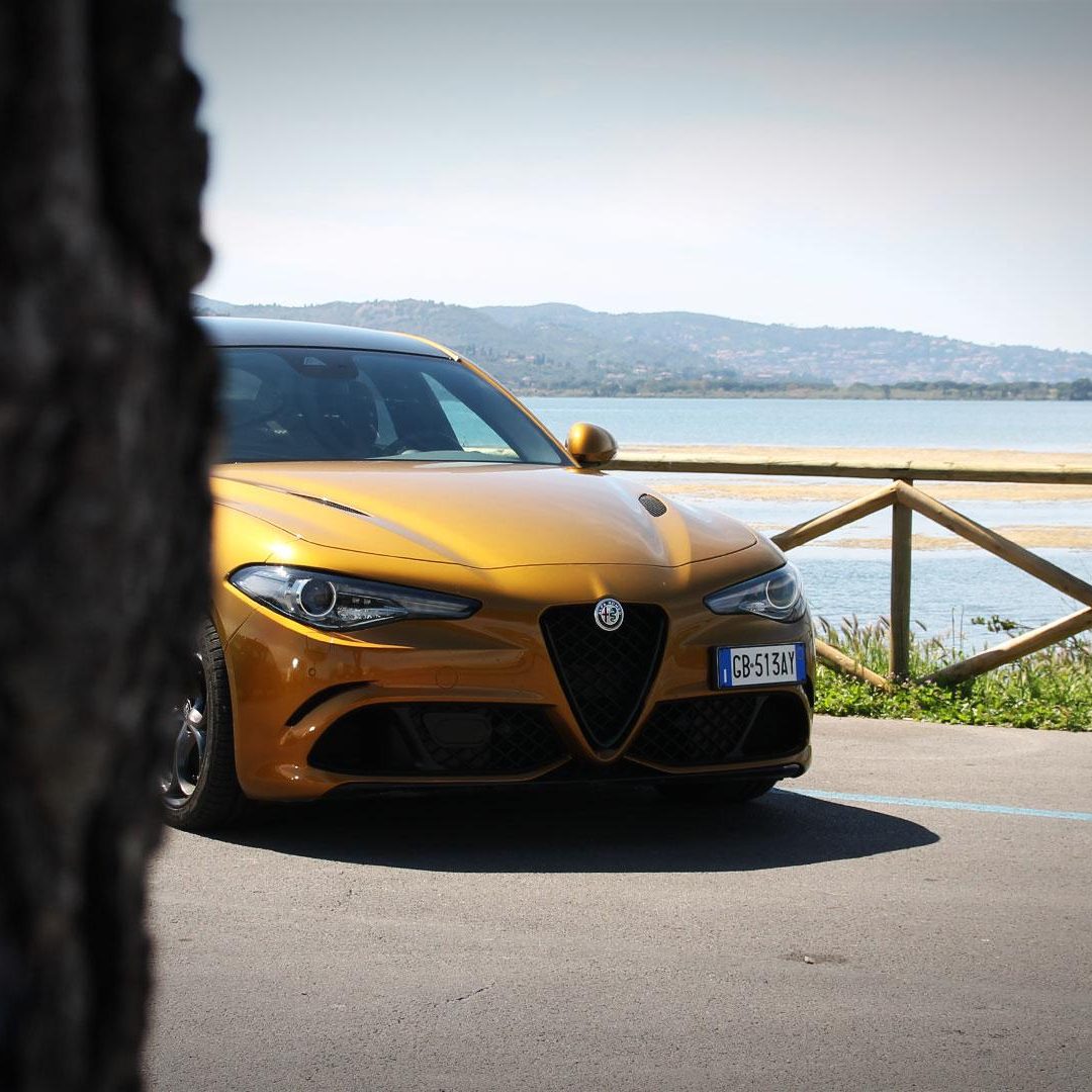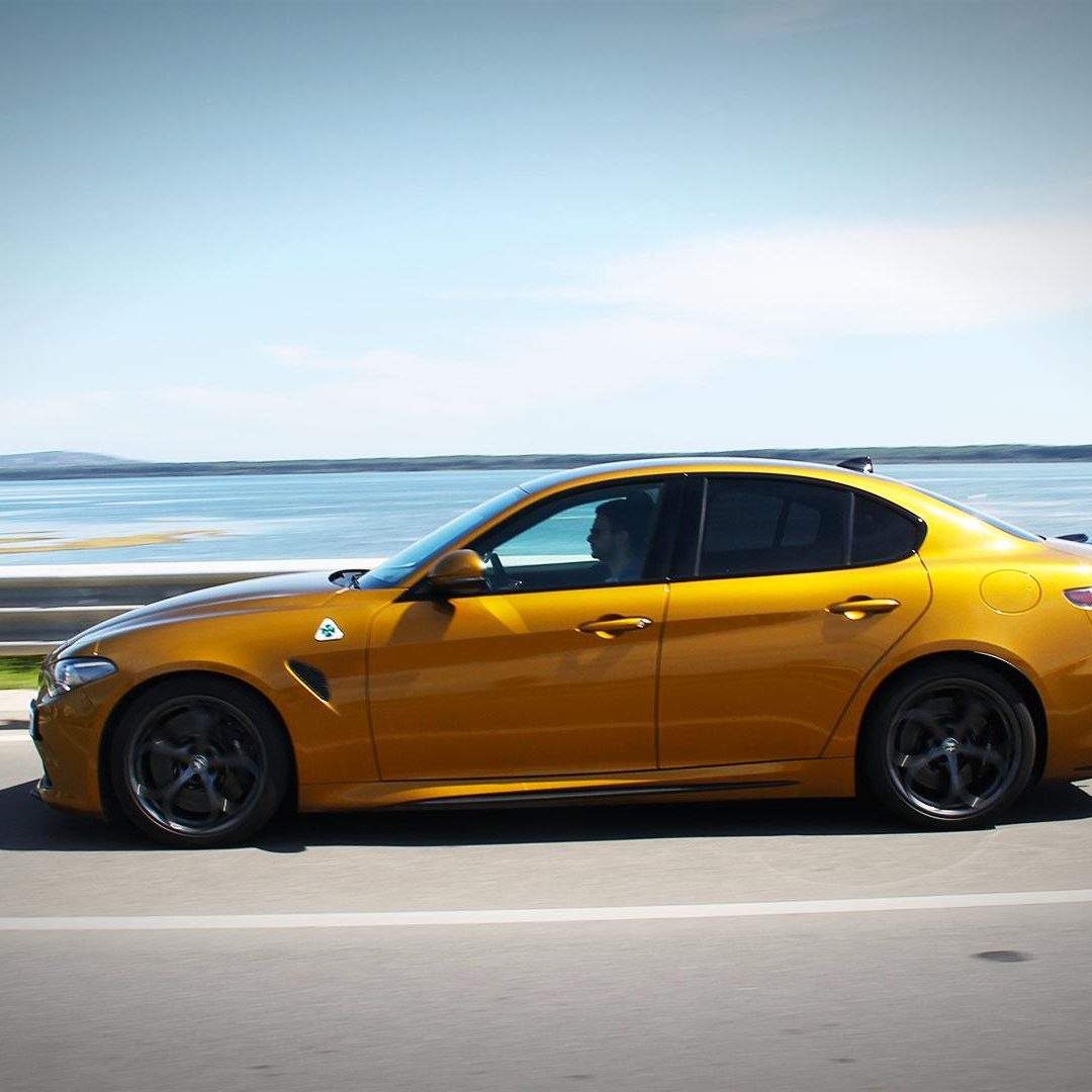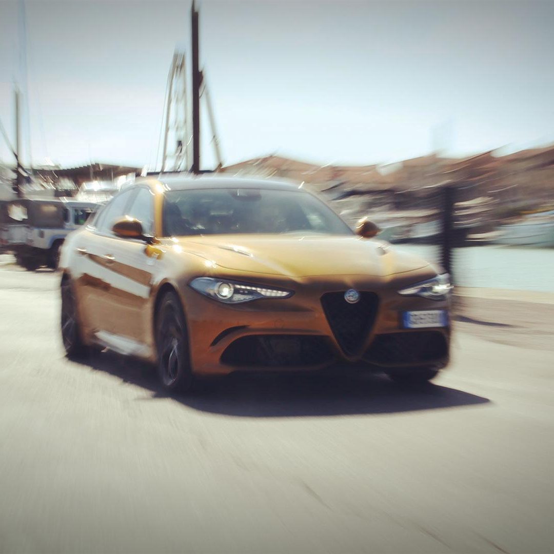 Ma il protagonista assoluto dell’esperienza di guida di Alfa Romeo Giulia Quadrifoglio è in maniera indiscussa uno ed uno solamente: il motore. Si tratta di un’unità piuttosto piccola (solo 2.9 litri di cubatura), ma non per questo non esuberante. Tutt’altro. Il biturbo italiano è un mare in burrasca. E ci pensano i suoi numero a dirlo: 510 CV di potenza, 600 Nm di coppia, da 0 a 100 km/h in soli 3.9 secondi e 307 km/h di velocità massima. Valori impressionanti e che vengono trasmessi alle ruote posteriori da un cambio automatico a 8 rapporti capace di cambiare marcia in soli 150 millisecondi (in modalità Race). E che vi assicuriamo essere un vero e proprio prodigio d’ingegneria per rapidità di passaggio marcia e per fluidità d’innesto. E lo scarico Akrapovic non manca di demarcare, con tutta una serie di scoppiettii, innesti e rilasci, nonché di esaltare il timbro vocale del propulsore. Soli 1.695 kg di peso in ordine di marcia (ripartiti al 50:50 tra davanti e dietro) e uno schema sospensioni AlfaTM Link a quadrilateri sovrapposti con asse di sterzo semi-virtuale davanti e AlfaTM Link con braccio verticale dietro completano la caratterizzazione tecnica di questa vettura, che monta cerchi da 19” gommati 245/35 all’anteriore e 285/30 al posteriore, e che, nella versione da noi provata, sfoggiano alle loro spalle un impianto frenante carboceramico che davvero lascia a bocca aperta per potenza ed efficacia. Lunga 4.643 mm, larga 1.860 mm e alta 1.450 mm, nonché con un passo di 2.820 mm, Giulia Quadrifoglio (che dispone di Torque Vectoring per ripartire la coppia tra le ruote dell’assale posteriore) non sorprende solo sotto il profilo tecnico, ma anche sotto quello tecnologico. Il sistema infotainment si relaziona con gli occupanti tramite uno schermo touch da 8.8” e mette a disposizione praticamente ogni informazione e servizio, compresi Apple Car Play e Android Auto. E, ciliegina sulla torta, una quantità esagerata di dispositivi ADAS, tra cui: Lane keeping Assist, Active Blind Spot Assist, Traffic Jam Assist e Highway Assist, Intelligent Speed Control, Traffic Sign Recognition, Driver Attention Assist. Insomma: di tutto e di più.