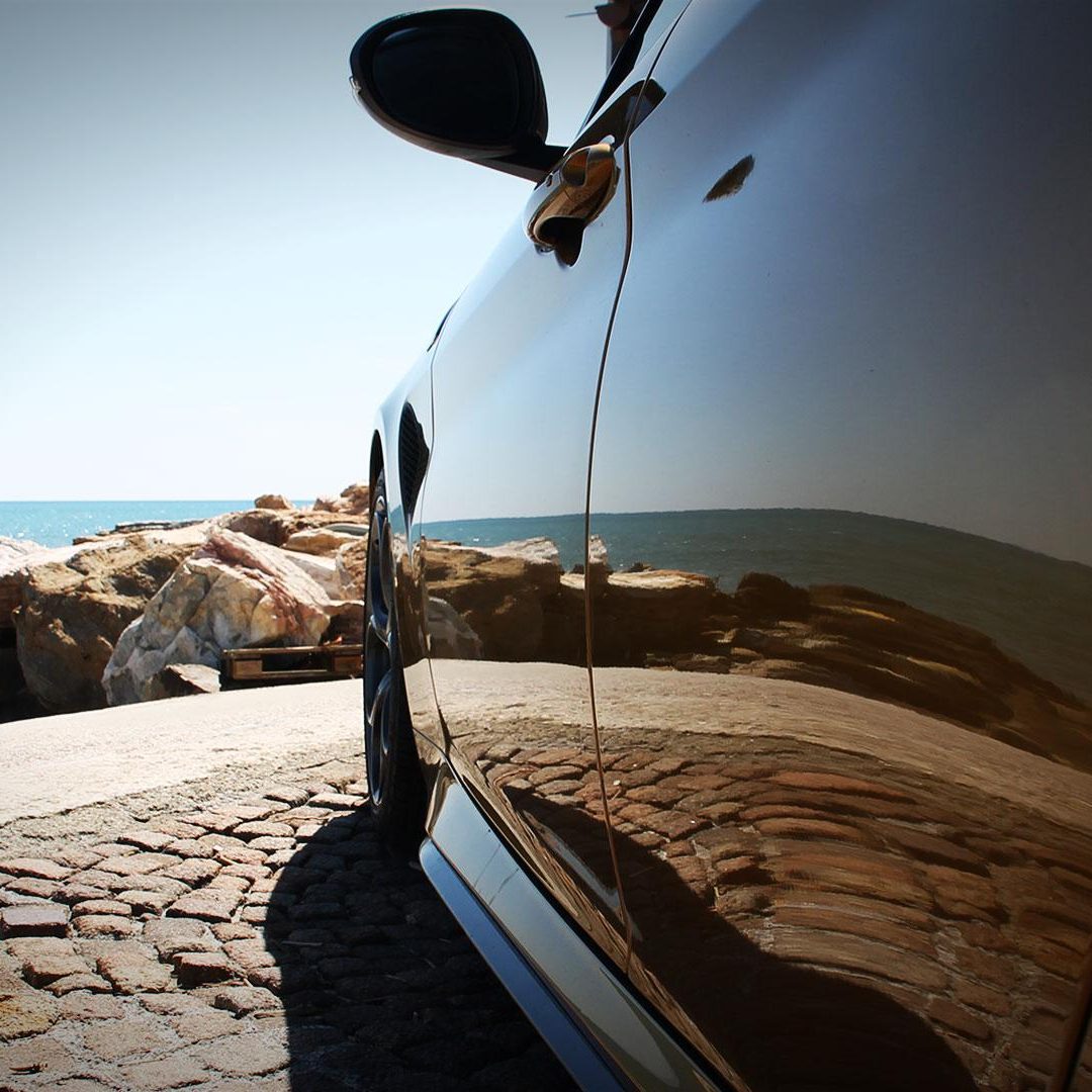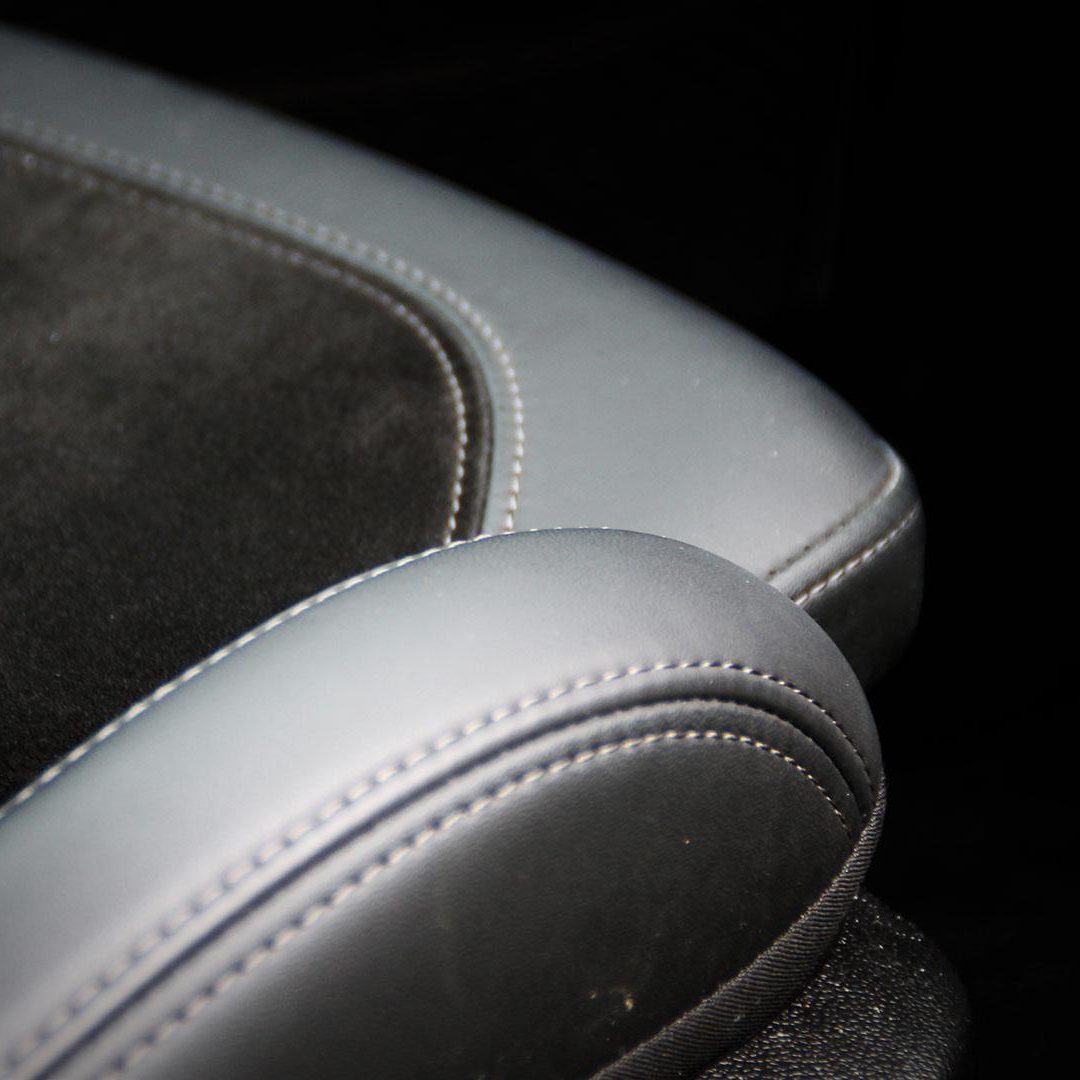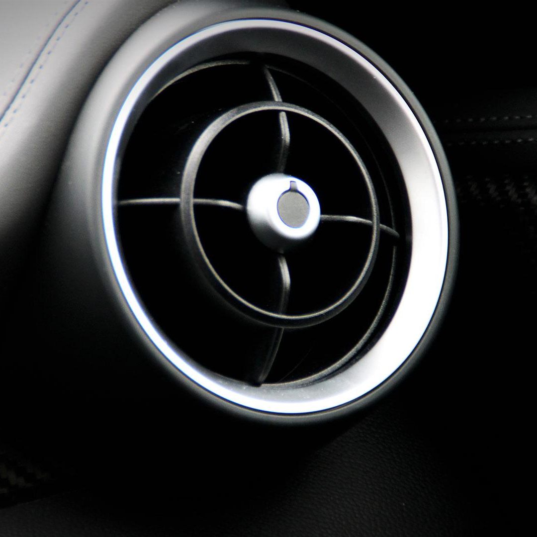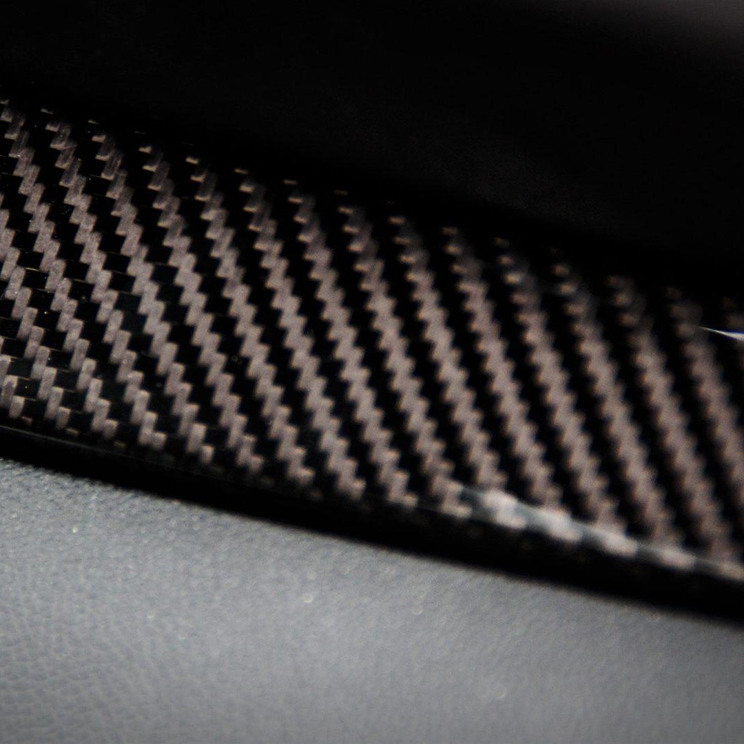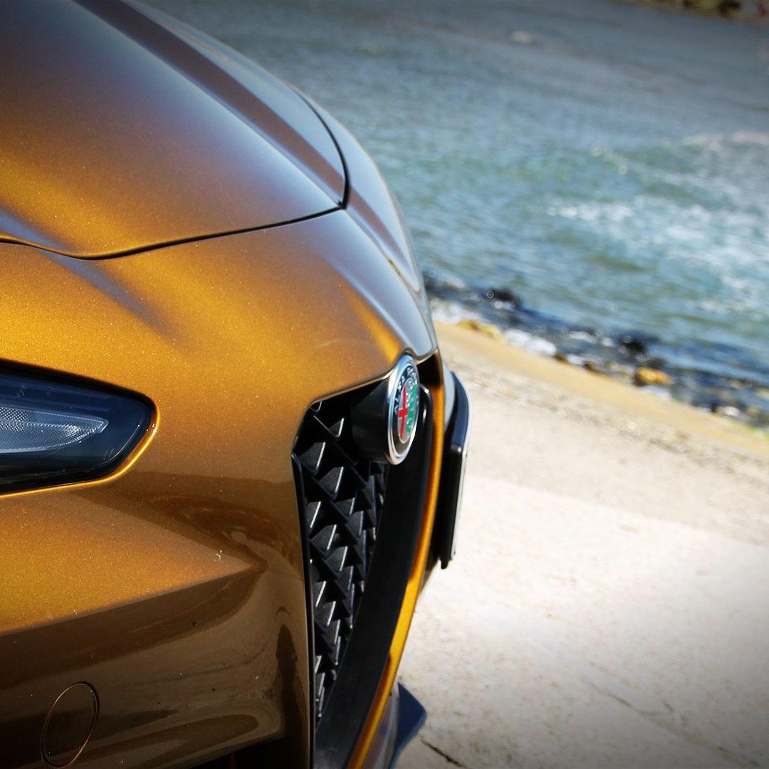 Molto ben rifinito l’ambiente interno, che mette alla vista superfici rivestite con pellami e Alcantara impreziosite da bellissime impunture a contrasto, inserti metallici e fibra di carbonio a profusione e numerosissimi vani per gli oggetti di piccole dimensioni. Nonché tanti punti per la ricarica dei device mobili. Una strumentazione che affianca elementi analogici e digitali, un volante davvero impeccabile (si potrebbe solo richiedere un po’ di spessore in più dalla corona in corrispondenza delle 9:15) con pulsante start e comandi integrati e con paddles metallici fissi alle spalle completa la caratterizzazione di un abitacolo che combina insieme eleganza e sportività e che non manca di far trasparire il logo del Quadrifoglio e il nostro bel Tricolore al fianco di sedili anteriori ampiamente regolabili. E come all’interno, anche all’esterno la fibra di carbonio la fa da padrona, tanto in elementi lasciati liberi alla vista (come superfici aerodinamiche, minigonne e tetto) quanto in quelli che lo nascondono (come cofano anteriore e bagagliaio). Insomma: una vera sportiva di razza travestita da berlina.