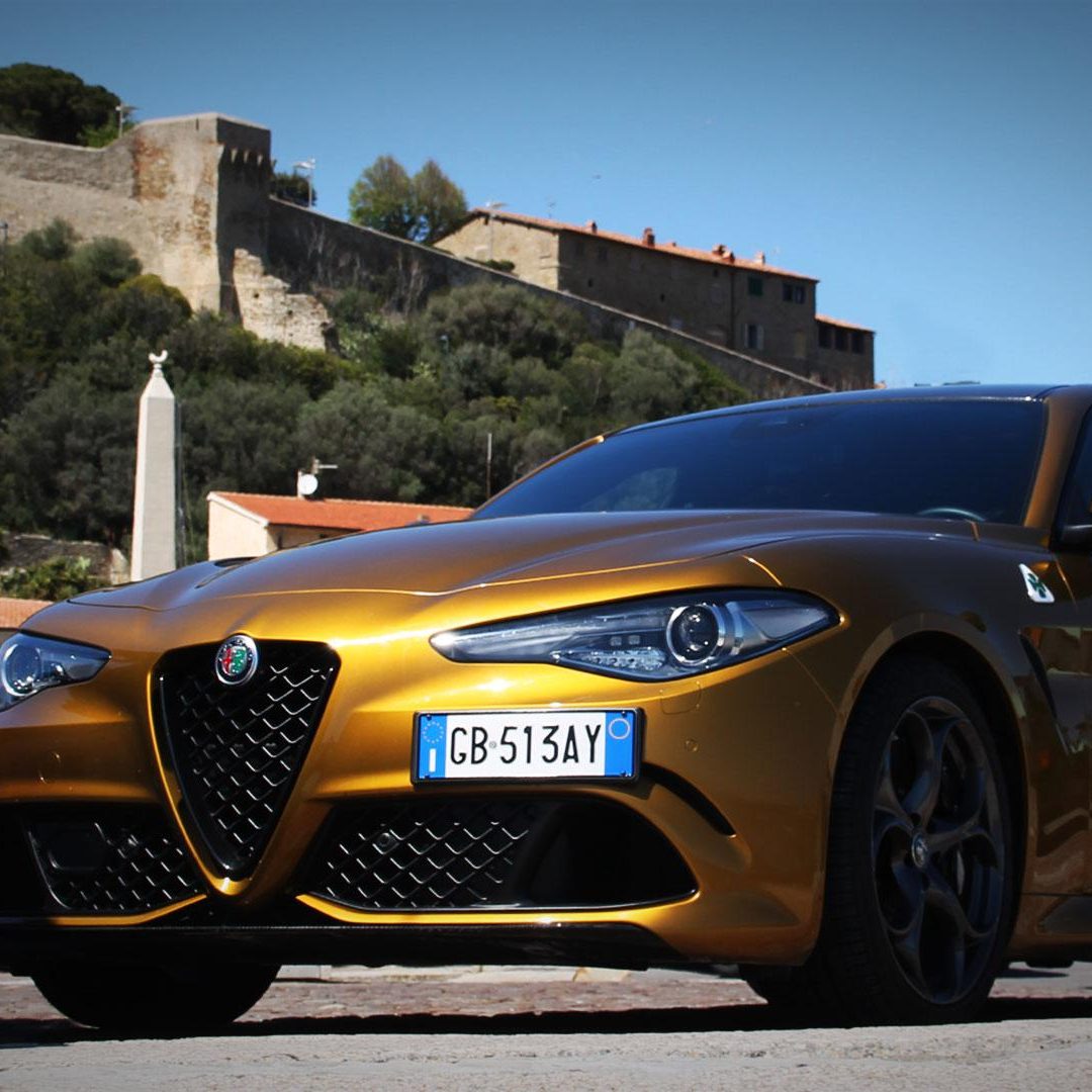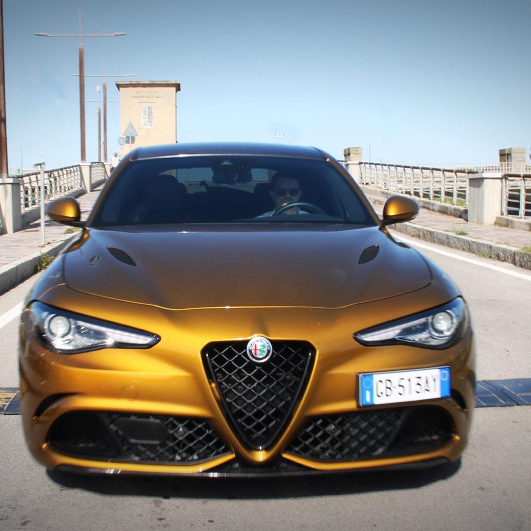 Muscolosa, sfacciata e a tratti “arrogante”. Sono forse questi i termini che meglio sintetizzano Alfa Romeo Giulia Quadrifoglio. Una vettura dal carattere marcato e dallo spirito molto trasversale che riunisce in un sol corpo caratteristiche e capacità per strizzare l’occhio ad una variegata gamma d’utenza, che si tratti della famiglia, del giovane con attitudine sportiva (ma ben capace di guidare!) o del pilota che vuole strappare il tempo in pista (ad Anagni, con variante al termine del rettilineo aperta, abbiamo girato in 1:10 – oltretutto con gomme invernali – a pochissimo dalla Ferrari F8 Tributo di Fabio Barone che era lì con noi per un test di cui vi abbiamo parlato in un articolo dedicato) ma che non disdegna di considerare la vettura per un impiego diverso che tra i cordoli (e senza rinunciare al bagagliaio grazie a 480 dm3 di vano di carico).