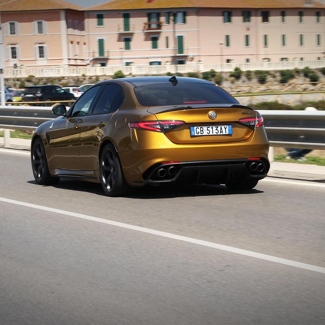 In ognuno dei driving mode selezionati questa Alfa Romeo mostra però caratteristiche comuni: il telaio è un esempio di precisione e di meccanica perfezione e l’impianto frenante (la vettura da noi provata montava il carboceramico) vi sconvolgerà i sensi per la sua potenza e la sua efficacia. Davvero uno degli impianti più potenti (se non il più potente) mai provato su un’automobile da chi vi scrive. I gruppi ottici combinano xenon a LED e vi aiutano ad affrontare le insidie della notte senza timori, mentre gli ADAS renderanno meno impegnativi i vostri trasferimenti autostradali. Un plauso anche all’abitabilità. Sì, perché la berlina sportiva del Biscione non dimentica nemmeno quella. Anche se siete in 5 e carichi di bagagli, con quest’auto viaggerete comodi sempre, grazie a sedute comode e accoglienti e a spazi davvero ampi (compresi quelli per accogliere ogni genere di oggetto che vi portate in mano o in tasca). Difficile chiedere di più ad una vettura che mette sul piatto i numeri di una supercar con motore posteriore-centrale di qualche anno fa.