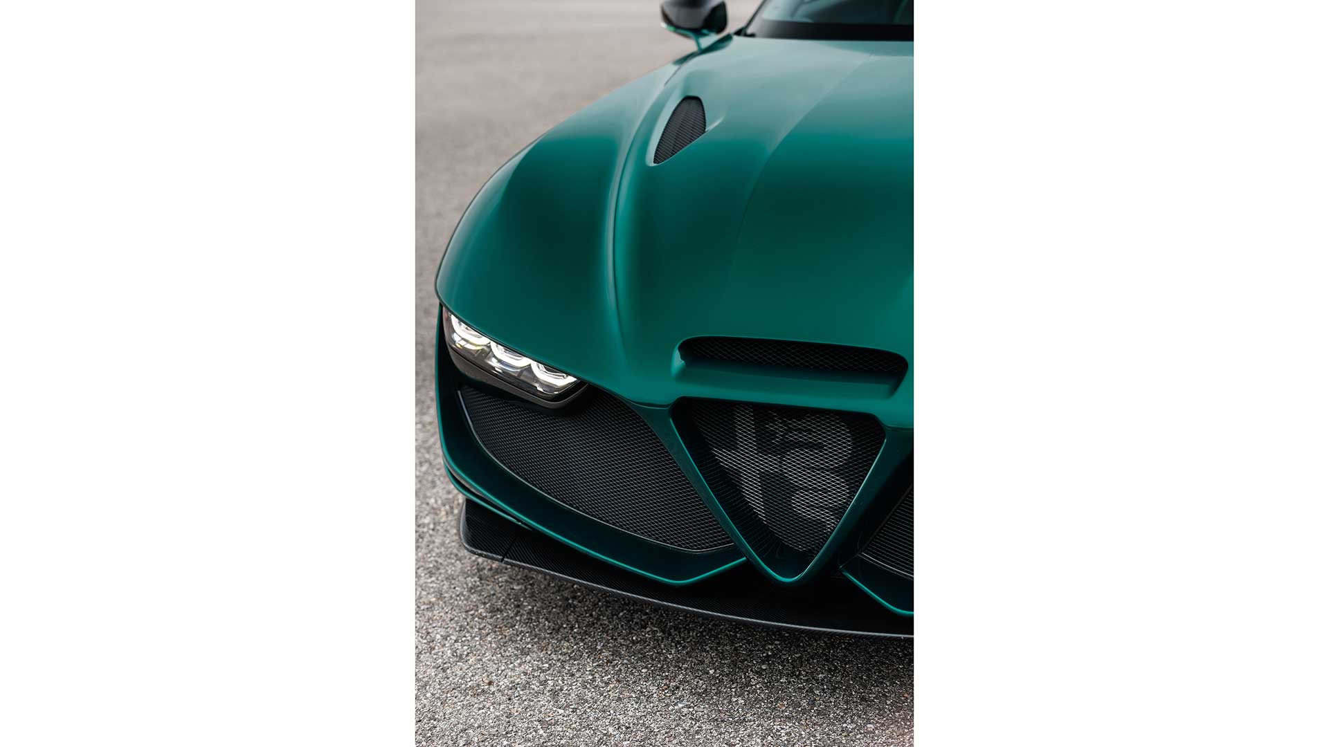 La vettura celebra una storica collaborazione che nel 2021 ha spento ben 100 candeline sulla torta: ovvero quella tra Alfa Romeo e Zagato appunto e iniziata nel 1921 con la TIPO G1, allo scopo di celebrare l’attuale produzione Alfa Romeo e il suo motore 6 cilindri (in particolar modo nella sua ultima evoluzione GTAm) con una carrozzeria due porte coupé Zagato in fibra di carbonio e con passo accorciato.