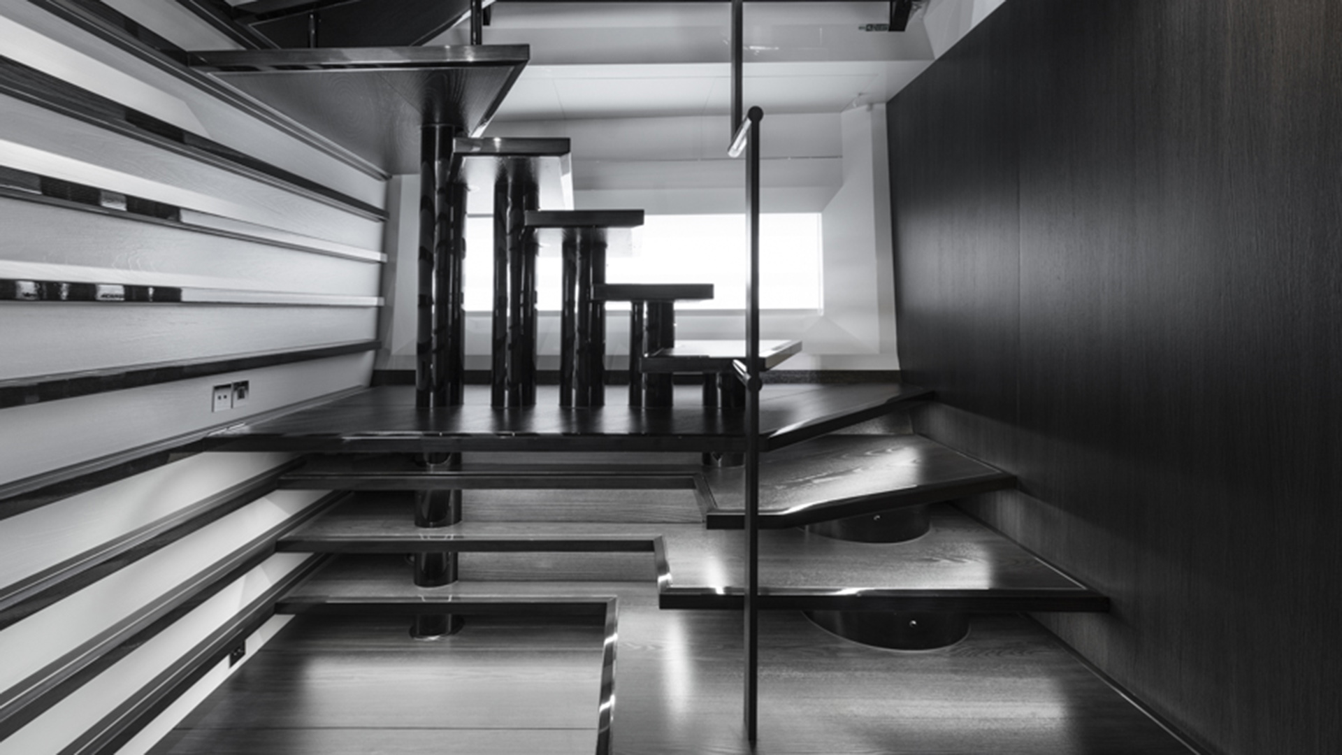 Il complesso progetto ha fuso le competenze tecniche di Lateral Naval Architets con il know-how cantieristico di Alia Yachts. La sfida è parsa fin da subito entusiasmante, lo scafo doveva essere capace di sostenere alte velocità a cui sarebbe stato spinto dai tre motori Volvo IPS1350, capaci di generare una potenza di 3.000 cavalli. Con una larghezza massima di 8,35 metri, l’Atlantico sfrutta due stabilizzatori Seakeeper 26 per mantenere l’imbarcazione ferma quando la velocità è azzerata.