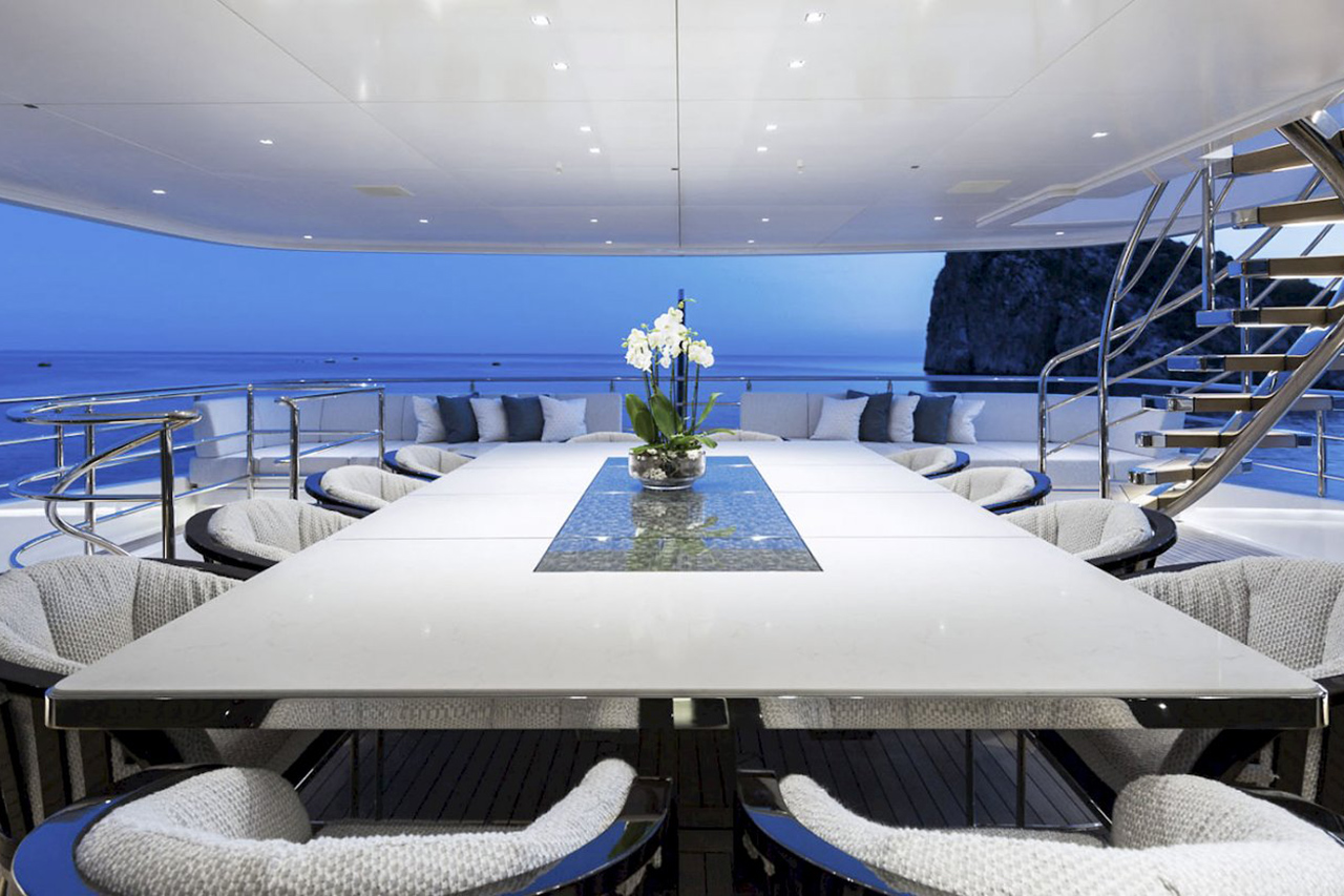 Lungo 41,3 metri, l’Alia Yachts Ruya è un megayacht costruito per 499 GT Lloyd’s Register e presenta numerosi elementi di ispirazione tropicale all’interno del suo layout a tre ponti, oltre ad un sundeck di grandi dimensioni munito di vasca idromassaggio per 10 persone e di sdraio su cui prendere il sole.