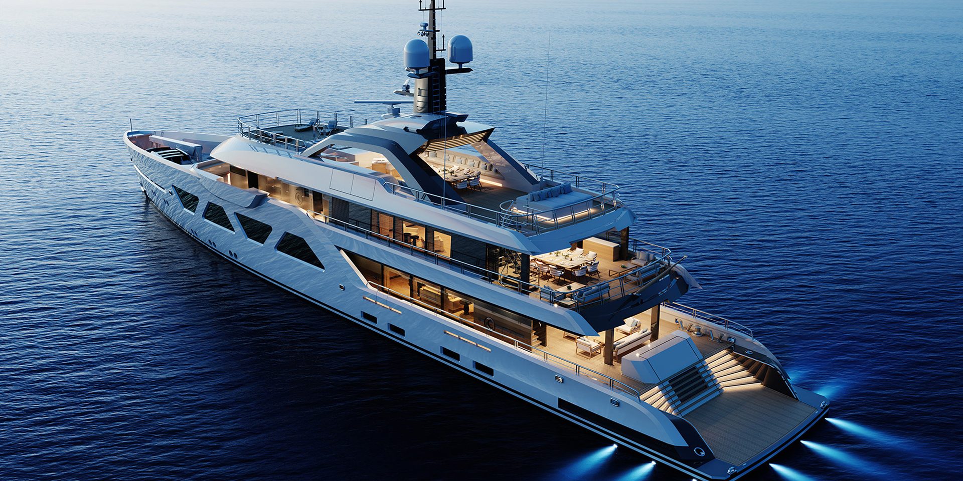 Firmato da Espen Øino (designer di fama mondiale e architetto navale con sede a Monaco) che ne ha progettato gli esterni, questo megayacht aggiunge aspetti spigolosi in tutto l’esterno allo scopo di dare profondità e forza al design.