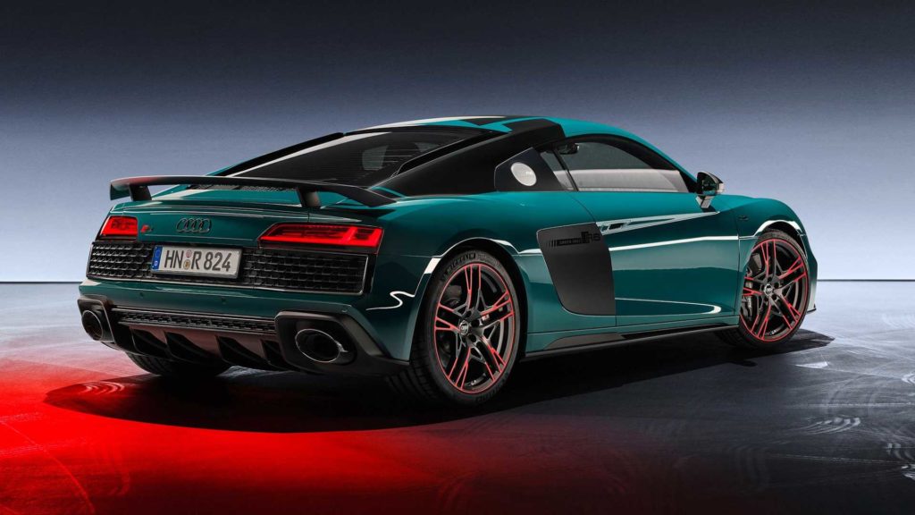 Cuore pulsante dell’Audi R8 Green Hell Edition rimane il V10 aspirato naturale da 5.2 litri in grado di sviluppare 620 CV di potenza e 580 Nm di coppia, valori questi che (anche grazie alla trazione quattro e a un cambio S Tronic a sette rapporti) vanno a tradursi in uno 0-100 km/h in 3.1 secondi e in una velocità massima di 331 km/h. La vettura sarà ritirabile presso il “Böllinger Höfe”, ovvero un impianto produttivo Audi presso il quale viene realizzato anche l’Audi Space Frame della R8 LMS. Il prezzo? Si parla di 233.949,59 euro in Germania.