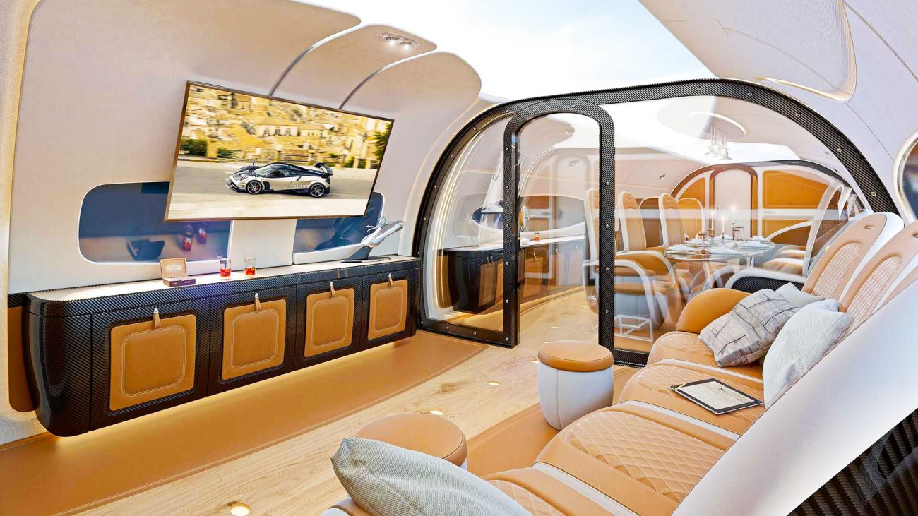 Caratterizzato da soluzioni stilistiche estremamente eleganti, l’interno ‘Infinito’ di uno speciale Airbus ACJ319neo è stato studiato dagli uomini di Pagani Automobili e trova ispirazione nella Huayra BC