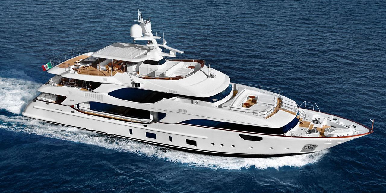Collocata a prua invece la Master Suite, dotata di ampie superfici panoramiche che ne permettono l’irradiazione naturale (restituendo al contempo una gradevolissima vista sul mare), mentre il ponte superiore racchiude al suo interno un’area relax con due tavoli da gioco. Divanetti esterni e terrazza con copertura scorrevole completano la dotazione di un superyacht da 41.9 metri di lunghezza mosso da due motori Cat C32 ACERT da 1081 kW di potenza l’uno, il cui lavoro congiunto permette il raggiungimento di una velocità massima di 15 nodi ed una velocità di crociera di 12 nodi.