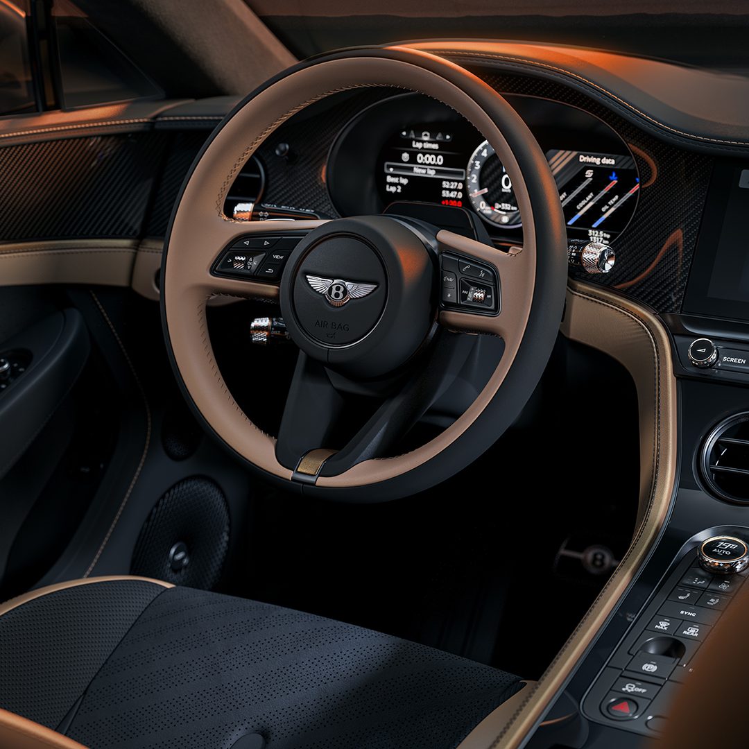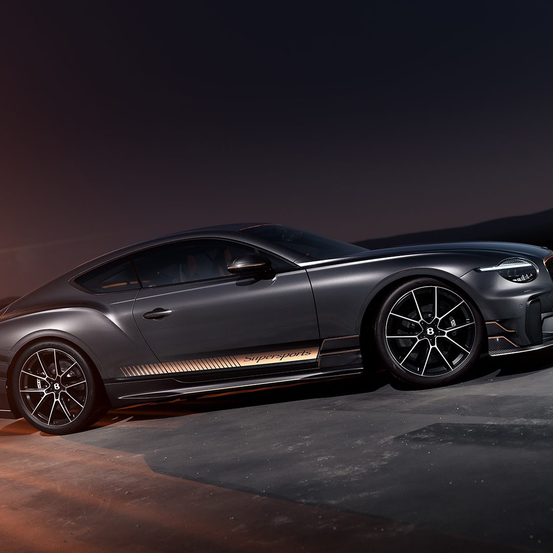 Una volta saliti a bordo si viene accolti da un abitacolo che è insieme un trionfo di eleganza e di sportività, tra finiture premium, impunture a vista, pellami e Alcantara che si sposano tra di loro e l’immancabile fibra di carbonio che fa bella mostra di sé divenendo parte integrante dell’arredamento interno insieme agli elementi metallici. Ma a dominare la scena sono i sedili: solo due e estremamente vocati alla sportività, nonché installati più in basso e dotati di architettura in CFRP. Ovviamente non può mancare la targhetta nel tunnel atta a certificare la produzione numerata, così come anche i loghi ‘Supersports’ che campeggiano ovunque. Last but not least: i clienti potranno ulteriormente personalizzare la propria Continental GT Supersports come meglio credono grazie alla divisione Mulliner. Proseguendo invece sul fronte della tecnica Bentley dichiara un peso inferiore alle 2 tonnellate (si tratta della vettura più leggera prodotta da Crewe negli ultimi 85 anni) e con una distribuzione dei pesi 54:46. Il carico laterale? Ben 1.3 g. Ciliegina sulla torta i cerchi forgiati da 22” sviluppati in collaborazione con Manthey Racing e gommabili Pirelli Trofeo RS. E se a questo punto vi state facendo domande in merito alla disponibilità, bhé, gli ordini prenderanno il via da marzo del prossimo anno, con avvio della produzione previsto per il 4° trimestre del 2026, mentre le prime consegne ai clienti sono schedulate per il 2027. Insomma, se siete tra i grandi aficionados della produzione di Crewe, quest’auto non potrà mancare nella vostra invidiabile collezione.