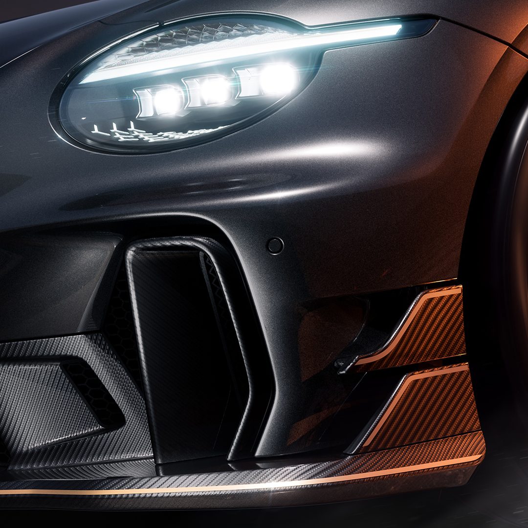 Ma partiamo dal protagonista assoluto. Al di sotto del maestosissimo cofano pulsa un possente cuore V8 cross-plane da 4.0 litri straripante in termini di prestazioni: 666 CV di potenza e un’esagerata coppia monstre di 800 Nm. Risultati dovuti ad un basamento più massiccio, a testate di nuova progettazione e a turbocompressori maggiorati. E a coadiuvare tale unità completamente termica è un cambio ZF doppia frizione a otto rapporti con soluzioni specifiche e dotato di inedite logiche di cambiata (nonché di frizioni dedicate) che scarica tali valori esclusivamente sulle ruote posteriori. Il tutto per uno 0-100 km/h in 3.7” e una velocità massima dichiarata di 310 km/h. Ciliegina sulla torta atta a sublimare nel migliore dei modi possibili l’esperienza di guida sportiva è un impianto di scarico Akrapovič in titanio.