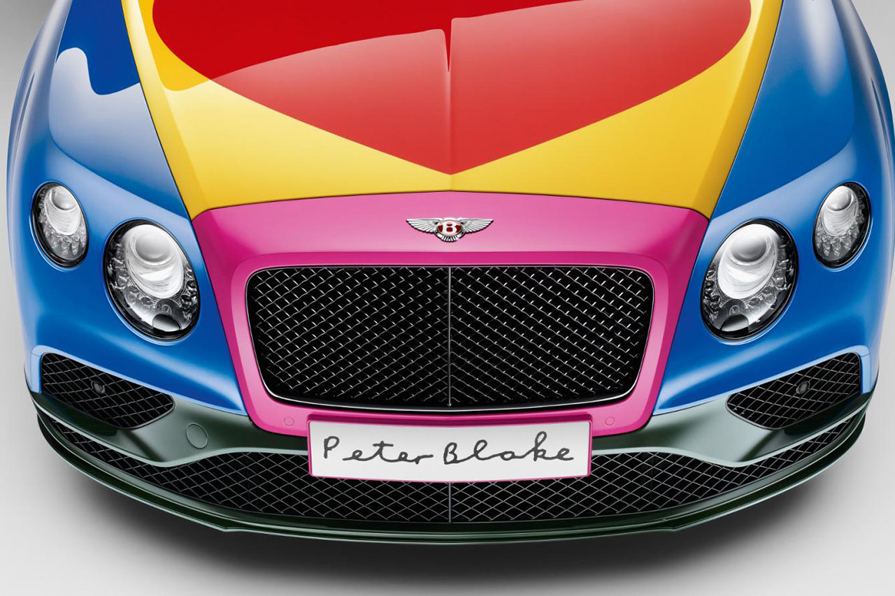 La Casa di Crewe porta una bella dose di colore su uno dei suoi modelli più sportivi. Frutto di una collaborazione con l’artista Sir Peter Blake, la Bentley Continental GT V8 S Convertible art car si caratterizza infatti per i suoi esterni appariscenti firmati da quello che si può considerare il padre della pop-art britannica, ovvero colui che, tra le altre cose, creò la copertina dell’album “Sgt. Pepper’s Lonely Hearts Club Band” dei Beatles.
