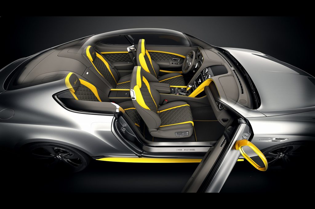 A quanto elencato la Bentley Continental GT Speed Black Edition aggiunge anche splitter anteriore, diffusore posteriore e minigonne a contrasto nelle colorazioni St James’ Red, Beluga, Hallmark e Cyber Yellow, a cui fanno il paio delle calotte degli specchietti retrovisori abbinabili. Elementi in fibra di carbonio, rivestimenti in pelle in color Pillar Box Red, Beluga, Porpoise o Cyber Yellow spiccano all’interno di un ambiente ulteriormente impreziosito da impunture a vista, da sellerie Mulliner GT Design e da pannelli porta con elementi diamantati.