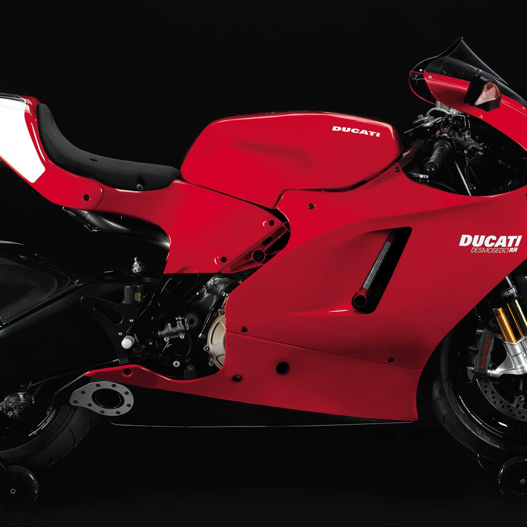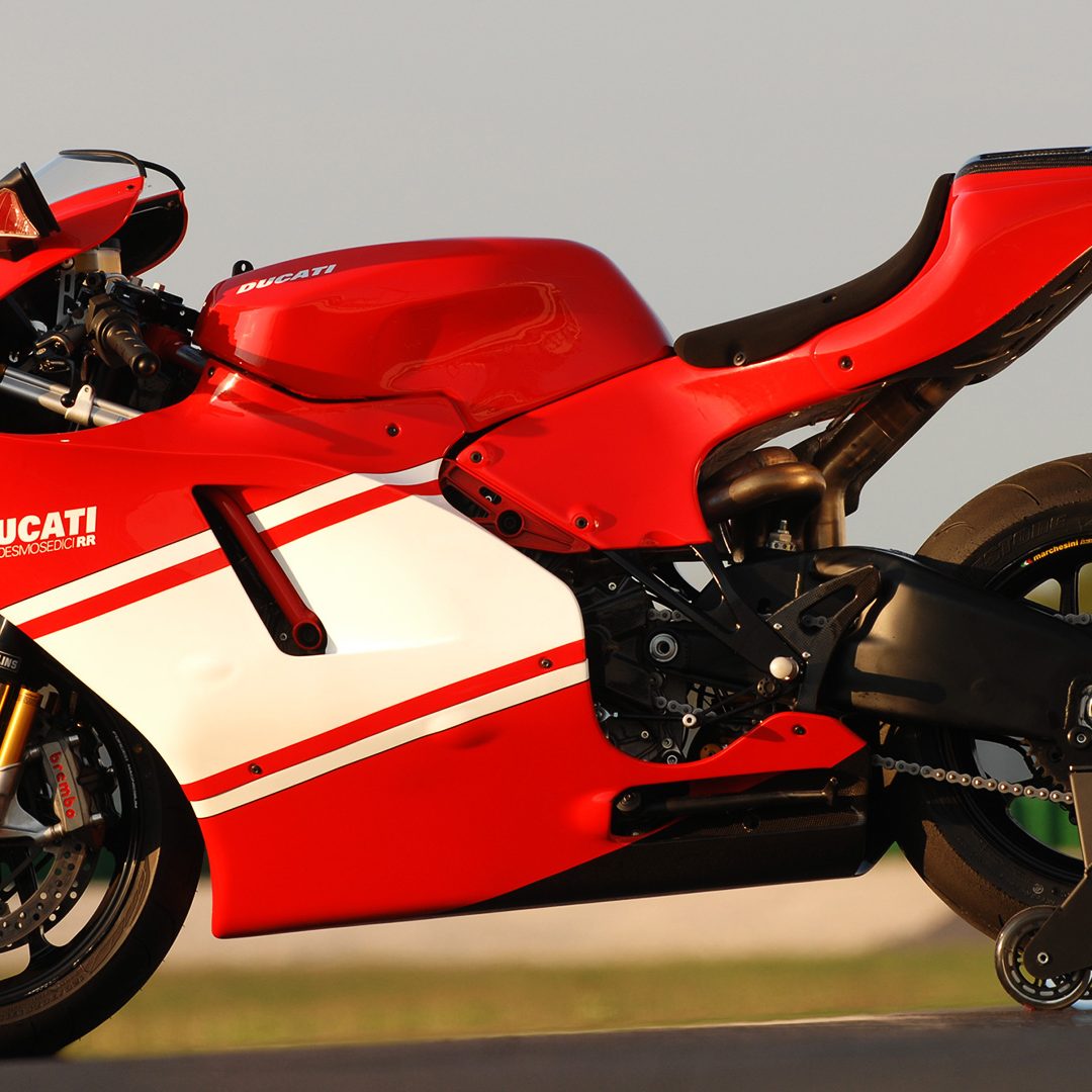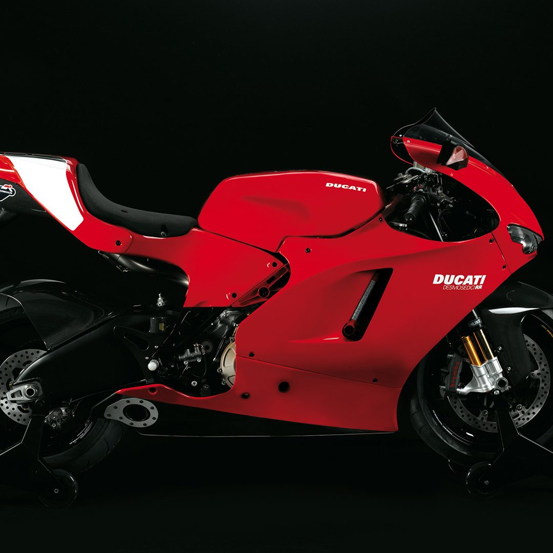 Se si parla di corse motociclistiche in Italia, nell’epoca moderna, il pensiero non può che ‘correre’ a Borgo Panigale. Se c’è infatti una Casa italiana, su tutte, impegnata nelle competizioni, che si tratti di Superbike o di MotoGP, quella è indubbiamente la Ducati. Tra derivate di serie e prototipi, è certamente il costruttore motociclistico italiano che ha dominato la scena dei Campionati con maggior seguito mediatico negli ultimi decenni, facendo sognare numerosi appassionati in ogni parte del Globo praticamente ogni weekend nel corso del calendario delle competizioni su due ruote. Dalle imprese di Giancarlo Falappa, a quelle di Carl Fogarty, di Ben Bostrom, di Troy Bayliss, di Neil Hodgson e di Rubén Xaus, di Loris Capirossi, di Casey Stoner, di Francesco Bagnaia e di Marc Márquez. E questi giusto per fare qualche esempio, ma l’elenco sarebbe molto più lungo e potremmo continuare parecchio. Insomma: il colore rosso ha dominato in lungo e in largo nelle massime categorie del motociclismo soprattutto nell’ultimo trentennio, imponendosi de facto sulla scena sportiva mondiale. E di ovvio e conseguente riflesso, anche sul mercato, al punto che oggi possiamo dire, senza dubbio alcuno (e con parecchio orgoglio italiano), che Ducati è uno dei massimi riferimenti se si parla di moto sportive impegnate in gara o di stradali con cui divertirsi in pista o sui passi di montagna. E questo anche grazie ad una ricerca tecnica e tecnologica incessante sui tracciati nelle competizioni. Un preambolo, questo relativo alla grande tradizione sportiva della Casa bolognese, necessario per comprendere appieno la protagonista del nostro racconto odierno, perché al centro della nostra storia di oggi vi è nientemeno che una delle moto più folli, esagerate ed estreme mai create. Allacciatevi casco e guanti, perché (dopo avervi parlato nei giorni scorsi di Porsche 918 Spyder, di Ferrari LaFerrari, di McLaren P1 e di F-104G Ferrari, solo per citarvi alcune delle nostre più recenti retrospettive) ad occupare la scena dei nostri spazi virtuali stavolta è nientemeno che la Ducati Desmosedici RR! Una moto veramente pazzesca (sia per tecnica che per quotazioni: è uno dei massimi sogni proibiti di appassionati, ‘smanettoni’ e collezionisti) e che – forse come nessun’altra – affonda le sue radici proprio nelle competizioni. E non in una categoria qualsiasi, ma nella classe regina. Questa assurda due ruote infatti, per la prima volta nella storia, portò realmente sulle strade di tutti i giorni una vera e propria MotoGP, rendendo quindi a conti fatti un prototipo (ovviamente adattato, ma neanche troppo) omologato per la circolazione stradale. E se pensate che per fare ciò Ducati abbia parecchio addolcito la sua moto da corsa… bhé: sbagliate alla grande! La Desmosedici RR è in tutto e per tutto una moto da competizione con targa e fanali e a cui è doveroso dare del lei. E giusto per darvi un’idea di quanto Ducati abbia precorso i tempi con un simile progetto, pensate solo al fatto che per vedere qualcosa di analogo nell’automobilismo si è dovuto attendere sino a pochi anni fa affinché due colossi del calibro di Ferrari e Mercedes-AMG decidessero rispettivamente di presentare la SF90 Stradale e la ONE, entrambe connotate da una stretta parentela con la Formula 1.