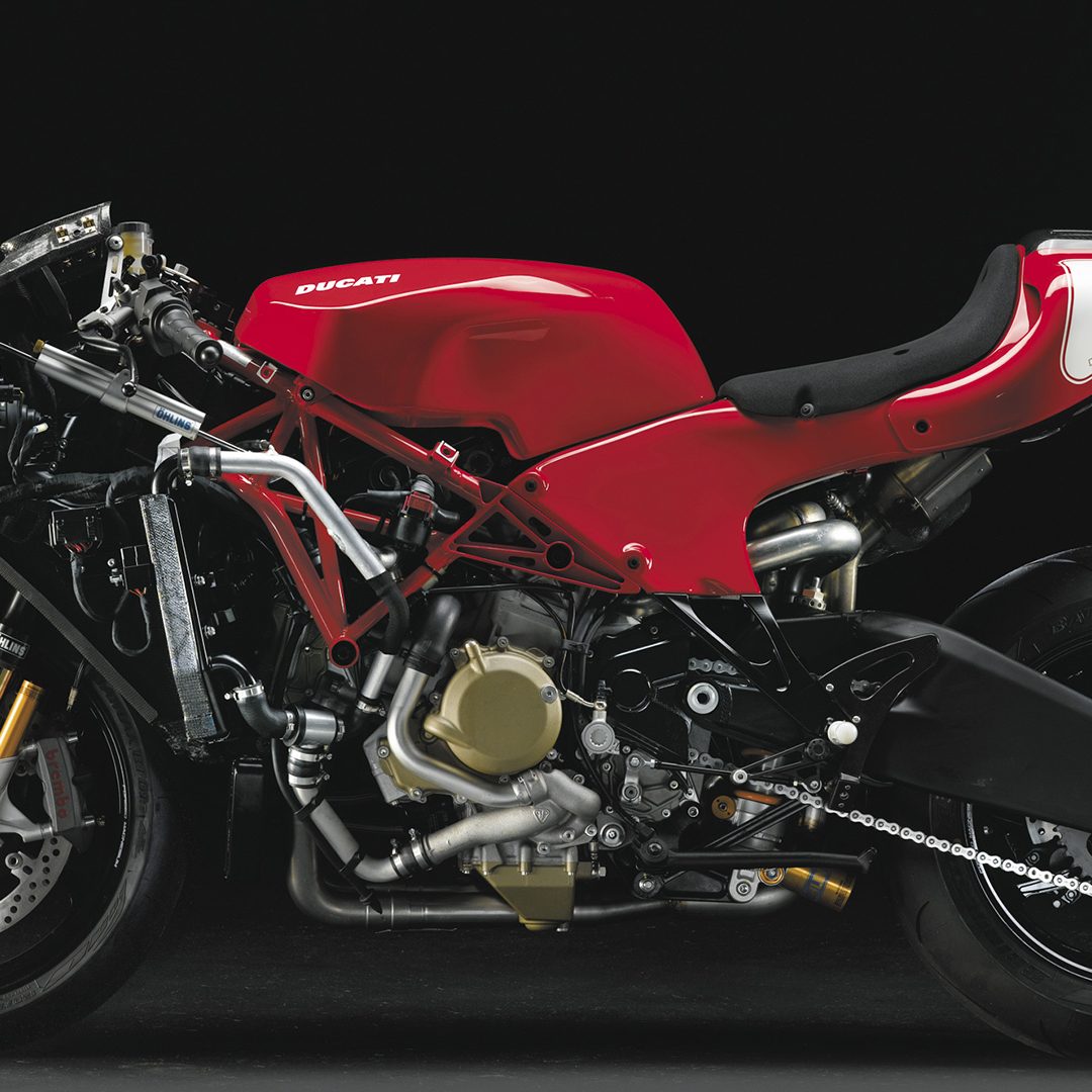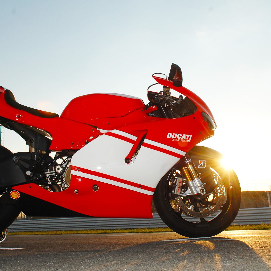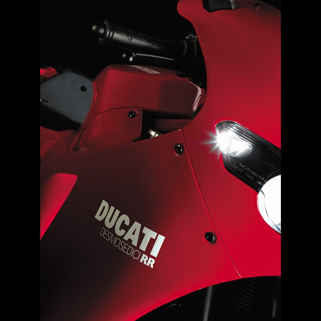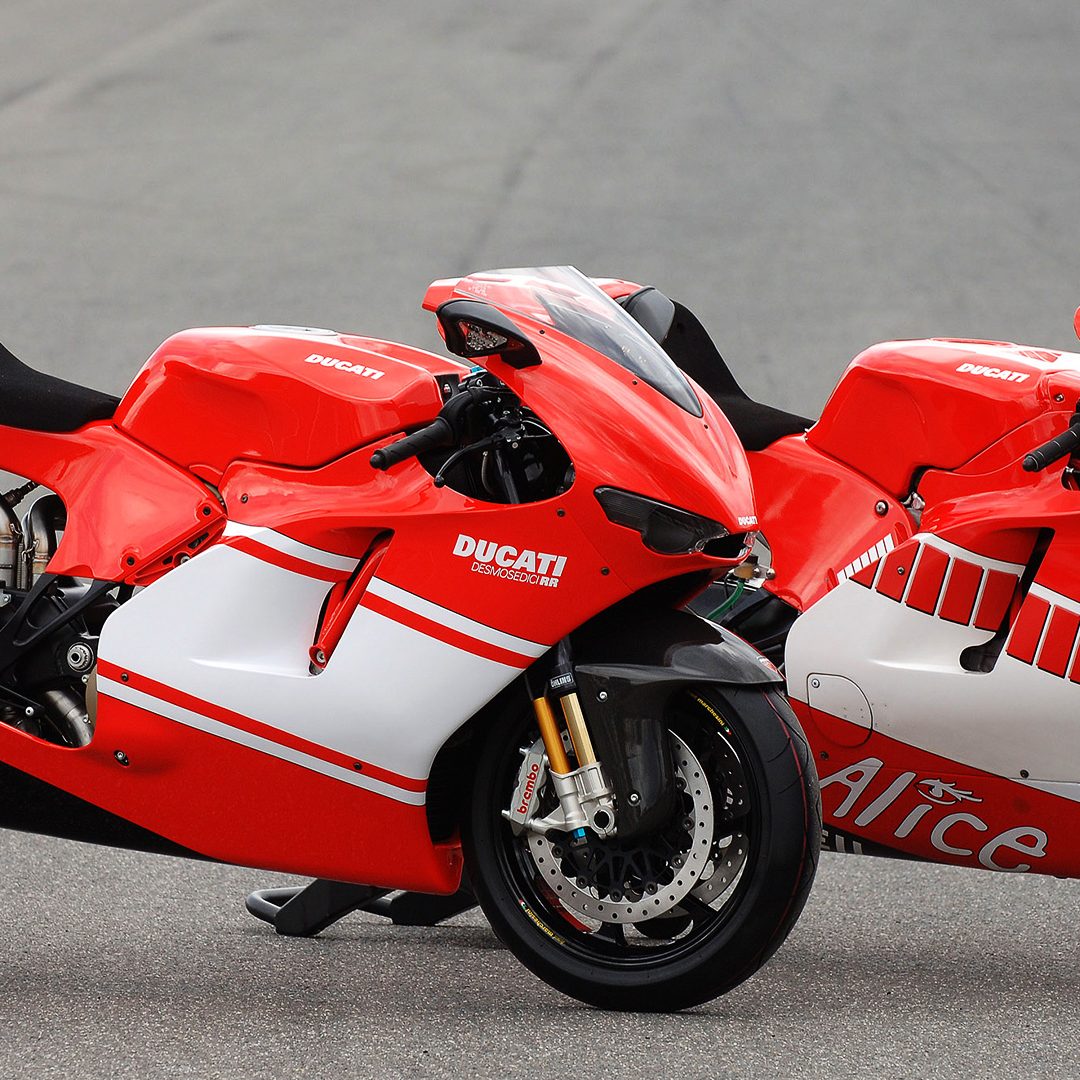 Se si parla di corse motociclistiche in Italia, nell’epoca moderna, il pensiero non può che ‘correre’ a Borgo Panigale. Se c’è infatti una Casa italiana, su tutte, impegnata nelle competizioni, che si tratti di Superbike o di MotoGP, quella è indubbiamente la Ducati. Tra derivate di serie e prototipi, è certamente il costruttore motociclistico italiano che ha dominato la scena dei Campionati con maggior seguito mediatico negli ultimi decenni, facendo sognare numerosi appassionati in ogni parte del Globo praticamente ogni weekend nel corso del calendario delle competizioni su due ruote. Dalle imprese di Giancarlo Falappa, a quelle di Carl Fogarty, di Ben Bostrom, di Troy Bayliss, di Neil Hodgson e di Rubén Xaus, di Loris Capirossi, di Casey Stoner, di Francesco Bagnaia e di Marc Márquez. E questi giusto per fare qualche esempio, ma l’elenco sarebbe molto più lungo e potremmo continuare parecchio. Insomma: il colore rosso ha dominato in lungo e in largo nelle massime categorie del motociclismo soprattutto nell’ultimo trentennio, imponendosi de facto sulla scena sportiva mondiale. E di ovvio e conseguente riflesso, anche sul mercato, al punto che oggi possiamo dire, senza dubbio alcuno (e con parecchio orgoglio italiano), che Ducati è uno dei massimi riferimenti se si parla di moto sportive impegnate in gara o di stradali con cui divertirsi in pista o sui passi di montagna. E questo anche grazie ad una ricerca tecnica e tecnologica incessante sui tracciati nelle competizioni. Un preambolo, questo relativo alla grande tradizione sportiva della Casa bolognese, necessario per comprendere appieno la protagonista del nostro racconto odierno, perché al centro della nostra storia di oggi vi è nientemeno che una delle moto più folli, esagerate ed estreme mai create. Allacciatevi casco e guanti, perché (dopo avervi parlato nei giorni scorsi di Porsche 918 Spyder, di Ferrari LaFerrari, di McLaren P1 e di F-104G Ferrari, solo per citarvi alcune delle nostre più recenti retrospettive) ad occupare la scena dei nostri spazi virtuali stavolta è nientemeno che la Ducati Desmosedici RR! Una moto veramente pazzesca (sia per tecnica che per quotazioni: è uno dei massimi sogni proibiti di appassionati, ‘smanettoni’ e collezionisti) e che – forse come nessun’altra – affonda le sue radici proprio nelle competizioni. E non in una categoria qualsiasi, ma nella classe regina. Questa assurda due ruote infatti, per la prima volta nella storia, portò realmente sulle strade di tutti i giorni una vera e propria MotoGP, rendendo quindi a conti fatti un prototipo (ovviamente adattato, ma neanche troppo) omologato per la circolazione stradale. E se pensate che per fare ciò Ducati abbia parecchio addolcito la sua moto da corsa… bhé: sbagliate alla grande! La Desmosedici RR è in tutto e per tutto una moto da competizione con targa e fanali e a cui è doveroso dare del lei. E giusto per darvi un’idea di quanto Ducati abbia precorso i tempi con un simile progetto, pensate solo al fatto che per vedere qualcosa di analogo nell’automobilismo si è dovuto attendere sino a pochi anni fa affinché due colossi del calibro di Ferrari e Mercedes-AMG decidessero rispettivamente di presentare la SF90 Stradale e la ONE, entrambe connotate da una stretta parentela con la Formula 1.