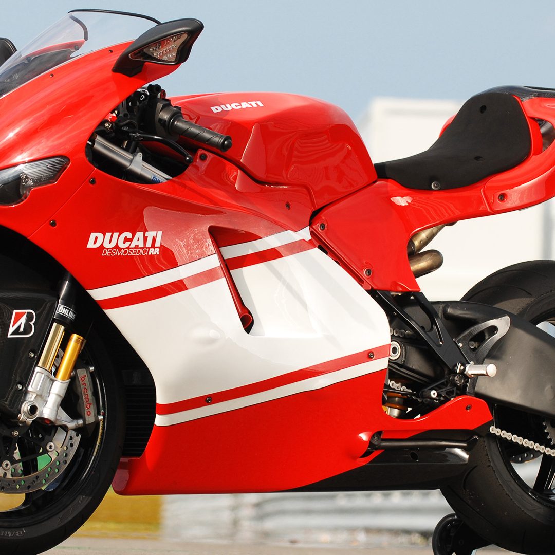 Come facile immaginare, l’iter di industrializzazione di questa moto non fu immediato. La Desmosedici RR (i cui pre-ordini vennero aperti in data 2 giugno 2006) arrivò sul mercato a partire dal luglio del 2007 (quando venne presentata al Mugello infatti, il prototipo era già in stadio molto avanzato), a oltre 365 giorni dal suo unveiling e proprio nell’anno in cui Ducati centrava il sogno iridato. Questo incredibile prodotto – come ovvio – venne realizzato in tiratura estremamente limitata: solo 400 unità all’anno per il periodo di produzione (in totale si arrivò a 1.500 esemplari) e con diritto di prelazione per chi allora era già proprietario di una 999R. E per i più curiosi, come molti ricorderanno, la Desmosedici RR si ritagliò un istante di celebrità anche sul grande schermo ne “I Mercenari” (certo: non chiedeteci come abbia fatto in quella pellicola Jason Statham a portare con sé alle sue spalle una ragazza, dal momento che la moto esiste solo in versione monoposto e, come abbiamo detto, dalla sommità del codone uscivano gli scarichi a camino, quindi, pure volendo… Magia del cinema). All’epoca serviva firmare un assegno da 55.000 euro, in Italia, per potersi mettere in garage questo pezzo di storia della produzione sportiva stradale di Ducati. Oggi… bhé: si tratta di una moto per la quale tutti i collezionisti farebbero follie e con quotazioni che in media oscillano da 80.000 a 150.000 euro. Fino anche a salire. Due le colorazioni nelle quali venne commercializzata: Desmosedici RR, con colorazione Rosso GP e tabella porta numero bianca sul codone; e Desmosedici RR “Team Version”, sempre di colore Rosso GP con banda bianca laterale come sulla moto da gara. Ciascuna moto venne inoltre corredata da un kit di adesivi che replicavano gli Sponsor del Team Ducati nel 2006, Per i più curiosi, la Ducati Desmosedici RR veniva proposta con 3 anni di garanzia e altrettanti anni di assistenza gratuita. Insomma: se avete la fortuna di averla in garage, bhé dovreste già sapere di possedere più di una semplice moto, ma di avere in collezione una vera e propria pietra miliare non solo della Casa di Borgo Panigale, ma di quella motociclistica in generale. E se potete godervela in pista… meglio ancora! Per tutti gli altri, la Ducati Desmosedici RR rappresenta una sorta di Santo Graal nel panorama delle due ruote: un oggetto mitico e leggendario che solo oggetto non è. Si tratta di un prodotto con cuore e anima che ogni appassionato – anche chi non ha il coraggio di ammetterlo – ha sognato (o sogna tutt’ora) di poter guidare, o anche solo di poterla sentire accesa rimirandola da vicino, magari anche accarezzandone le sinuose forme disegnate dalle sue sportivissime carene. E poi diciamolo: chi non ha voluto sentirsi come Loris Capirossi, Troy Bayliss o Casey Stoner almeno una volta nella vita? Bhé, con la Desmosedici RR questo sogno poteva trasformarsi in realtà. E chi ce l’ha in garage ha solo bisogno di prendere le chiavi, il giubbotto e i guanti ed infilarsi il casco per sentirsi parte di un pezzetto di quel sogno sportivo mondiale chiamato Ducati Desmosedici. Un sogno che ancora oggi, ad oltre 20 anni di distanza, continua ad appassionare, ad emozionare e a far battere i cuori di tifosi, motociclisti, appassionati e ducatisti. Ad astra, Desmosedici!