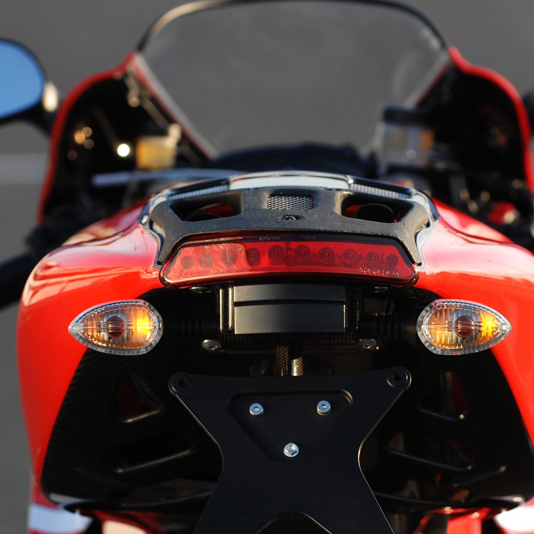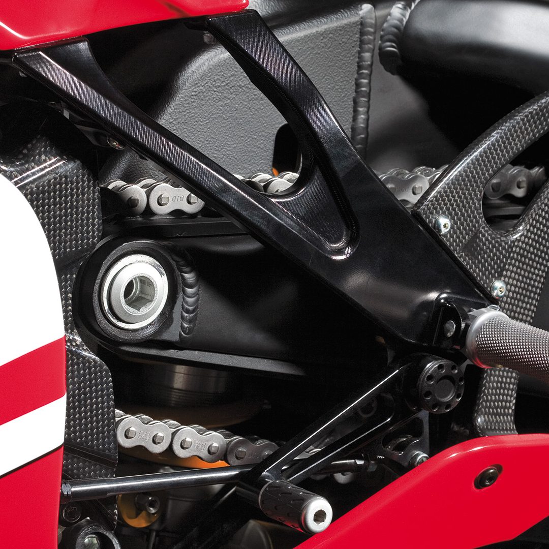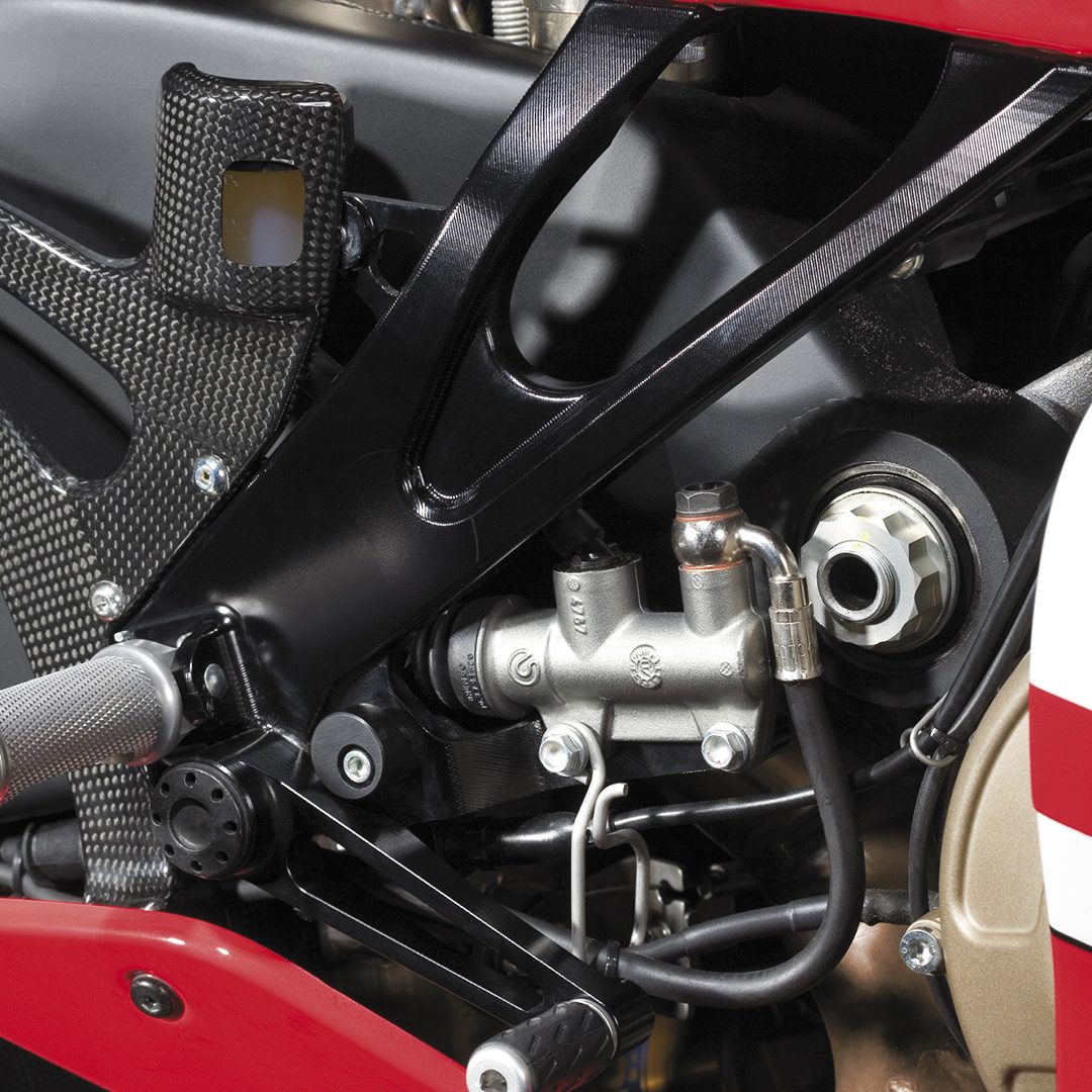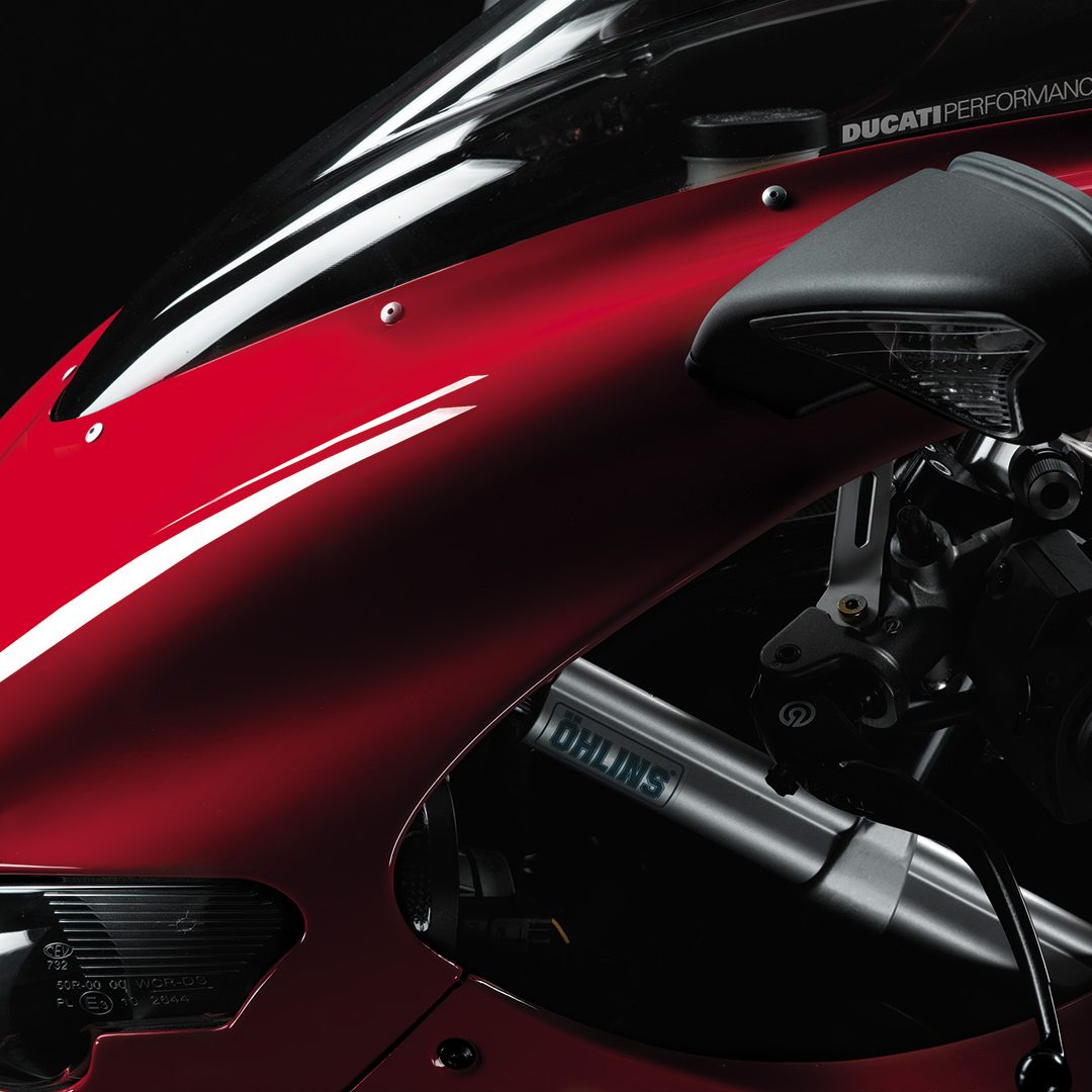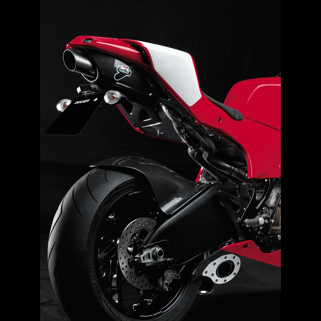 Ma andiamo diretti al dunque: il cuore della Desmosedici RR pulsava nel quattrocilindri desmodromico. Un’unità da 989 cc con architettura quadricilindrica a L e con fasatura Twin Pulse (ovvero a scoppi asimmetrici) e ovviamente con distribuzione desmodromica con 16 valvole in titanio (Desmosedici, per l’appunto). La potenza? Oltre 200 CV con scarico Racing (il cui kit veniva fornito a corredo di ogni moto). Ovviamente di prim’ordine la dotazione tecnica. Di quelle da far ‘leccare i baffi’ a tutti gli appassionati: quattro corpi farfallati con iniettori a 12 fori sopra farfalla; doppio albero a camme in testa e con comando a cascata di ingranaggi; bielle in titanio; cambio estraibile a sei marce; basamenti e teste fusi in terra; coperchi in magnesio fusi in terra; impianto di scarico 4 in 2 in 1 con silenziatore dotato di uscite a camino (arriverà poi un kit accessorio che permetterà di modificare codone e scarico sulla falsariga della Desmosedici GP7 che vinse il titolo iridato con Stoner – con singola uscita di scarico Termignoni sotto al codino e uscite al di sotto del basamento – ed ispirato a quello della 1098) e frizione multidisco a secco con antisaltellamento e con comando idraulico. Sul fronte della ciclistica, la Ducati Desmosedici RR si fregiava di: telaio ibrido a traliccio in tubi d’acciaio; telaietto reggisella in fibra di carbonio, con speciali resine ad elevata resistenza termica; forcella Öhlins da 43 mm pressurizzata, regolabile in compressione, in estensione e precarico (con trattamento TiN per gli steli); monoammortizzatore Öhlins con regolazione in estensione alta/bassa velocità di compressione e precarico con attuatore idraulico e cerchi Marchesini forgiati in lega di magnesio a 7 razze. Ciliegine sulla torta: pompa radiale con leva snodata e remote adjuster abbinata a pinze radiali Brembo monoblocco con dischi da 320 x 6 mm GP6 wet race; cruscotto elettronico multifunzionale con indicatore LCD, sviluppato in collaborazione con Ducati Corse; serbatoio in lega di alluminio e carene interamente in fibra di carbonio. A chiudere il cerchio della squisita dotazione della moto erano gli pneumatici Bridgsestone appositamente realizzati per la Desmosedici RR, che presentavano uno speciale intaglio, e con struttura e profilo sviluppati ad hoc. Insomma: un vero capolavoro di ingegneria racing omologata per la strada.