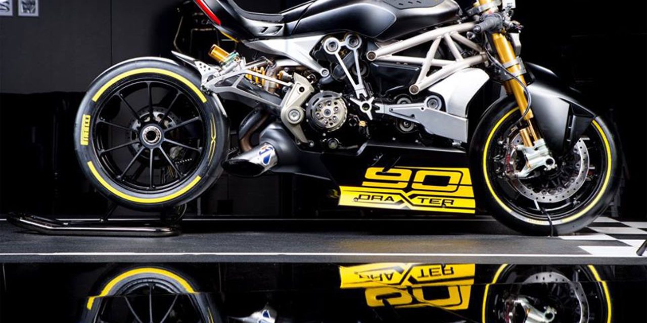 Il numero 90 che appare sul fianco della Ducati draXter richiama il mondo delle corse e, allo stesso tempo, rende omaggio al 90° anniversario Ducati che si celebra quest’anno.