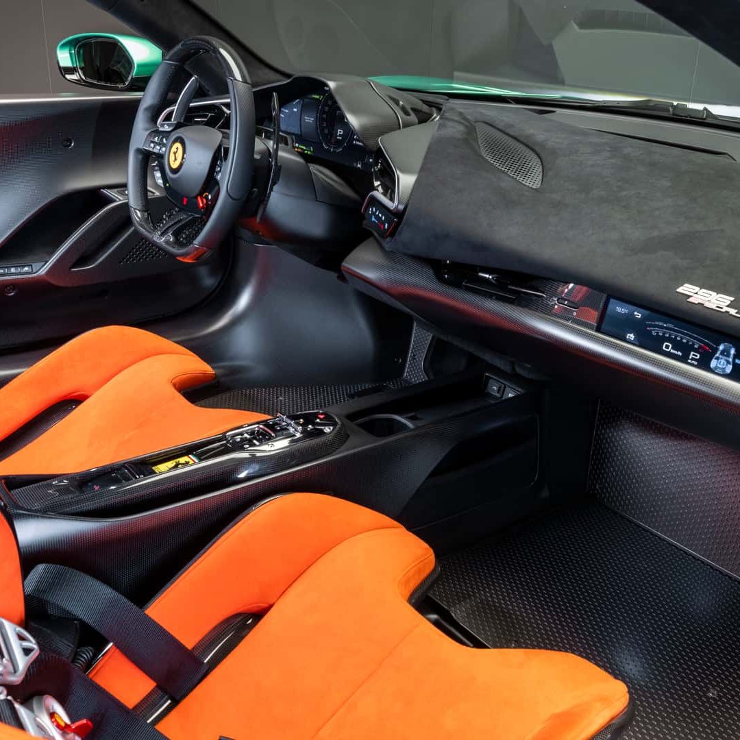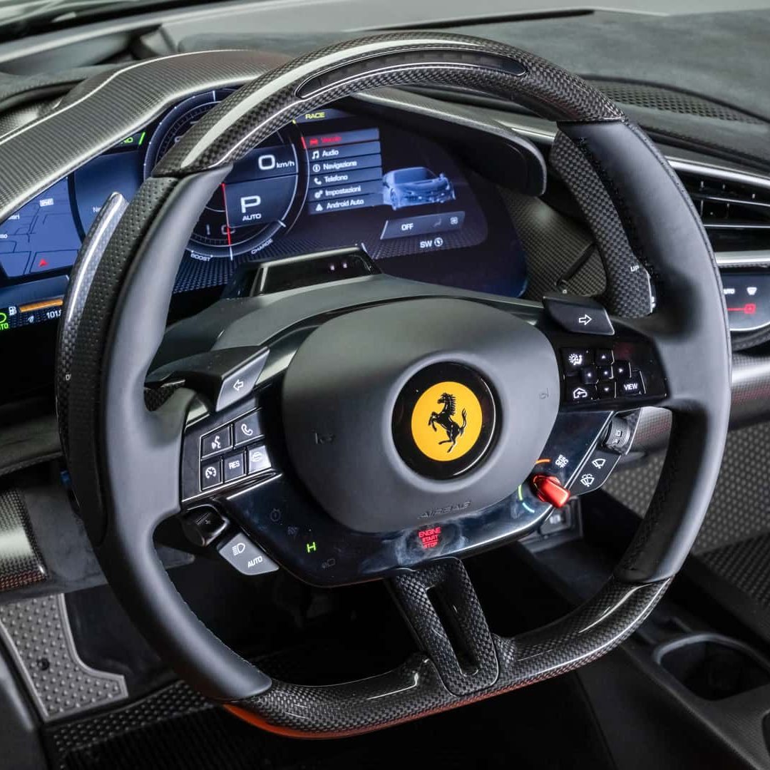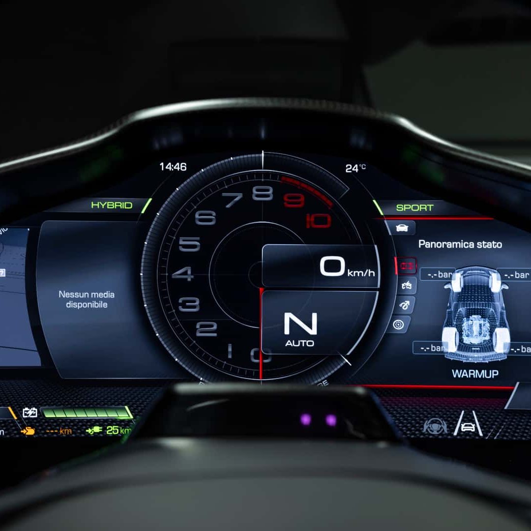 E per descriverle non si può che partire dalla sostanza: il V6 biturbo da 3.0 litri ibrido plug-in sviluppa ora 880 CV di potenza (esattamente come la 296 Challenge, da cui mutua svariate soluzioni) – di cui 700 sviluppati dalla sola unità termica e 180 da quella elettrica (con batteria da 7,45 kWh e per 25 km di autonomia in elettrico), che dispone di una inedita modalità “extraboost” – e 755 Nm di coppia. Il tutto per un rapporto di compressione di 9,4:1 e una potenza specifica 234 CV/l, nonché per prestazioni pari a 0-100 km/h in 2.8 secondi e 0-200 km/h 7.0”. Per oltre 330 km/h di velocità massima dichiarata. Il tutto anche grazie a un cambio DCT a otto rapporti con logiche di cambiata ottimizzate.