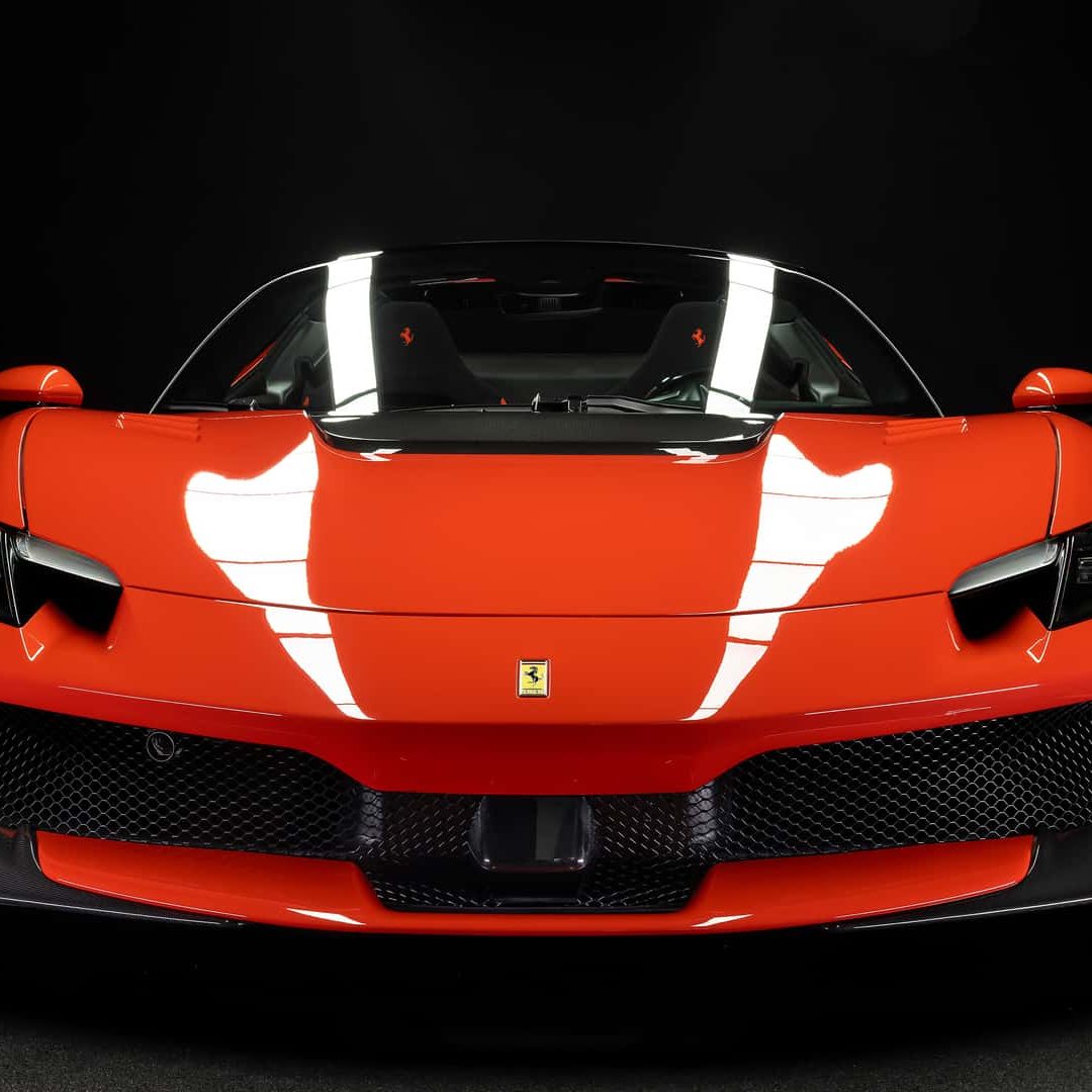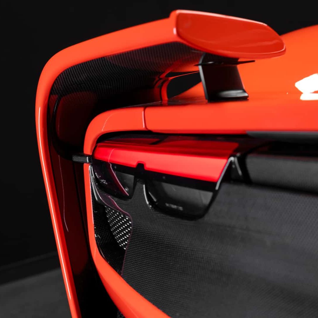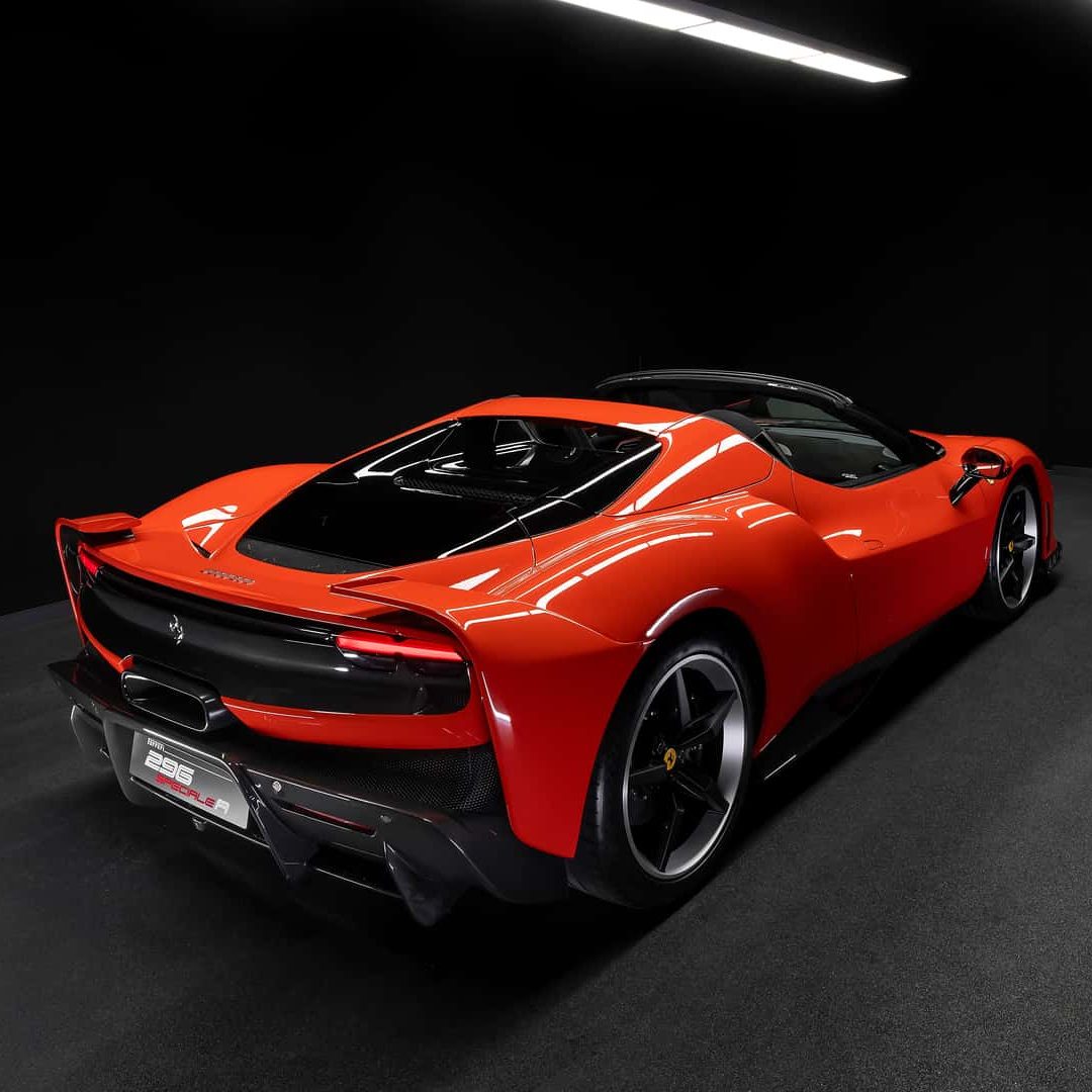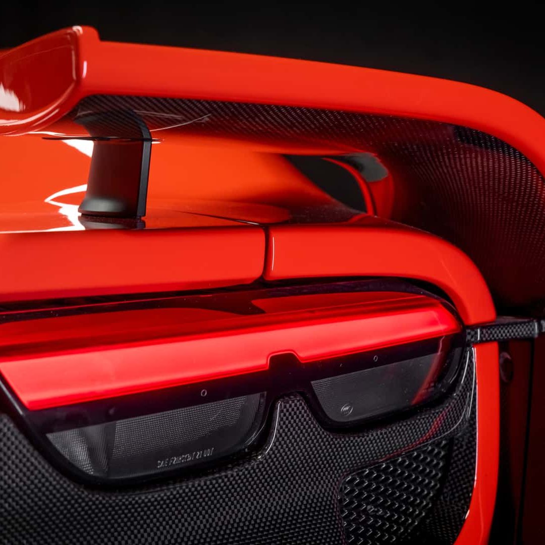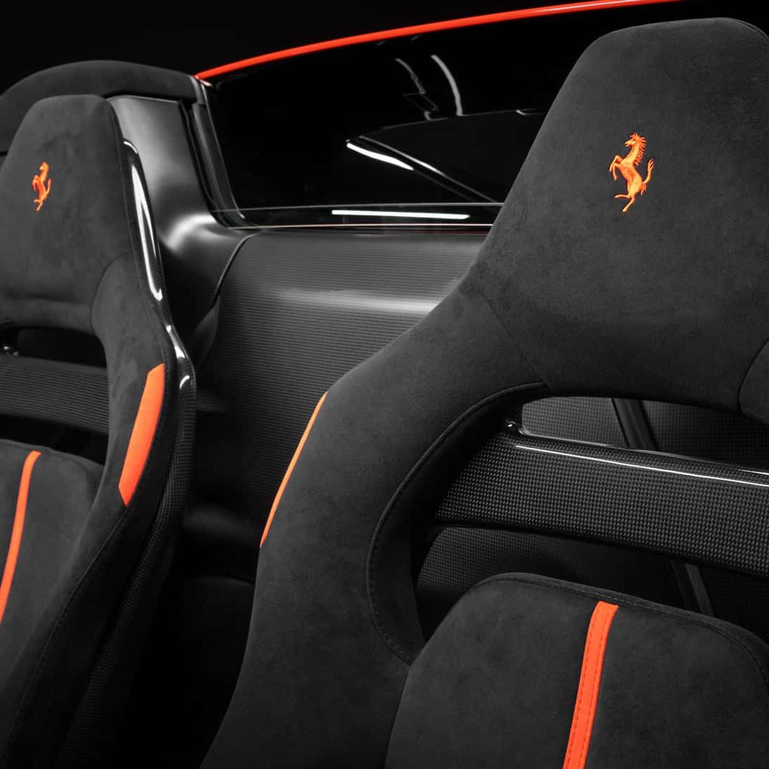 Ma parlavamo di soluzioni mutuate dalla variante da corsa: la Speciale utilizza la stessa mappatura del motore e la stessa strategia di sovralimentazione, con bielle in titanio, pistoni migliorati e un albero motore più leggero. Soluzioni a cui si affianca un sistema di controllo del battito in testa derivato direttamente dalle monoposto di F1. Ma il bello arriva adesso: che si opti per Ferrari 290 Speciale o per 296 Speciale A, entrambe le vetture perdono peso! Sì, avete capito bene: -50 kg per la cabriolet e -61 kg per la coupé. Il tutto grazie ad un abbondante ricorso alla fibra di carbonio sia per l’interno che per l’esterno (che guadagna inedite soluzioni aerodinamiche (tra cui diffusore posteriore e spoiler retrattile, quest’ultimo pensato per lavorare anche in base alla modalità di guida inserita).