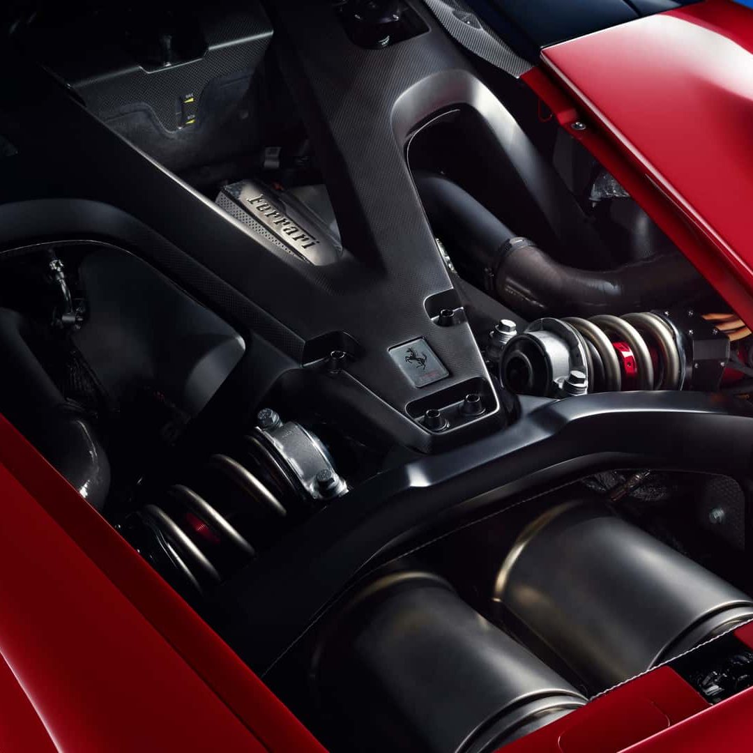 Gli ingegneri Ferrari hanno modificato la fasatura di accensione e iniezione e aumentato la pressione della camera di combustione del 20% rispetto alla 296 GTB. La trasmissione a doppia frizione a otto velocità è stata appositamente calibrata per tenere conto di quella pressione aggiuntiva e i turbo elettrici, con un motore sull’albero tra la turbina e il compressore, eliminano virtualmente il ritardo. Ferrari ha sviluppato e costruito internamente i motori elettrici: l’asse anteriore ne ospita due più un inverter e un sistema di raffreddamento integrato, mentre il terzo motore si trova nella parte posteriore. I due motori nella parte anteriore consentono il torque vectoring e possono inviare fino a 210 kw all’asse anteriore tramite frenata rigenerativa.