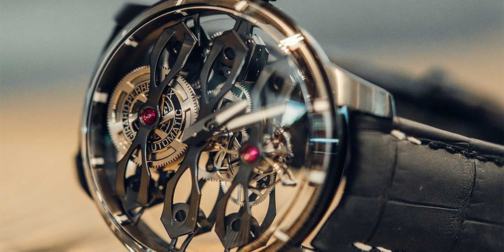 La gabbia del tourbillon (posta vicina alle ore sei del quadrante e composta da 79 elementi per un peso totale di 250 milligrammi e per soli 10 mm di diametro) ha una lancetta blu che funge da indicatore dei secondi correnti. I cristalli di zaffiro ricoprono l’area anteriore e posteriore, che illuminano ed espongono gli aspetti meccanici dell’orologio. La cassa è in titanio grado 5 soffuso di carbonio: simile al diamante ma con una finitura più scura e misura 44 mm di larghezza.