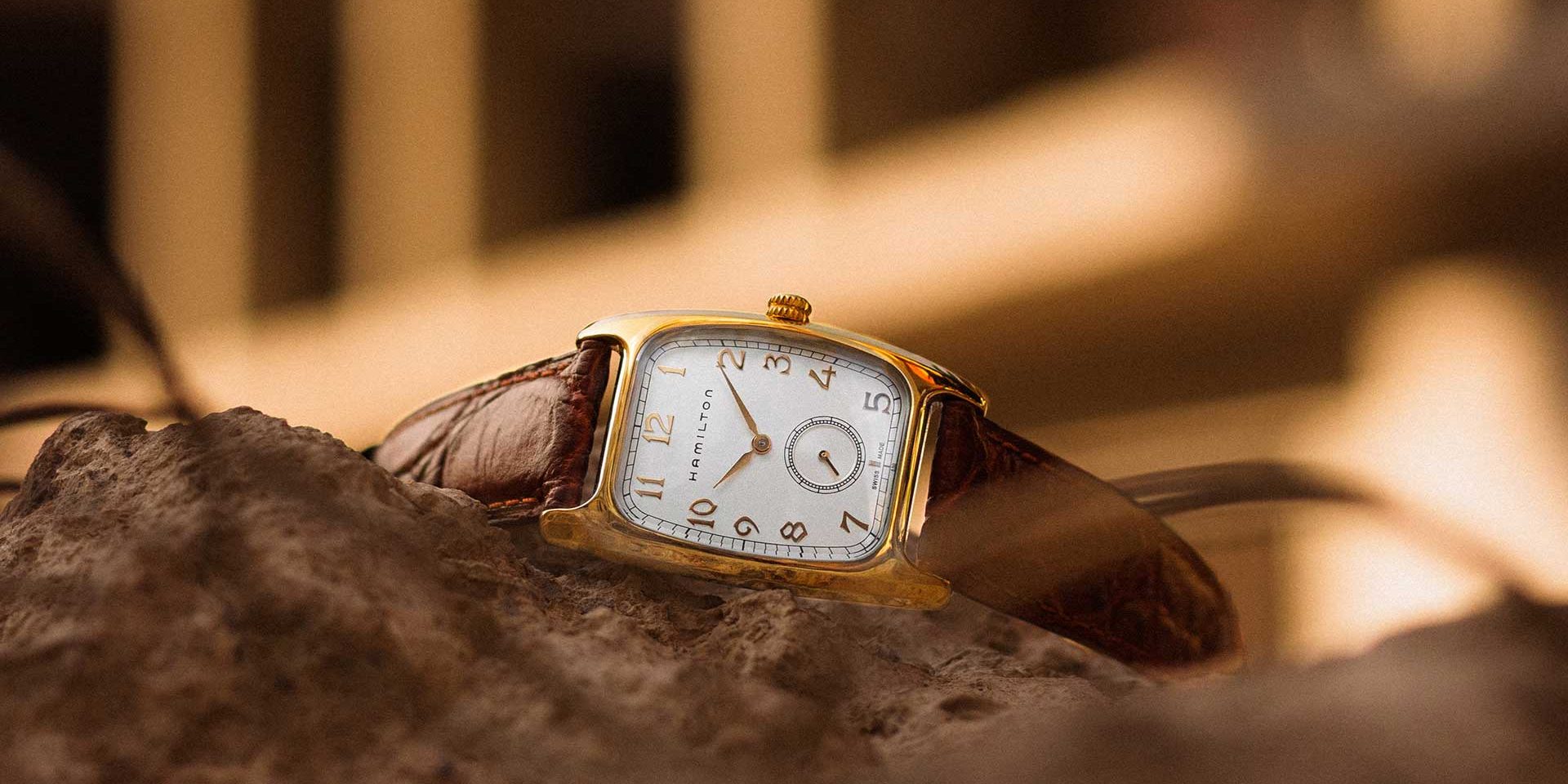 Connotato da una caratteristica cassa a cuscino in stile Art Decò, nonché da un quadrante bianco, da un secondo quadrante più piccolo e dall’iconica numerazione in stile serif, questo segnatempo classico fonde, come su ogni orologio Hamilton Watches, tradizione americana (ricordiamo che il marchio nasce a Lancaster, in Pennsylvania, nel 1892) e movimento elvetico.