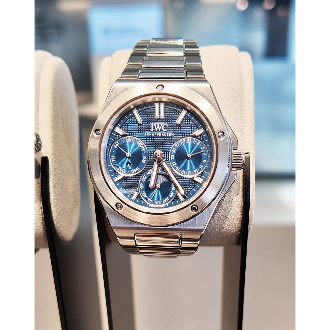 L’Ingenieur Perpetual Calendar 41 (rif. IW344903) presenta una cassa in acciaio inox con un diametro di 41 mm. Le proporzioni di ogni componente della cassa sono state rielaborate e adattate per accogliere il movimento del calendario perpetuo. Integrato senza soluzione di continuità nella cassa tramite un attacco a maglia centrale, il bracciale è a maglie H con chiusura a farfalla. La lunetta è fissata alla cassa con cinque viti funzionali. La cassa, la lunetta e la protezione della corona presentano una combinazione di superfici satinate e lucide.