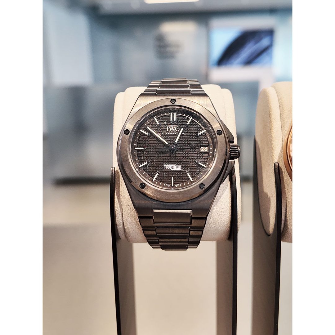 L’Ingenieur Automatic 42 (rif. IW338903) unisce per la prima volta il design del bracciale integrato con anello della cassa, lunetta e anello del fondello tutti realizzati in ceramica di ossido di zirconio nero. Anche le parti aggiuntive come la protezione della corona e la corona sono realizzate in questo materiale estremamente duro e antigraffio. Collegato alla cassa tramite le maglie centrali, il bracciale in ceramica nera integrato è leggero. Il quadrante nero presenta la caratteristica struttura “Grid” composta da piccole linee e quadrati, una caratteristica distintiva del design dell’IWC Ingenieur. Per la leggibilità, le lancette nere e gli indici in metallo sono riempiti di Super-LumiNova.