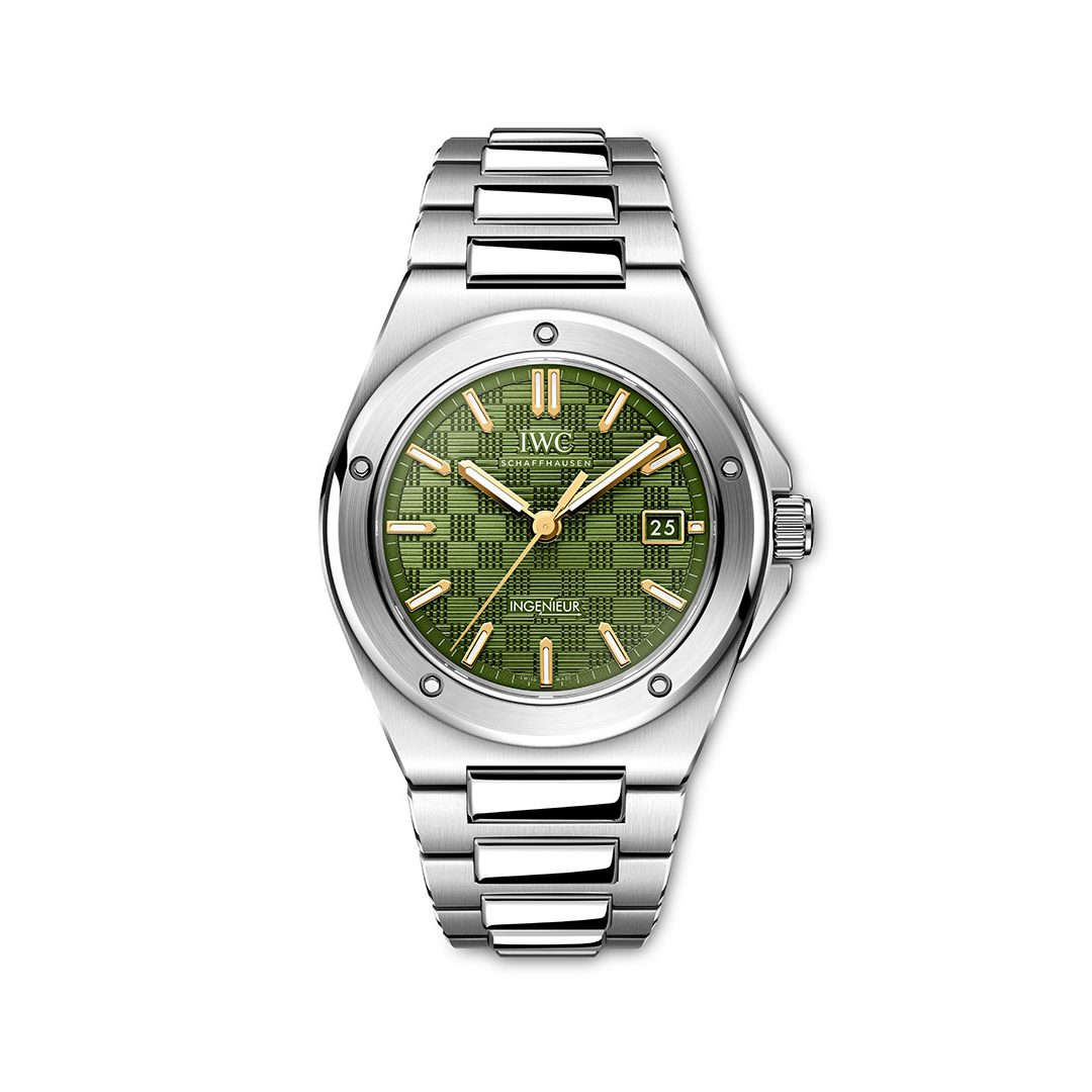 L’orologio del film ha funto da ispirazione per un’edizione speciale dell’Ingenieur Automatic 40 (rif. IW328908), con cassa e bracciale in acciaio inox. Limitato a 1.000 pezzi, presenta un quadrante verde con motivo “Grid” e applicazioni placcate in oro, un codice colore e una combinazione simili a quelli indossati da Pitt nel film. Le lancette placcate in oro e gli indici in metallo sono riempiti di Super-LumiNova. La lunetta è fissata all’anello della cassa con cinque viti funzionali. Il bracciale integrato con chiusura pieghevole a farfalla si attacca alla cassa tramite le maglie centrali. L’Ingenieur Automatic 40 è alimentato dal calibro 32111 con una riserva di carica di 120 ore e una resistenza all’acqua di 10 bar. In linea con la tradizione dell’Ingenieur, una cassa interna in ferro dolce protegge il movimento dagli effetti dei campi magnetici.
