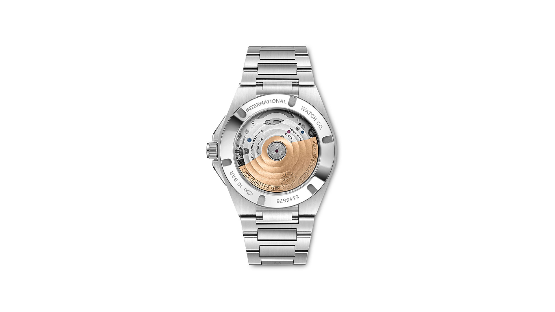 L’Ingenieur Automatic 40 in oro 18 carati 5N è dotato di un fondello in vetro zaffiro che mostra il calibro 32111 con sistema di carica a doppio cricchetto e da 120 ore di riserva di carica. Il movimento è rifinito con viti azzurrate e una massa oscillante placcata in oro.