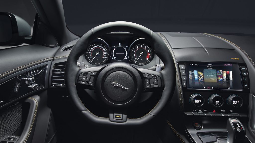 Lettering specifici, elementi estetico-aerodinamici dedicati, cerchi in lega da 20” in color Dark Satin Grey alle cui spalle si lascia osservare l’impianto frenante Super Performance completano la dotazione della Jaguar F-Type 400 Sport, dotata peraltro di sellerie sportive con telaietto in lega di magnesio, di consolle centrale specifica, di rivestimenti con impunture gialle a contrasto e di volante dedicato, oltre che proposta in tre colorazioni: Indus Silver, Santorini Black e Yulong White metallic. La Jaguar F-Type restyling arriverà sul mercato a partire dal primo trimestre di quest’anno ad un prezzo ancora da comunicarsi.