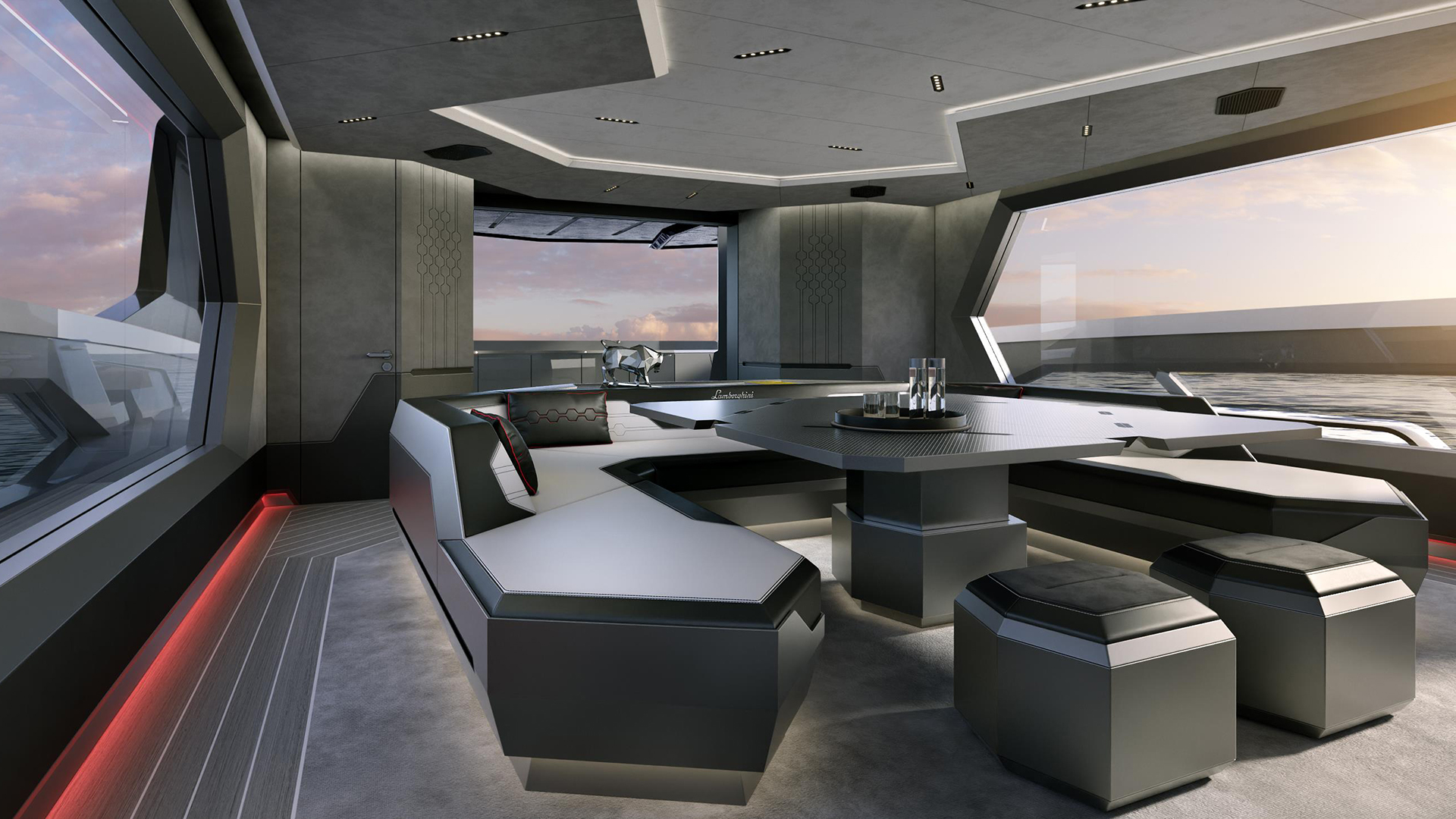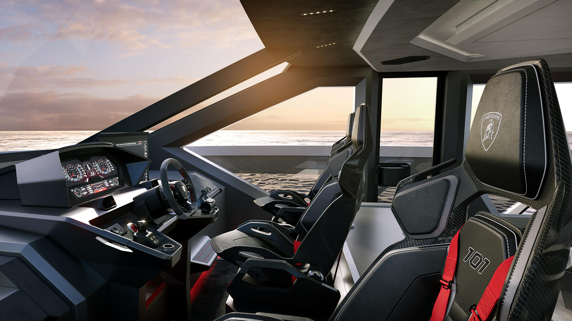 E ovviamente non manca anche un ambiente interno a far sognare. E anch’esso influenzato dagli stilemi che connotano gli abitacoli Lamborghini. La plancia di comando presenta un chiaro rimando alle vetture prodotte a Sant’Agata Bolognese (come si nota da strumentazione e sedute): nella fattispecie l’ispirazione è mutuata dalla Temerario. E anche la palette dei colori è influenzata da quella delle auto del Toro, così come anche conformazioni ed impunture alla vista: sono infatti presenti elementi iconici dell’azienda, quali gli esagoni, le linee pulite e le Y. Lo yacht può accogliere fino a nove ospiti e dispone di tre cabine per l’equipaggio. Come anticipato in apertura, il Tecnomar per Lamborghini 101FT è stato presentato in anteprima esclusiva nella sua versione in scala durante la conferenza stampa al Monaco Yacht Show, la cornice più prestigiosa del panorama nautico internazionale. Il modello definitivo solcherà i mari a partire dalla fine del 2027.