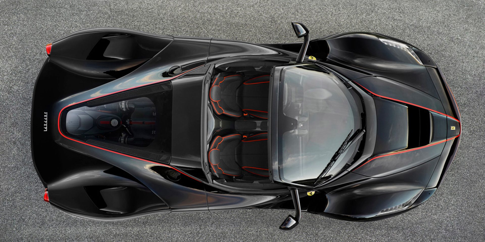Un top che permette al motore centrale posteriore di essere lasciato libero alla vista dalla superficie in vetro che lo sormonta, e che necessita pertanto di poco spazio per il ripiegamento, caratterizza la porzione superiore de LaFerrari Aperta.