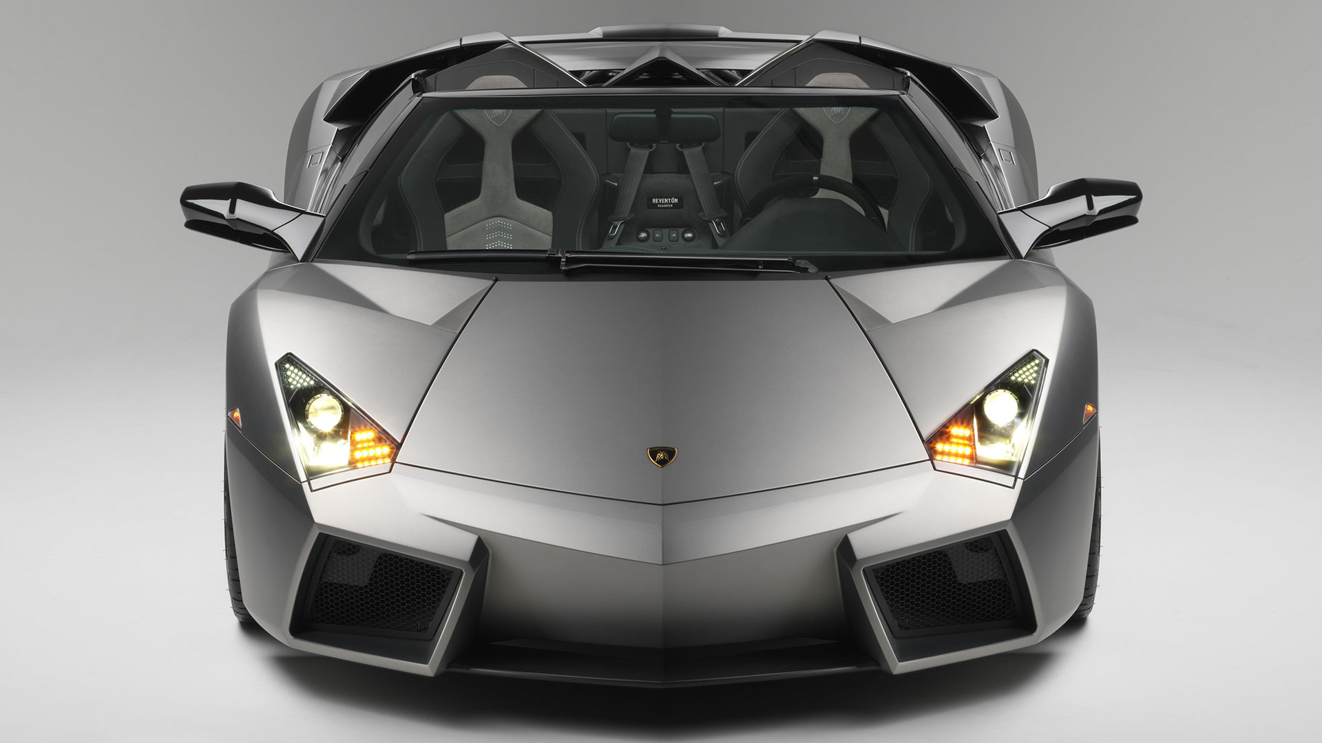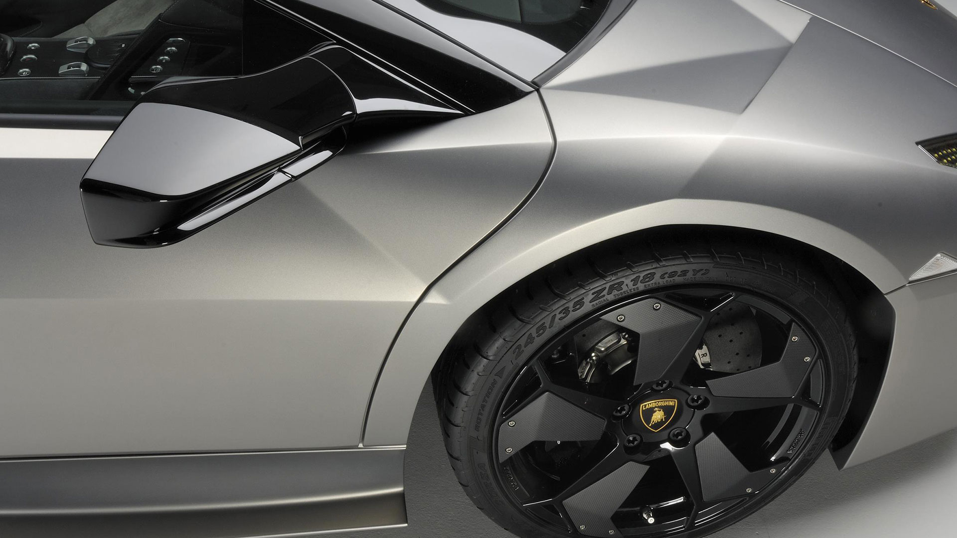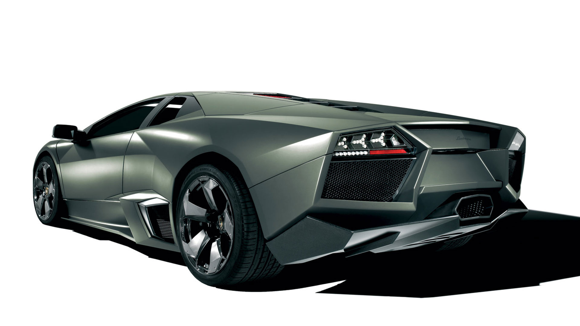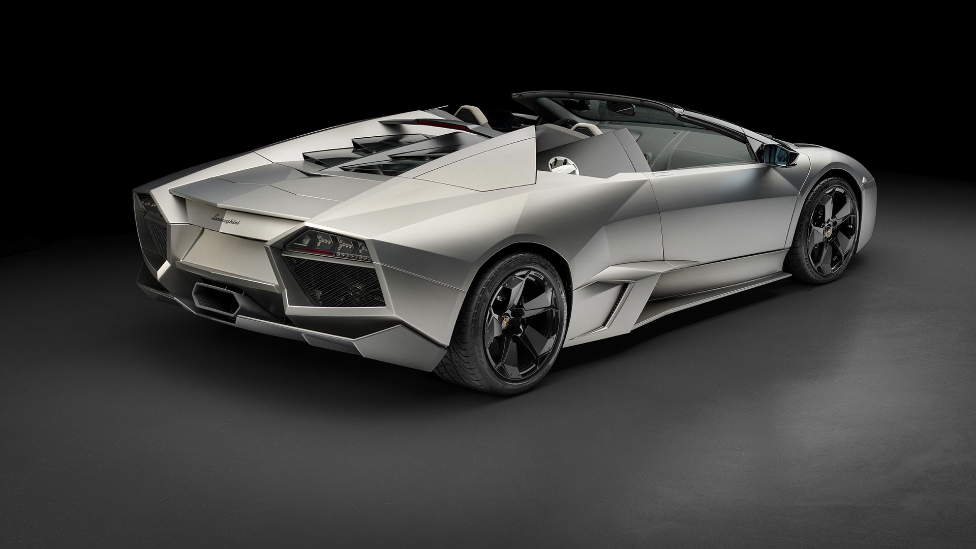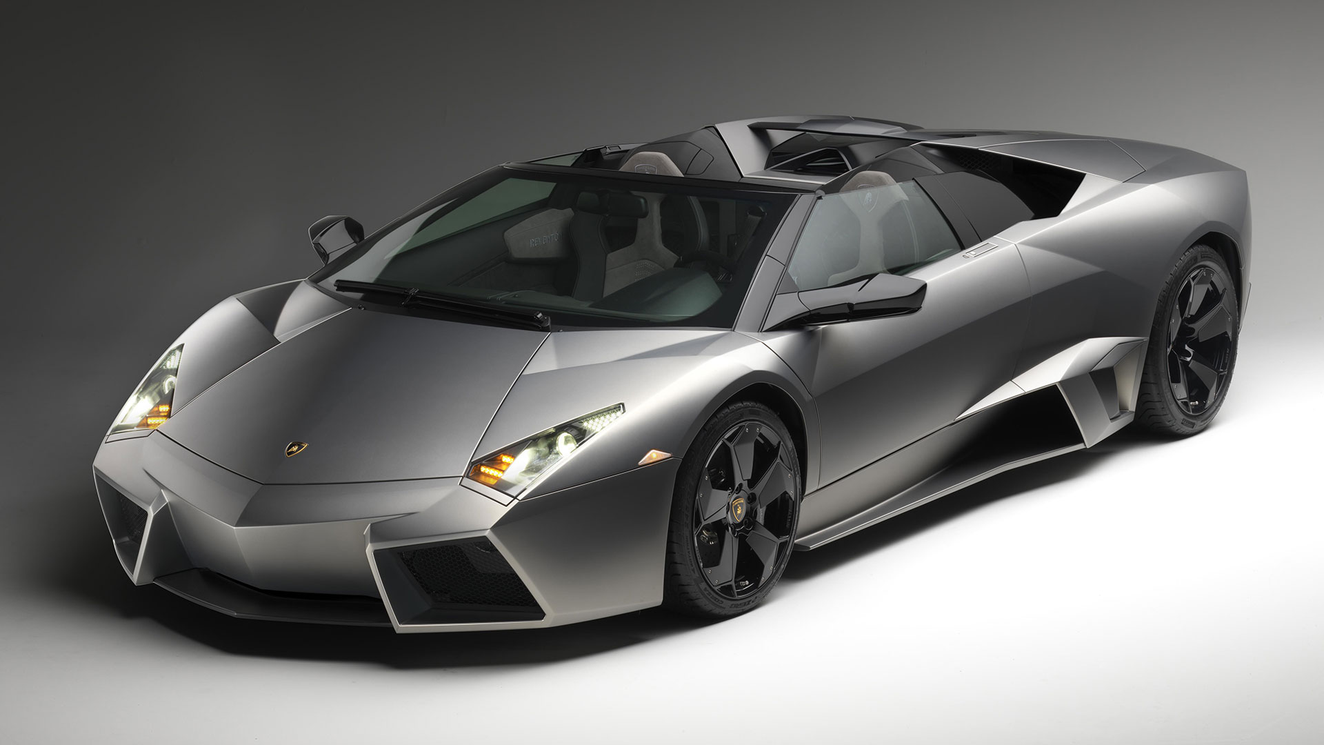 Ma – sebbene senza tradire il suo passato – è stata l’aviazione moderna, dicevamo, la principale fonte d’ispirazione di questa vettura. E a confermare tale concetto furono le stesse parole del Presidente e Amministratore Delegato di Automobili Lamborghini Stephan Winkelmann, che dichiarò: “la Reventón è la più estrema di tutte, un vero e proprio superlativo a quattro ruote. Partendo dalla base tecnica della Murciélago, i nostri designer del Centro Stile Lamborghini hanno compresso ed estremizzato il DNA del marchio”. Sebbene infatti le contemporanee Murciélago e Gallardo si proponevano di trasmettere – a livello stilistico – tanto forza, quanto dinamicità, la Reventón voleva portare questo concetto su un altro livello. Pertanto i designer del Centro Stile Lamborghini attinsero a piena mani da un ambito in cui velocità e dinamismo dominano la scena allo scopo di reinterpretare in chiave ancor più moderna (quasi futuristica) quelle linee spigolose, essenziali e nette che da decenni (in particolar modo dalla Countach in avanti) caratterizzano il linguaggio stilistico delle quattro ruote che escono dallo stabilimento di Sant’Agata Bolognese, dando così vita a linee interrotte e a superfici contorte atte a creare giochi di volumi, e di conseguenza di luci, allo scopo di restituire un senso di movimento anche da ferma. Parlando di stile, la Lamborghini Reventón conserva le portiere con apertura a forbice come su tutte le V12 del Toro dalla Countach in avanti, mentre al di sotto di queste ultime si fanno notare delle prese d’aria asimmetriche: una scelta singolare ma che segue delle funzioni ben precise. A lato conducente la presa aria è di grandi dimensioni allo scopo di aumentare l’afflusso verso il radiatore dell’olio, mentre a lato passeggero troviamo una superficie appiattita che si pone come obiettivo quello di convogliare il flusso d’aria verso il sotto scocca: una struttura sotto-pavimento piatta e ottimizzata dal punto di vista aerodinamico che culmina in un diffusore molto marcato allo scopo di promettere elevata stabilità anche a 340 Km/h. Nonostante l’estremismo delle forme, la Reventón preservava tutti i tratti salienti della Murciélago restituendo al contempo caratteristiche ottimizzate per quanto concerne: aerodinamica; raffreddamento motore; impianto di aspirazione e freni. Sono stati modificati l’afflusso d’aria e le sezioni delle prese aria a geometria variabile del motore e dello spoiler posteriore, anch’esso regolabile. E a sublimare questa ricercatezza stilistica troviamo tutta una serie di dettagli, come il cofano motore in vetro a lamelle (con quel marcato angolo di freccia che caratterizza l’intero design della vettura); il tappo del serbatoio della benzina in alluminio e fresato dal pieno; i gruppi ottici anteriori che combinano Bi-Xenon (che sfruttavano i più moderni diodi ad emissione di luce disponibili sul mercato al momento) a 7 LED (mentre per la funzione lampeggiante vengono schierati altri 9 diodi); le luci posteriori a LED che sfruttavano elementi ad elevata resistenza al calore (a fronte dell’elevata temperatura che si sviluppa in quella sezione della vettura sono infatti stati messi a punto speciali LED resistenti al calore, utilizzati come lampeggiatori, luci di stop e fanali posteriori) e con un effetto ottico a triplice freccia. A chiudere il cerchio della caratterizzazione stilistica troviamo dei cerchi appositamente realizzati per questo modello caratterizzati da un design ‘lamellare’ (quasi a ricordare le palette dei turbocompressori degli aerei) con razze in alluminio verniciate in nero a cui sono fissate delle alette in carbonio opaco che portano aria fresca all’impianto frenante e contribuiscono sensibilmente nella resa visiva della vettura. Ciliegina sulla torta il colore: un grigio-verde opaco medio a sua volta creato ad hoc e che non presenta la consueta lucentezza delle tonalità ‘Lambo’ ma che grazie a determinate particelle metalliche è in grado di risplendere al sole.