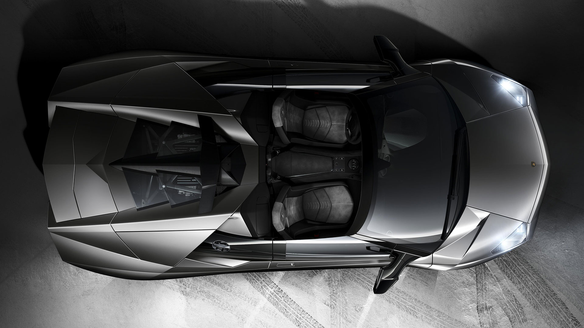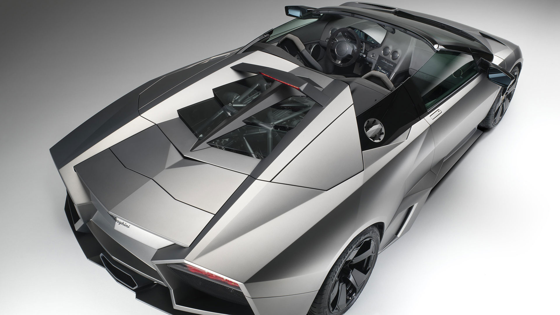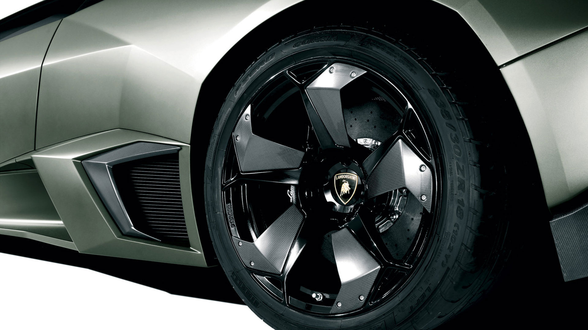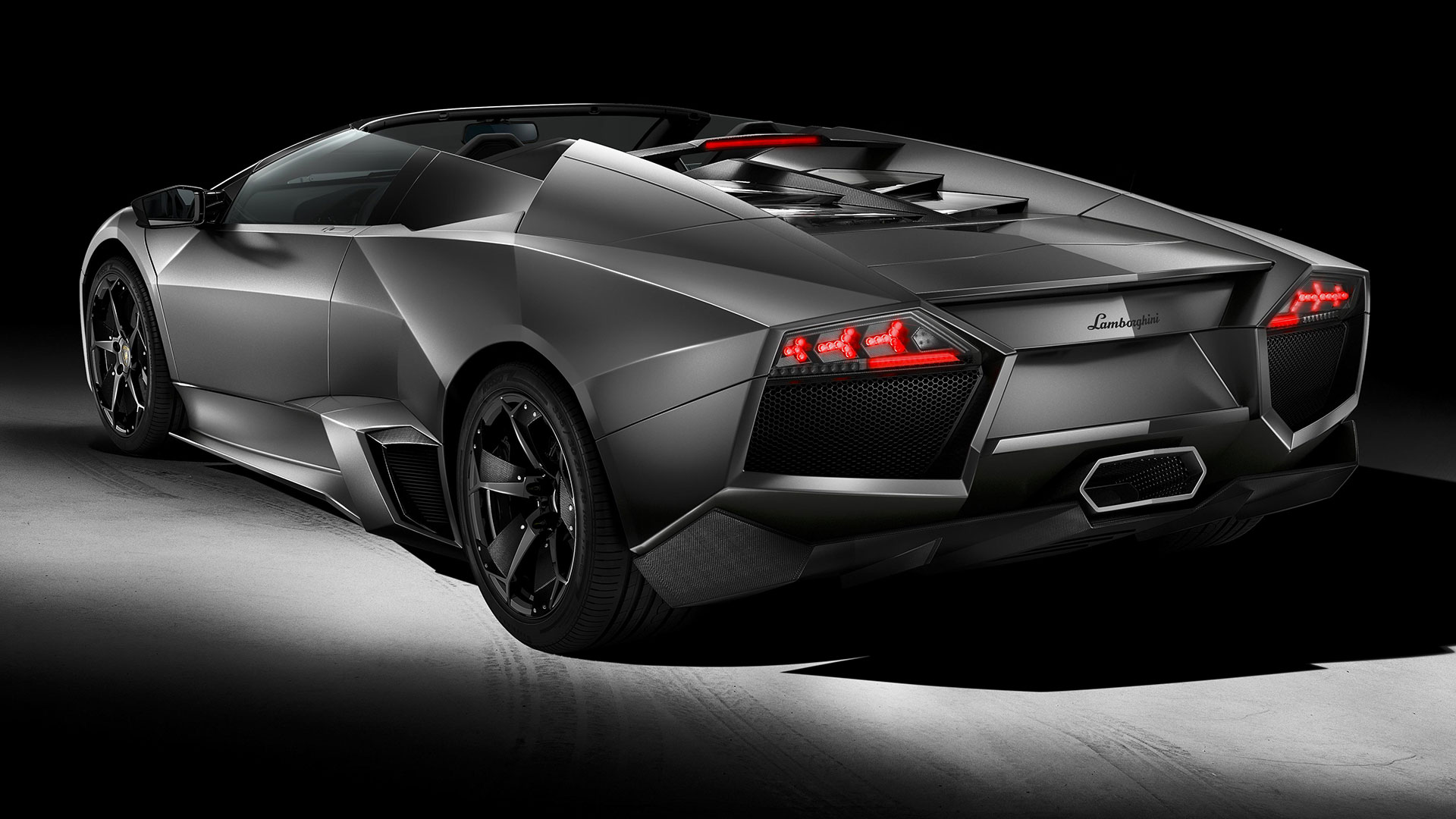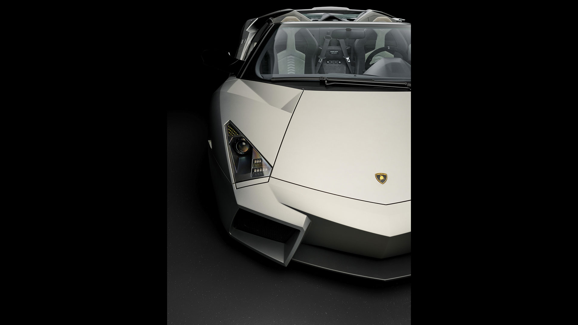 Ma – sebbene senza tradire il suo passato – è stata l’aviazione moderna, dicevamo, la principale fonte d’ispirazione di questa vettura. E a confermare tale concetto furono le stesse parole del Presidente e Amministratore Delegato di Automobili Lamborghini Stephan Winkelmann, che dichiarò: “la Reventón è la più estrema di tutte, un vero e proprio superlativo a quattro ruote. Partendo dalla base tecnica della Murciélago, i nostri designer del Centro Stile Lamborghini hanno compresso ed estremizzato il DNA del marchio”. Sebbene infatti le contemporanee Murciélago e Gallardo si proponevano di trasmettere – a livello stilistico – tanto forza, quanto dinamicità, la Reventón voleva portare questo concetto su un altro livello. Pertanto i designer del Centro Stile Lamborghini attinsero a piena mani da un ambito in cui velocità e dinamismo dominano la scena allo scopo di reinterpretare in chiave ancor più moderna (quasi futuristica) quelle linee spigolose, essenziali e nette che da decenni (in particolar modo dalla Countach in avanti) caratterizzano il linguaggio stilistico delle quattro ruote che escono dallo stabilimento di Sant’Agata Bolognese, dando così vita a linee interrotte e a superfici contorte atte a creare giochi di volumi, e di conseguenza di luci, allo scopo di restituire un senso di movimento anche da ferma. Parlando di stile, la Lamborghini Reventón conserva le portiere con apertura a forbice come su tutte le V12 del Toro dalla Countach in avanti, mentre al di sotto di queste ultime si fanno notare delle prese d’aria asimmetriche: una scelta singolare ma che segue delle funzioni ben precise. A lato conducente la presa aria è di grandi dimensioni allo scopo di aumentare l’afflusso verso il radiatore dell’olio, mentre a lato passeggero troviamo una superficie appiattita che si pone come obiettivo quello di convogliare il flusso d’aria verso il sotto scocca: una struttura sotto-pavimento piatta e ottimizzata dal punto di vista aerodinamico che culmina in un diffusore molto marcato allo scopo di promettere elevata stabilità anche a 340 Km/h. Nonostante l’estremismo delle forme, la Reventón preservava tutti i tratti salienti della Murciélago restituendo al contempo caratteristiche ottimizzate per quanto concerne: aerodinamica; raffreddamento motore; impianto di aspirazione e freni. Sono stati modificati l’afflusso d’aria e le sezioni delle prese aria a geometria variabile del motore e dello spoiler posteriore, anch’esso regolabile. E a sublimare questa ricercatezza stilistica troviamo tutta una serie di dettagli, come il cofano motore in vetro a lamelle (con quel marcato angolo di freccia che caratterizza l’intero design della vettura); il tappo del serbatoio della benzina in alluminio e fresato dal pieno; i gruppi ottici anteriori che combinano Bi-Xenon (che sfruttavano i più moderni diodi ad emissione di luce disponibili sul mercato al momento) a 7 LED (mentre per la funzione lampeggiante vengono schierati altri 9 diodi); le luci posteriori a LED che sfruttavano elementi ad elevata resistenza al calore (a fronte dell’elevata temperatura che si sviluppa in quella sezione della vettura sono infatti stati messi a punto speciali LED resistenti al calore, utilizzati come lampeggiatori, luci di stop e fanali posteriori) e con un effetto ottico a triplice freccia. A chiudere il cerchio della caratterizzazione stilistica troviamo dei cerchi appositamente realizzati per questo modello caratterizzati da un design ‘lamellare’ (quasi a ricordare le palette dei turbocompressori degli aerei) con razze in alluminio verniciate in nero a cui sono fissate delle alette in carbonio opaco che portano aria fresca all’impianto frenante e contribuiscono sensibilmente nella resa visiva della vettura. Ciliegina sulla torta il colore: un grigio-verde opaco medio a sua volta creato ad hoc e che non presenta la consueta lucentezza delle tonalità ‘Lambo’ ma che grazie a determinate particelle metalliche è in grado di risplendere al sole.