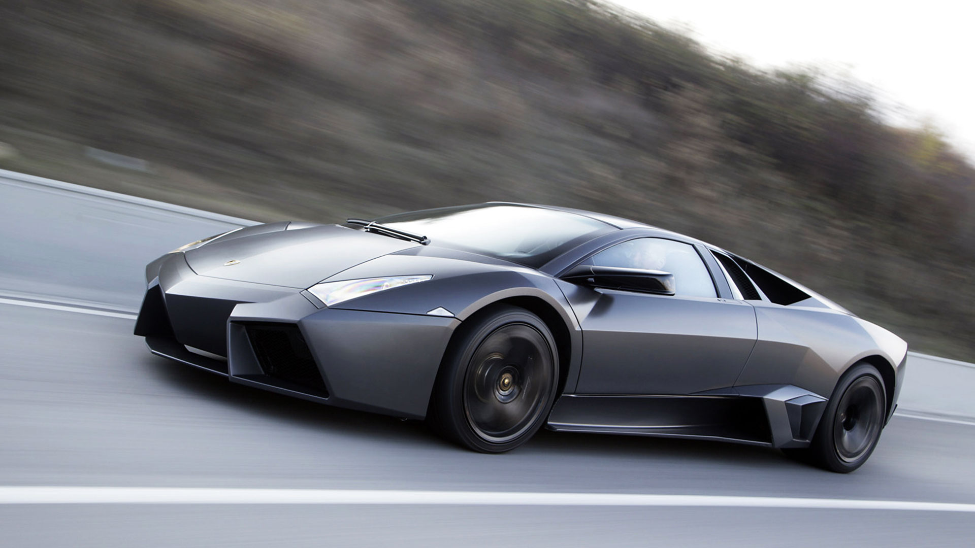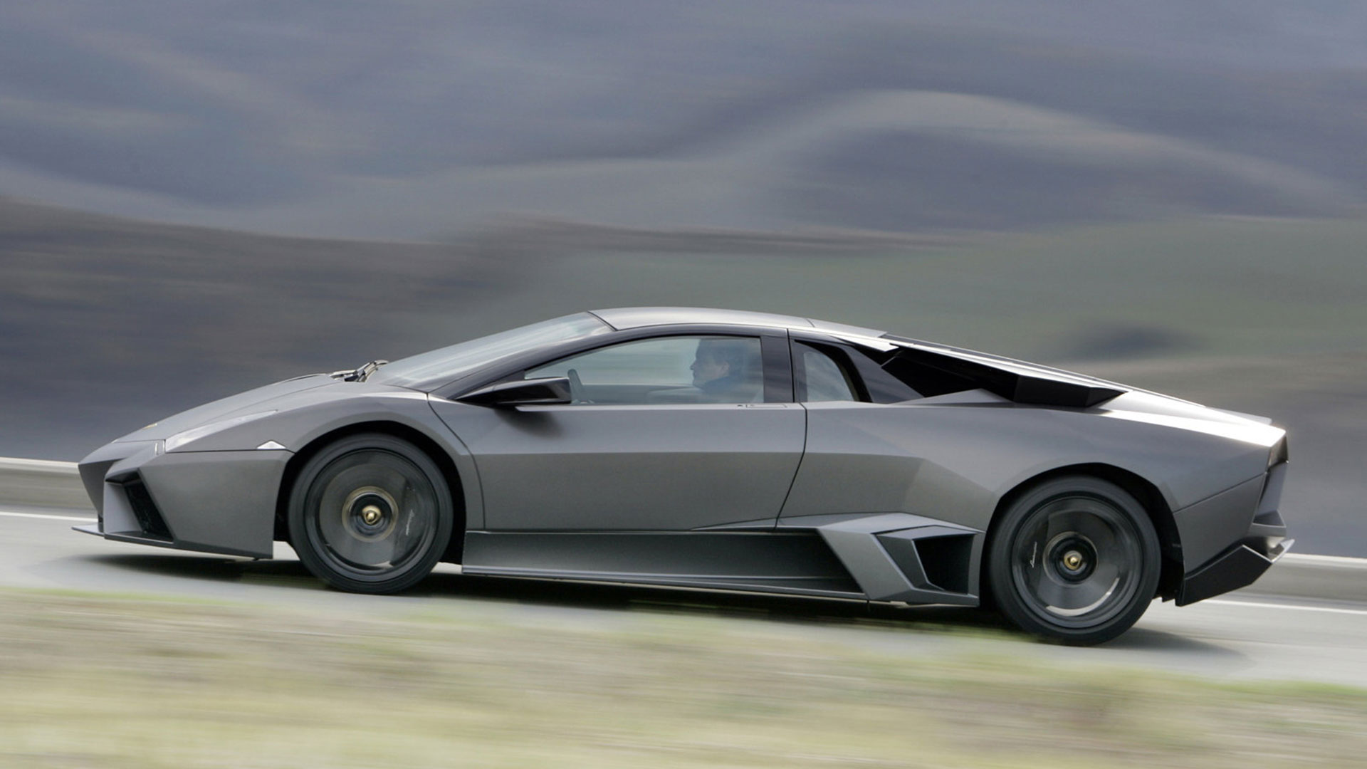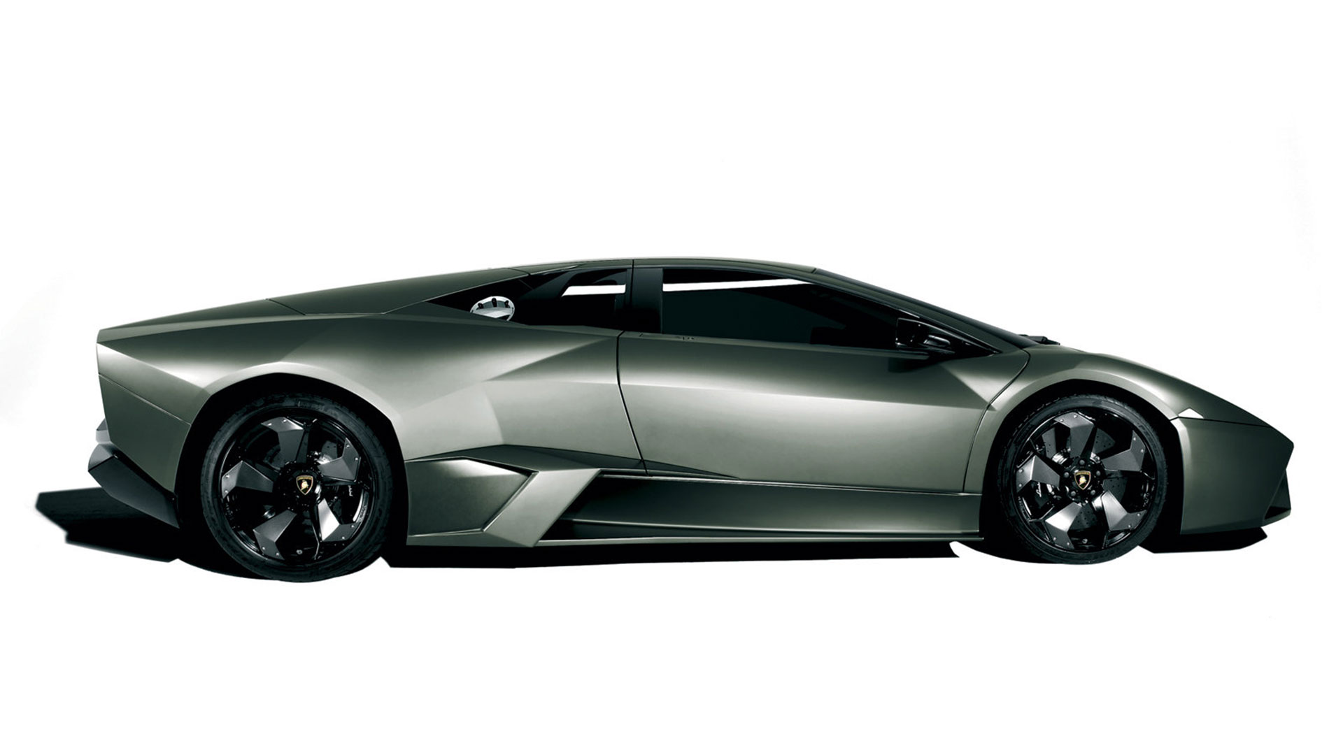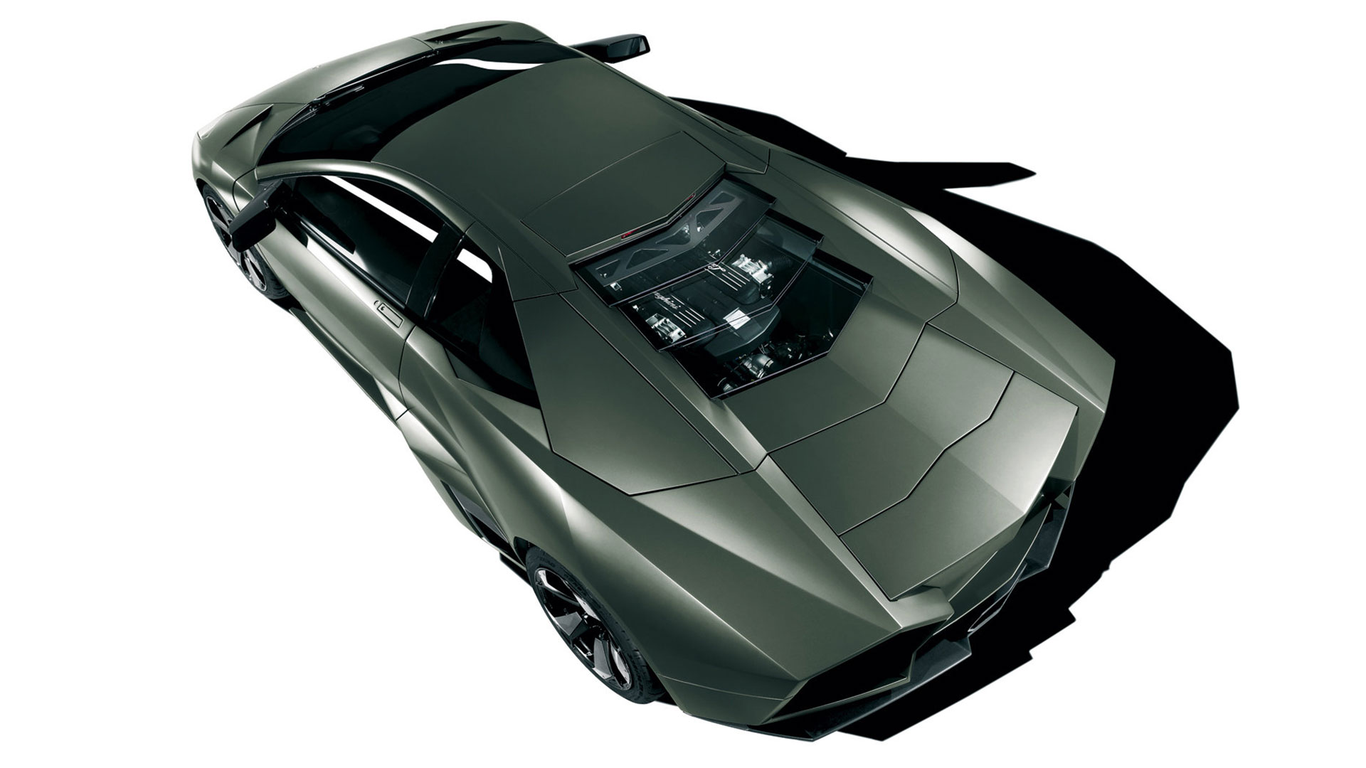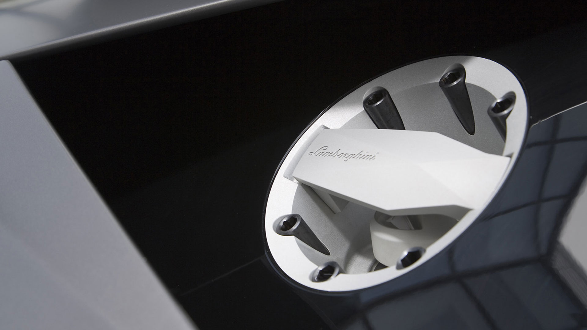 Ma – sebbene senza tradire il suo passato – è stata l’aviazione moderna, dicevamo, la principale fonte d’ispirazione di questa vettura. E a confermare tale concetto furono le stesse parole del Presidente e Amministratore Delegato di Automobili Lamborghini Stephan Winkelmann, che dichiarò: “la Reventón è la più estrema di tutte, un vero e proprio superlativo a quattro ruote. Partendo dalla base tecnica della Murciélago, i nostri designer del Centro Stile Lamborghini hanno compresso ed estremizzato il DNA del marchio”. Sebbene infatti le contemporanee Murciélago e Gallardo si proponevano di trasmettere – a livello stilistico – tanto forza, quanto dinamicità, la Reventón voleva portare questo concetto su un altro livello. Pertanto i designer del Centro Stile Lamborghini attinsero a piena mani da un ambito in cui velocità e dinamismo dominano la scena allo scopo di reinterpretare in chiave ancor più moderna (quasi futuristica) quelle linee spigolose, essenziali e nette che da decenni (in particolar modo dalla Countach in avanti) caratterizzano il linguaggio stilistico delle quattro ruote che escono dallo stabilimento di Sant’Agata Bolognese, dando così vita a linee interrotte e a superfici contorte atte a creare giochi di volumi, e di conseguenza di luci, allo scopo di restituire un senso di movimento anche da ferma. Parlando di stile, la Lamborghini Reventón conserva le portiere con apertura a forbice come su tutte le V12 del Toro dalla Countach in avanti, mentre al di sotto di queste ultime si fanno notare delle prese d’aria asimmetriche: una scelta singolare ma che segue delle funzioni ben precise. A lato conducente la presa aria è di grandi dimensioni allo scopo di aumentare l’afflusso verso il radiatore dell’olio, mentre a lato passeggero troviamo una superficie appiattita che si pone come obiettivo quello di convogliare il flusso d’aria verso il sotto scocca: una struttura sotto-pavimento piatta e ottimizzata dal punto di vista aerodinamico che culmina in un diffusore molto marcato allo scopo di promettere elevata stabilità anche a 340 Km/h. Nonostante l’estremismo delle forme, la Reventón preservava tutti i tratti salienti della Murciélago restituendo al contempo caratteristiche ottimizzate per quanto concerne: aerodinamica; raffreddamento motore; impianto di aspirazione e freni. Sono stati modificati l’afflusso d’aria e le sezioni delle prese aria a geometria variabile del motore e dello spoiler posteriore, anch’esso regolabile. E a sublimare questa ricercatezza stilistica troviamo tutta una serie di dettagli, come il cofano motore in vetro a lamelle (con quel marcato angolo di freccia che caratterizza l’intero design della vettura); il tappo del serbatoio della benzina in alluminio e fresato dal pieno; i gruppi ottici anteriori che combinano Bi-Xenon (che sfruttavano i più moderni diodi ad emissione di luce disponibili sul mercato al momento) a 7 LED (mentre per la funzione lampeggiante vengono schierati altri 9 diodi); le luci posteriori a LED che sfruttavano elementi ad elevata resistenza al calore (a fronte dell’elevata temperatura che si sviluppa in quella sezione della vettura sono infatti stati messi a punto speciali LED resistenti al calore, utilizzati come lampeggiatori, luci di stop e fanali posteriori) e con un effetto ottico a triplice freccia. A chiudere il cerchio della caratterizzazione stilistica troviamo dei cerchi appositamente realizzati per questo modello caratterizzati da un design ‘lamellare’ (quasi a ricordare le palette dei turbocompressori degli aerei) con razze in alluminio verniciate in nero a cui sono fissate delle alette in carbonio opaco che portano aria fresca all’impianto frenante e contribuiscono sensibilmente nella resa visiva della vettura. Ciliegina sulla torta il colore: un grigio-verde opaco medio a sua volta creato ad hoc e che non presenta la consueta lucentezza delle tonalità ‘Lambo’ ma che grazie a determinate particelle metalliche è in grado di risplendere al sole.