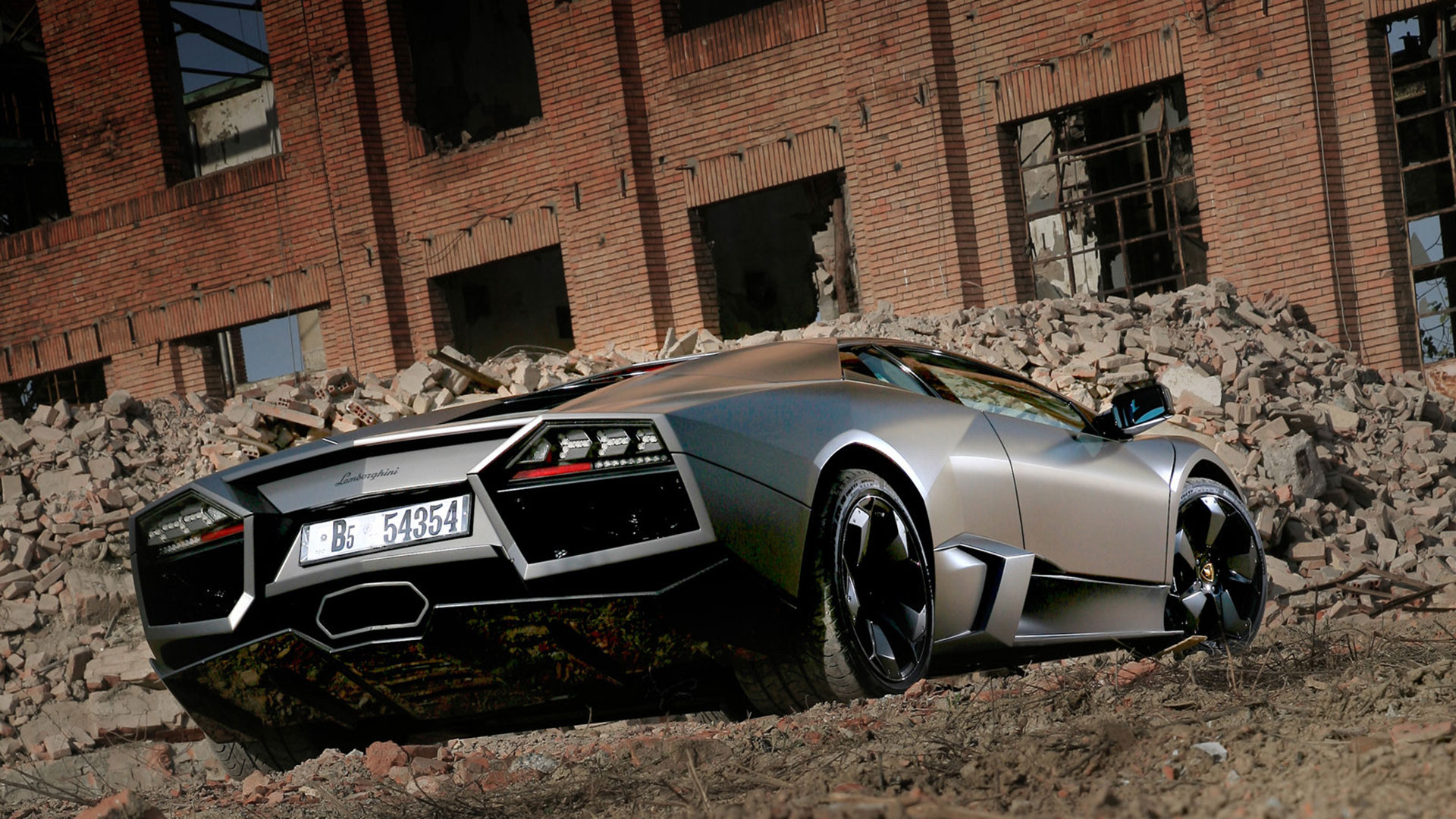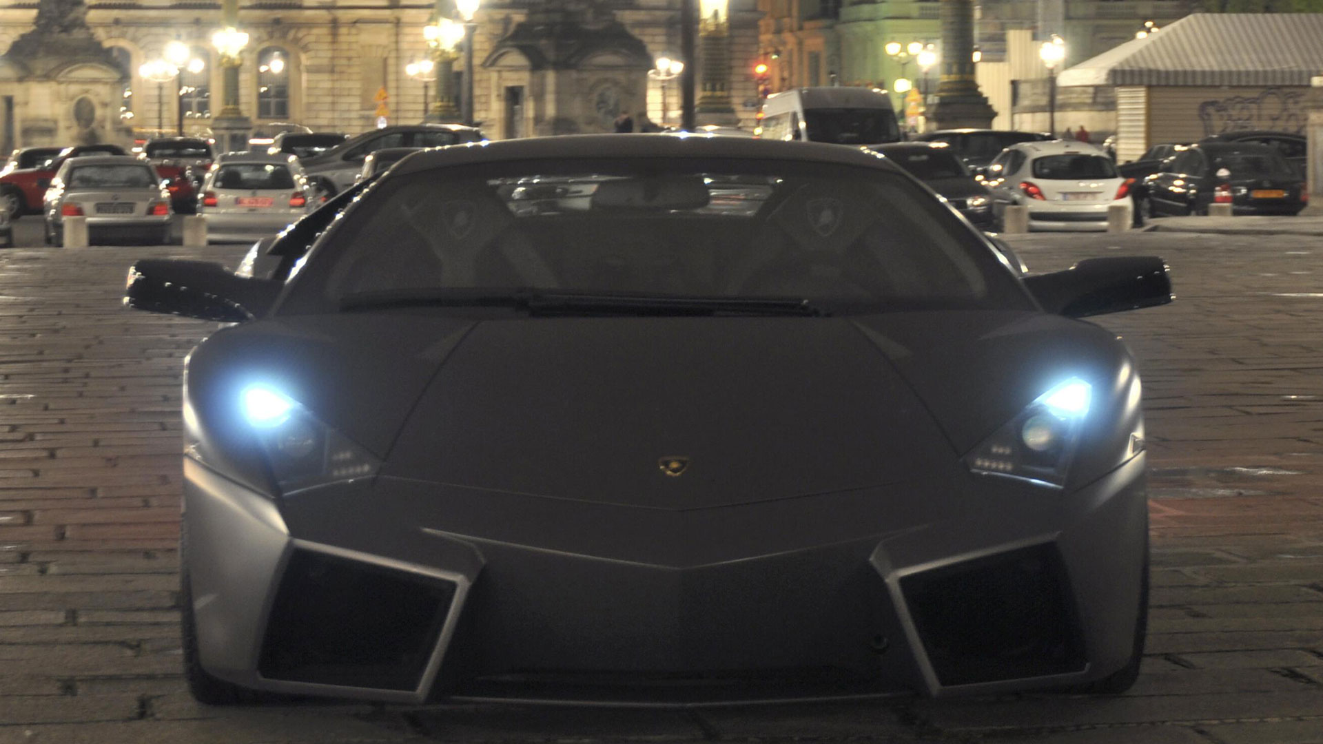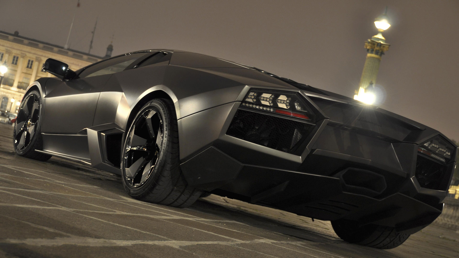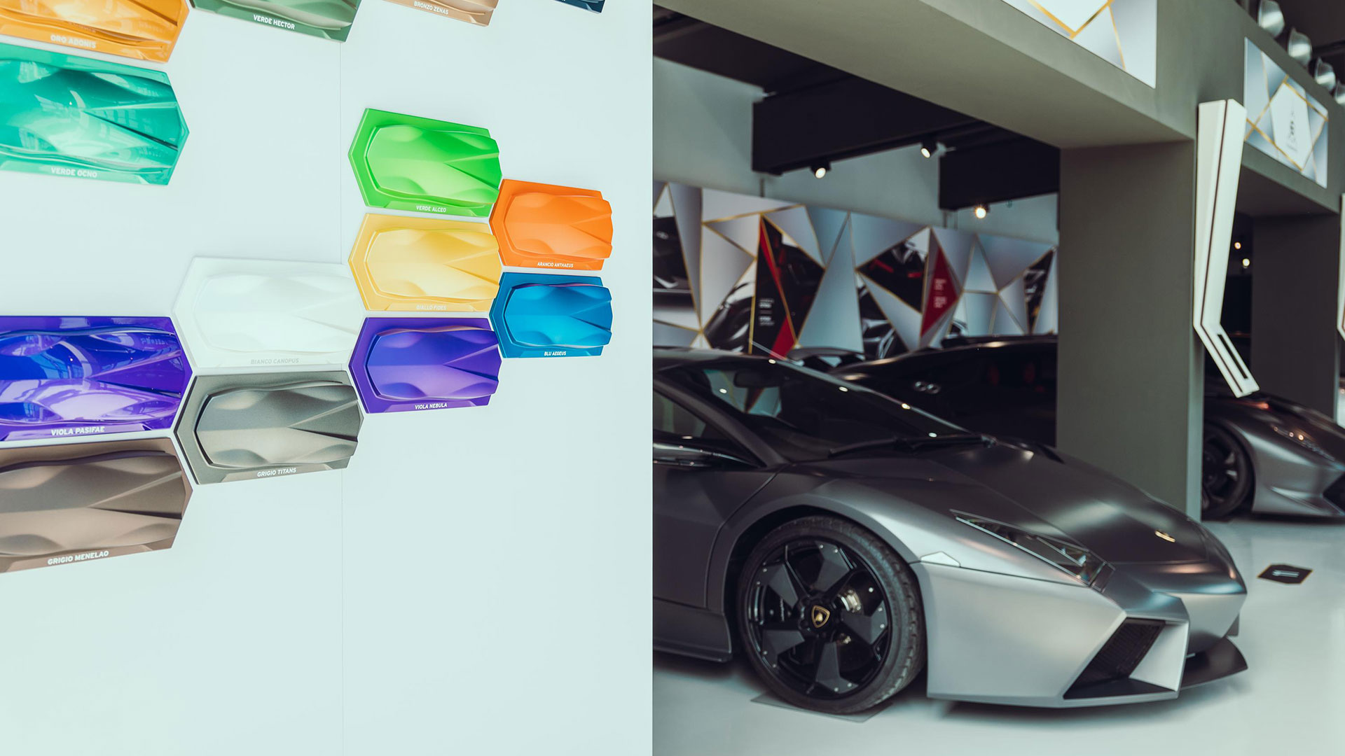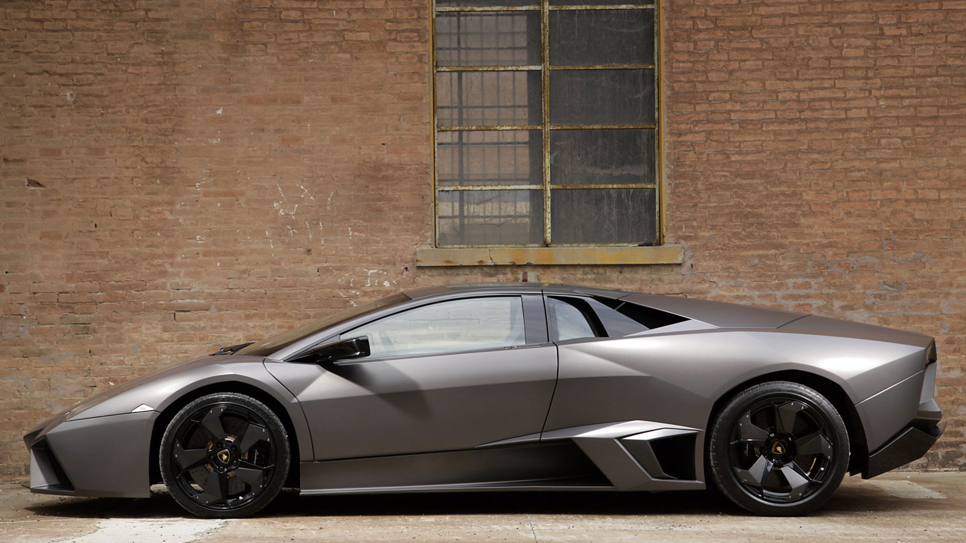 Ma – sebbene senza tradire il suo passato – è stata l’aviazione moderna, dicevamo, la principale fonte d’ispirazione di questa vettura. E a confermare tale concetto furono le stesse parole del Presidente e Amministratore Delegato di Automobili Lamborghini Stephan Winkelmann, che dichiarò: “la Reventón è la più estrema di tutte, un vero e proprio superlativo a quattro ruote. Partendo dalla base tecnica della Murciélago, i nostri designer del Centro Stile Lamborghini hanno compresso ed estremizzato il DNA del marchio”. Sebbene infatti le contemporanee Murciélago e Gallardo si proponevano di trasmettere – a livello stilistico – tanto forza, quanto dinamicità, la Reventón voleva portare questo concetto su un altro livello. Pertanto i designer del Centro Stile Lamborghini attinsero a piena mani da un ambito in cui velocità e dinamismo dominano la scena allo scopo di reinterpretare in chiave ancor più moderna (quasi futuristica) quelle linee spigolose, essenziali e nette che da decenni (in particolar modo dalla Countach in avanti) caratterizzano il linguaggio stilistico delle quattro ruote che escono dallo stabilimento di Sant’Agata Bolognese, dando così vita a linee interrotte e a superfici contorte atte a creare giochi di volumi, e di conseguenza di luci, allo scopo di restituire un senso di movimento anche da ferma. Parlando di stile, la Lamborghini Reventón conserva le portiere con apertura a forbice come su tutte le V12 del Toro dalla Countach in avanti, mentre al di sotto di queste ultime si fanno notare delle prese d’aria asimmetriche: una scelta singolare ma che segue delle funzioni ben precise. A lato conducente la presa aria è di grandi dimensioni allo scopo di aumentare l’afflusso verso il radiatore dell’olio, mentre a lato passeggero troviamo una superficie appiattita che si pone come obiettivo quello di convogliare il flusso d’aria verso il sotto scocca: una struttura sotto-pavimento piatta e ottimizzata dal punto di vista aerodinamico che culmina in un diffusore molto marcato allo scopo di promettere elevata stabilità anche a 340 Km/h. Nonostante l’estremismo delle forme, la Reventón preservava tutti i tratti salienti della Murciélago restituendo al contempo caratteristiche ottimizzate per quanto concerne: aerodinamica; raffreddamento motore; impianto di aspirazione e freni. Sono stati modificati l’afflusso d’aria e le sezioni delle prese aria a geometria variabile del motore e dello spoiler posteriore, anch’esso regolabile. E a sublimare questa ricercatezza stilistica troviamo tutta una serie di dettagli, come il cofano motore in vetro a lamelle (con quel marcato angolo di freccia che caratterizza l’intero design della vettura); il tappo del serbatoio della benzina in alluminio e fresato dal pieno; i gruppi ottici anteriori che combinano Bi-Xenon (che sfruttavano i più moderni diodi ad emissione di luce disponibili sul mercato al momento) a 7 LED (mentre per la funzione lampeggiante vengono schierati altri 9 diodi); le luci posteriori a LED che sfruttavano elementi ad elevata resistenza al calore (a fronte dell’elevata temperatura che si sviluppa in quella sezione della vettura sono infatti stati messi a punto speciali LED resistenti al calore, utilizzati come lampeggiatori, luci di stop e fanali posteriori) e con un effetto ottico a triplice freccia. A chiudere il cerchio della caratterizzazione stilistica troviamo dei cerchi appositamente realizzati per questo modello caratterizzati da un design ‘lamellare’ (quasi a ricordare le palette dei turbocompressori degli aerei) con razze in alluminio verniciate in nero a cui sono fissate delle alette in carbonio opaco che portano aria fresca all’impianto frenante e contribuiscono sensibilmente nella resa visiva della vettura. Ciliegina sulla torta il colore: un grigio-verde opaco medio a sua volta creato ad hoc e che non presenta la consueta lucentezza delle tonalità ‘Lambo’ ma che grazie a determinate particelle metalliche è in grado di risplendere al sole.