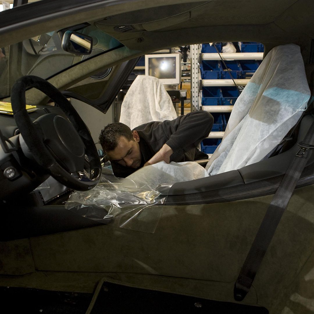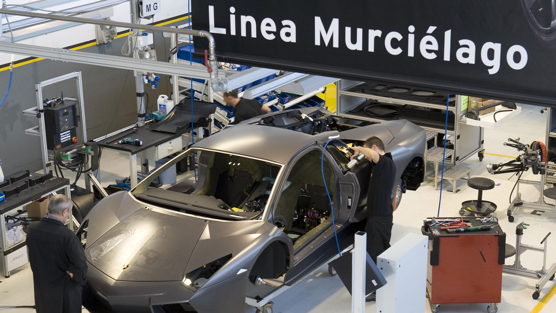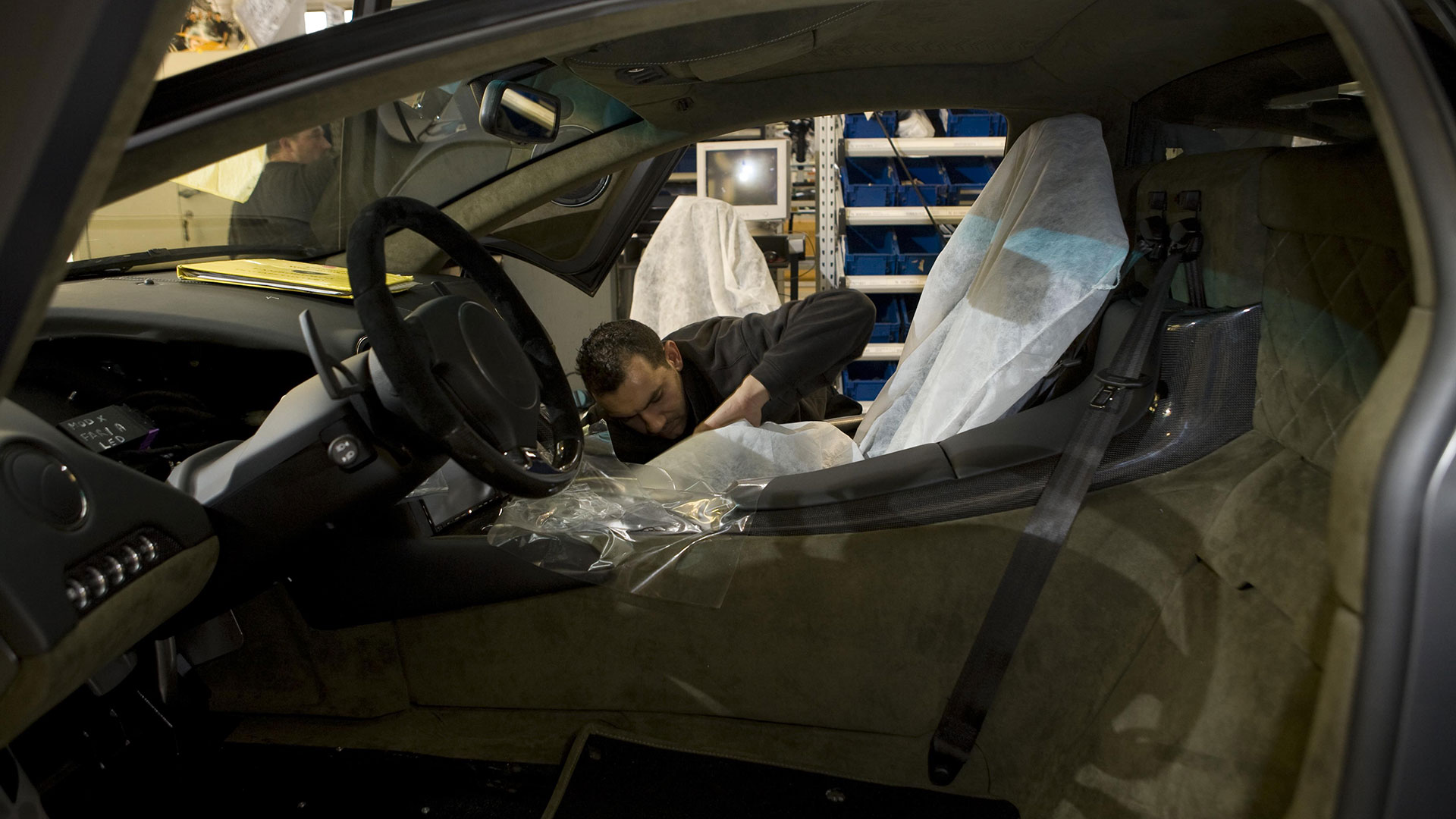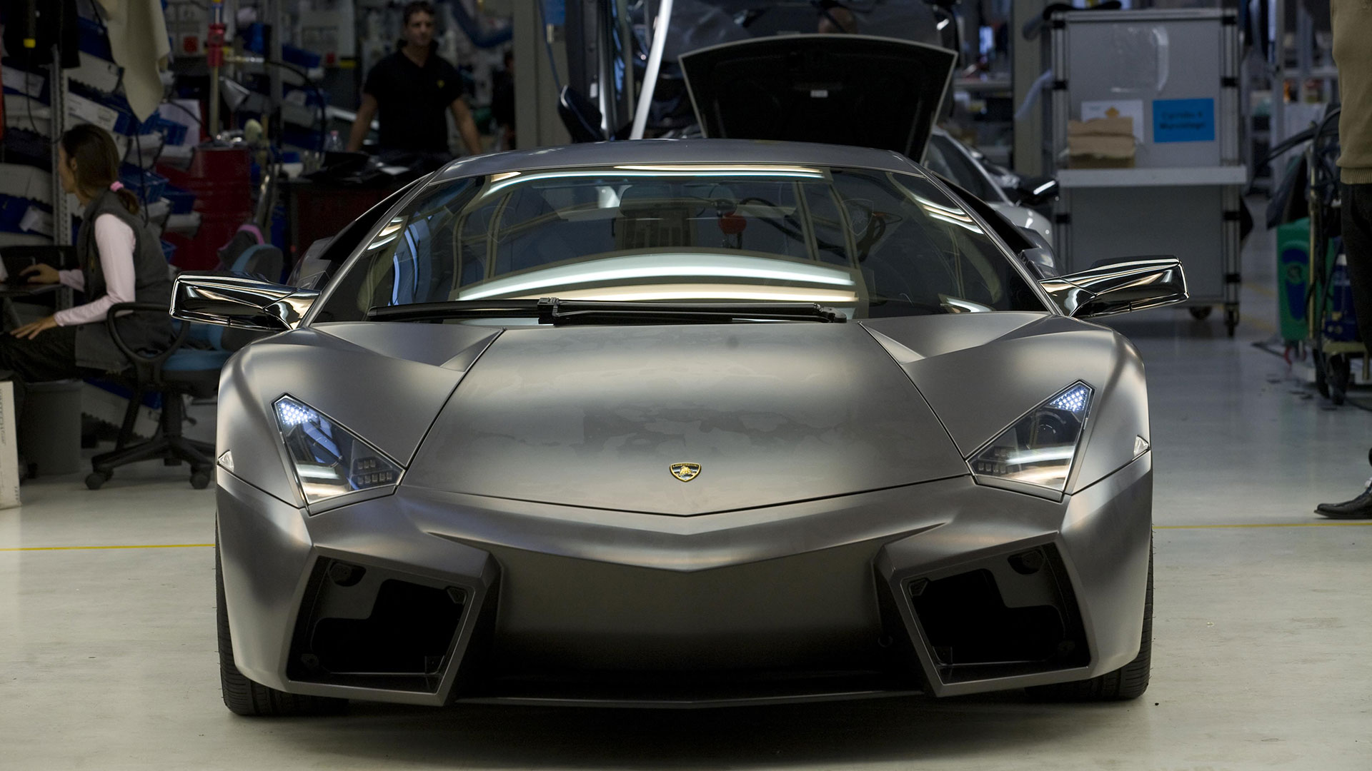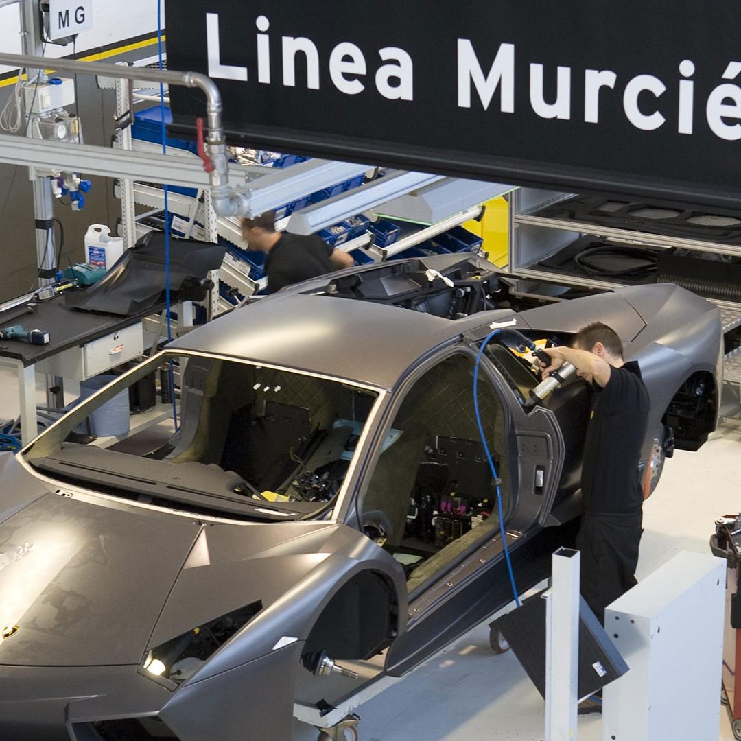 Questa vettura inoltre si poneva un altro ambizioso obiettivo, ovvero dimostrare tutta la versatilità e l’efficienza del Centro Stile Lamborghini: infatti, dalle prime idee al prodotto finito, intercorse meno di un anno di tempo. Il processo di progettazione completo, dai primi abbozzi su carta o dai modelli tridimensionali a computer in scala 1:10 o 1:4 fino ai prototipi a grandezza reale, venne organizzato in piccoli gruppi di lavoro. E così, per la prima volta nella sua storia, il Centro Stile Lamborghini fu in grado di concretizzare la sua filosofia stilistica completamente internamente e senza avvalersi di collaborazioni esterne. Includendo in questo procedimento anche l’intera piattaforma elettronica. Lo stesso processo di integrazione dei display nell’elettronica della vettura ha avuto luogo nell’Ufficio Tecnico Lamborghini. Progettazione e sviluppo CAD e realizzazione del prototipo vennero tutti effettuati sotto il controllo della Divisione Ricerca e Sviluppo. Vale la pena spendere due parole in più su questo argomento: inaugurato nel 2004, il Centro Stile Lamborghini ha sede in un edificio che misura 2.900 mq e che si estende su due piani collegati tra loro. Il grande padiglione è attrezzato con due piani di riscontro e relativi apparecchi di lavorazione e analisi, mentre altri locali sono destinati alle più moderne stazioni di lavoro computerizzate per i designer e all’officina per la realizzazione dei modelli di stile. Il Centro Stile è inoltre strettamente collegato al vicino Ufficio Tecnico. Ma torniamo alla Reventón. La sua ‘struttura scheletrica’ e la sua ‘pelle’ erano ovviamente di estrema avanguardia: questa incredibile hypercar sfruttava infatti un rivestimento esterno realizzato in CFC, un materiale composito a base di fibra di carbonio tanto stabile quanto leggero. I componenti esterni erano invece incollati e fissati al telaio, in CFC e acciaio.