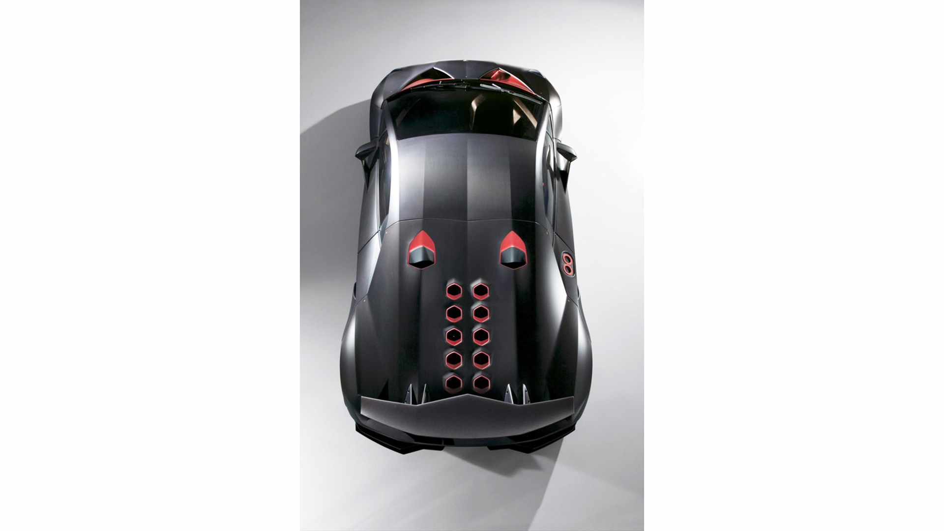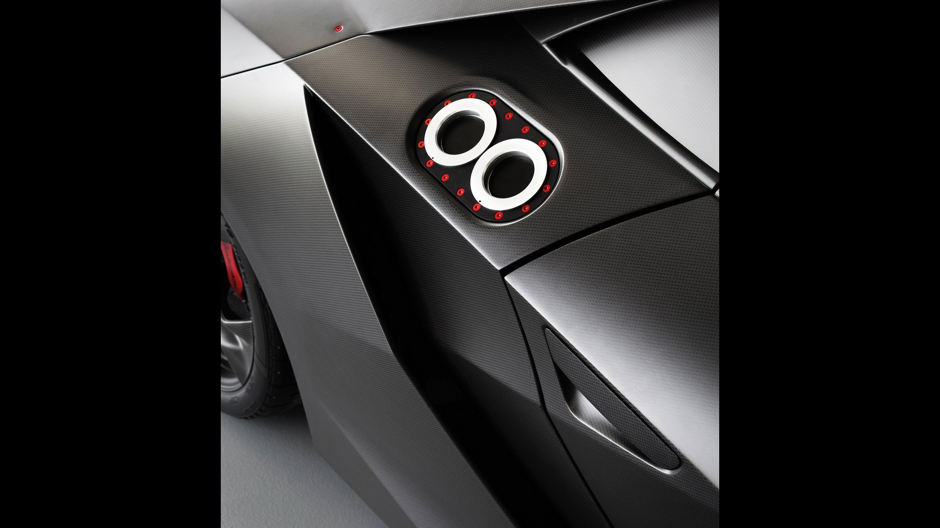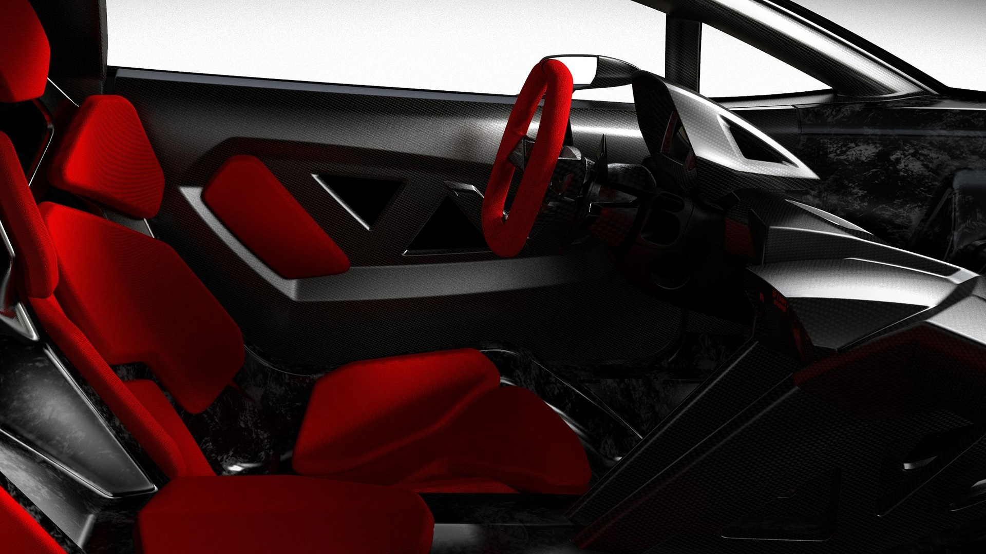 Ma andiamo per ordine. Come dicevamo, alla base della vettura troviamo una struttura di fibra di carbonio solida, rigida e leggera, in quanto la cellula dell’auto altro non è che una monoscocca: sezione anteriore, carrozzeria (non verniciata), assorbitori di impatto, le principali componenti delle sospensioni e i cerchi sono realizzati in fibra di carbonio (perfino gli inserti rossi che troviamo nella carrozzeria sono realizzati in una vernice trasparente opaca che sfrutta componenti ceramici nano tecnologici e che vede l’aggiunta di micro cristalli riflettenti fortemente in grado di resistere all’usura: giusto per farvi comprendere quanto l’attenzione al contenimento delle masse, su questa vettura, sia stato veramente maniacale, al punto che anche i gusci dei sedili sono parte integrante dell’auto e non componenti a sé). Anche l’albero di trasmissione è stato realizzato in fibra di carbonio (soluzione che ha permesso la rimozione del giunto centrale dell’albero, portando quindi ad una consistente riduzione di peso), mentre i terminali di scarico sono invece in Pyrosic: un materiale composito di vetro a matrice ceramica in grado di tollerare temperature molto elevate, fino a 900°. Il tutto a demarcare il profondo legame aeronautico di questa incredibile e pazzesca supercar. E a proteggere tutto il nobile materiale di cui questa folle (nonché rastrematissima, super-compatta e minimalistica) auto è composta troviamo un rivestimento lucido-opaco. E come anticipavamo poc’anzi, le strutture complesse sono state integrate in un’unica componente: ad esempio, sezione anteriore e posteriore della scocca sono state entrambe realizzate in un unico pezzo. Queste componenti di grandi dimensioni sono state fissate con delle viti allo scopo di consentirne il rapido disassemblaggio. E come dicevamo, l’approccio minimalista è stato applicato anche agli interni (a loro volta iper-essenziali e che mettono alla vista inserti rossi e rivestimenti in Alcantara sempre in tale cromia), a partire dai sedili, che rinunciano completamente ad una struttura convenzionale per far parte direttamente della monoscocca. La triangolazione di guida può quindi essere variata agendo sulla regolazione dal volante (che può essere aggiustato in altezza e in estensione) e della pedaliera, che può essere sistemata longitudinalmente grazie ad un dispositivo elettrico. Inoltre – sempre allo scopo di contenere le masse – si è rinunciato ad un rivestimento interno inteso nel senso classico, in quanto a dominare la scena rimane il CFRP lasciato libero alla vista, presente nel pavimento, nel tunnel centrale, sul tetto della monoscocca, sulle portiere e sulla plancia. Anche le centraline elettroniche sono state lasciate visibili e montate con una speciale estetica hi-tech. Il motivo triangolare è evidente anche negli interni e contribuisce a sua volta alla riduzione di peso. I dispositivi di controllo sono presenti con un format ridotto, mentre le leve del cambio hanno un design dedicato. La strumentazione fornisce informazioni sulla velocità, così come su tutti i parametri relativi al funzionamento del motore. Tre pulsanti piezoelettrici completano la consolle centrale: il pulsante start, quello per la retromarcia e quello per le luci.