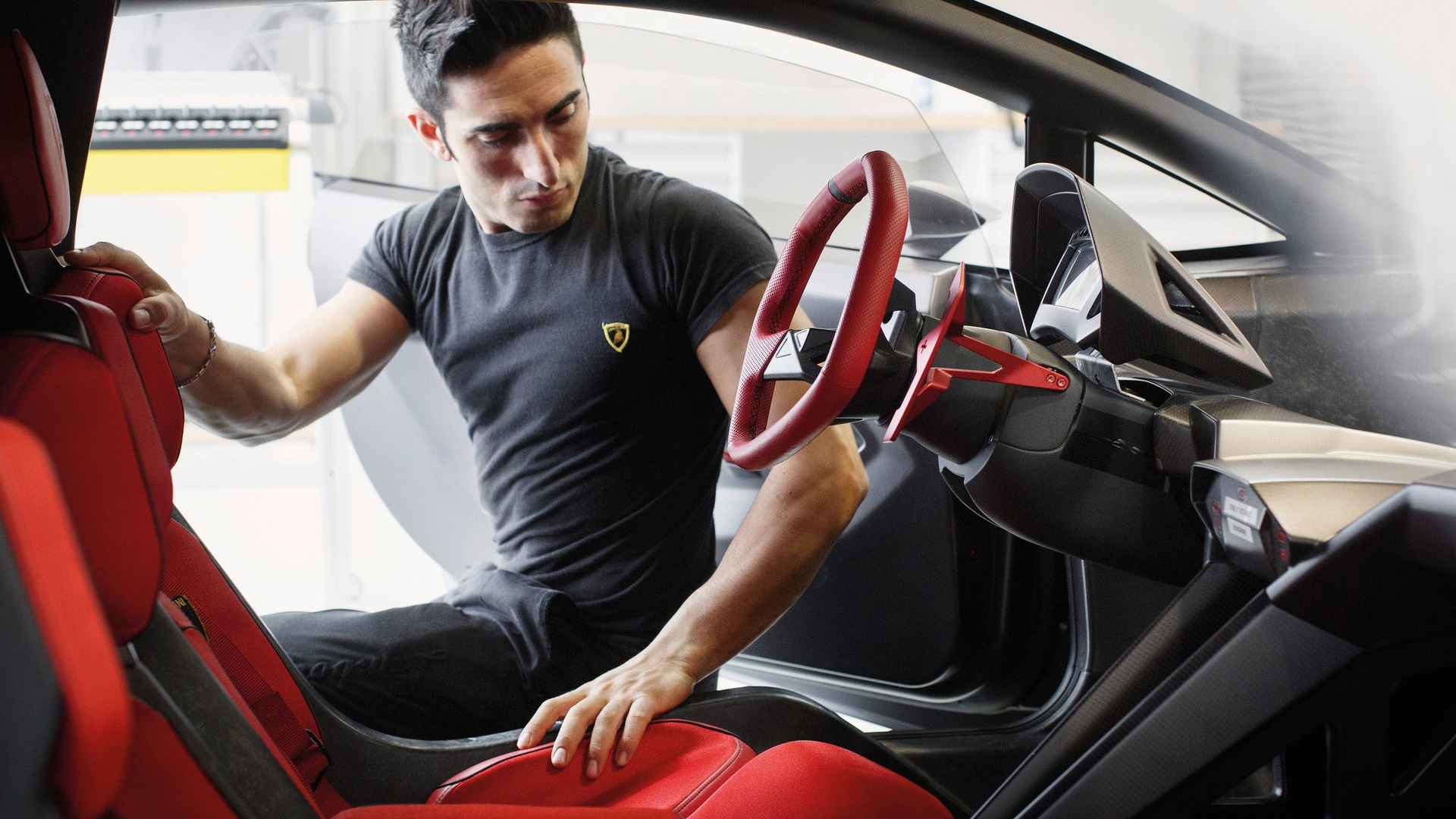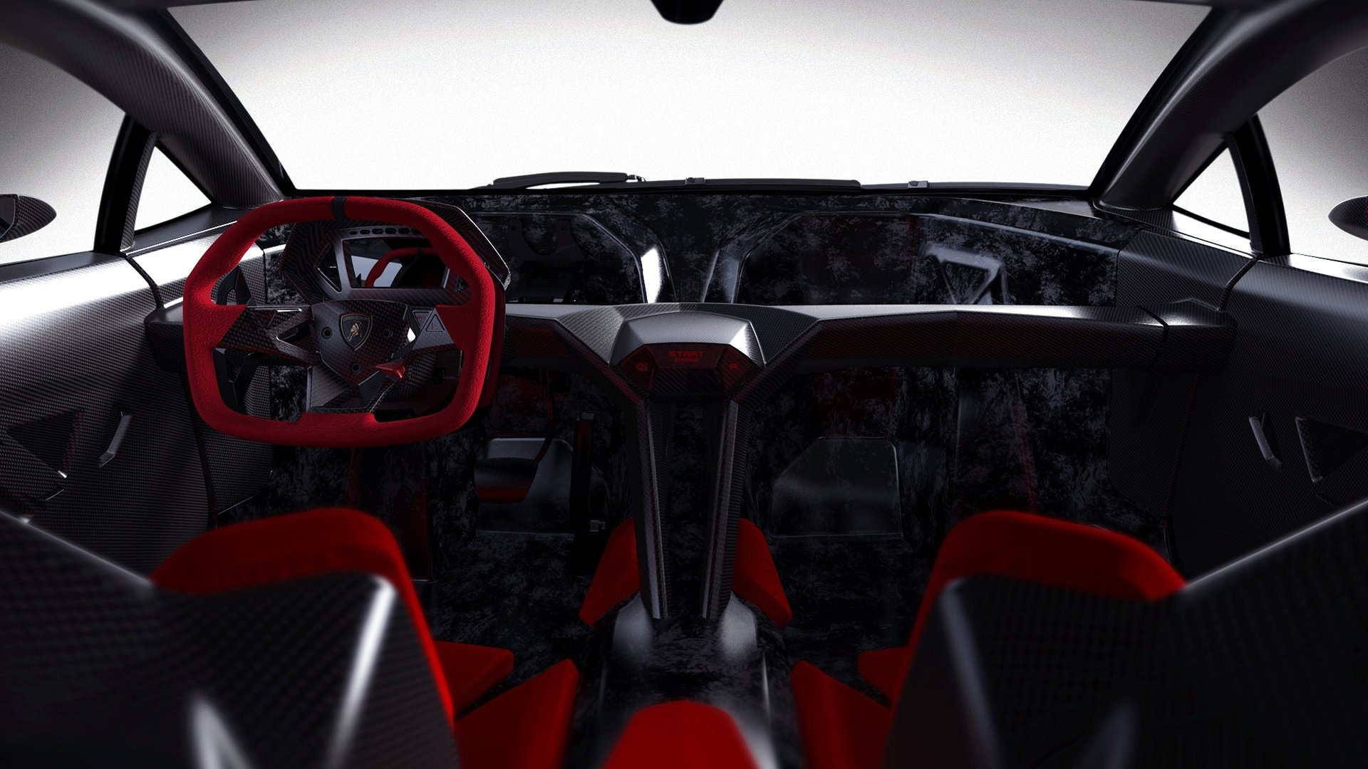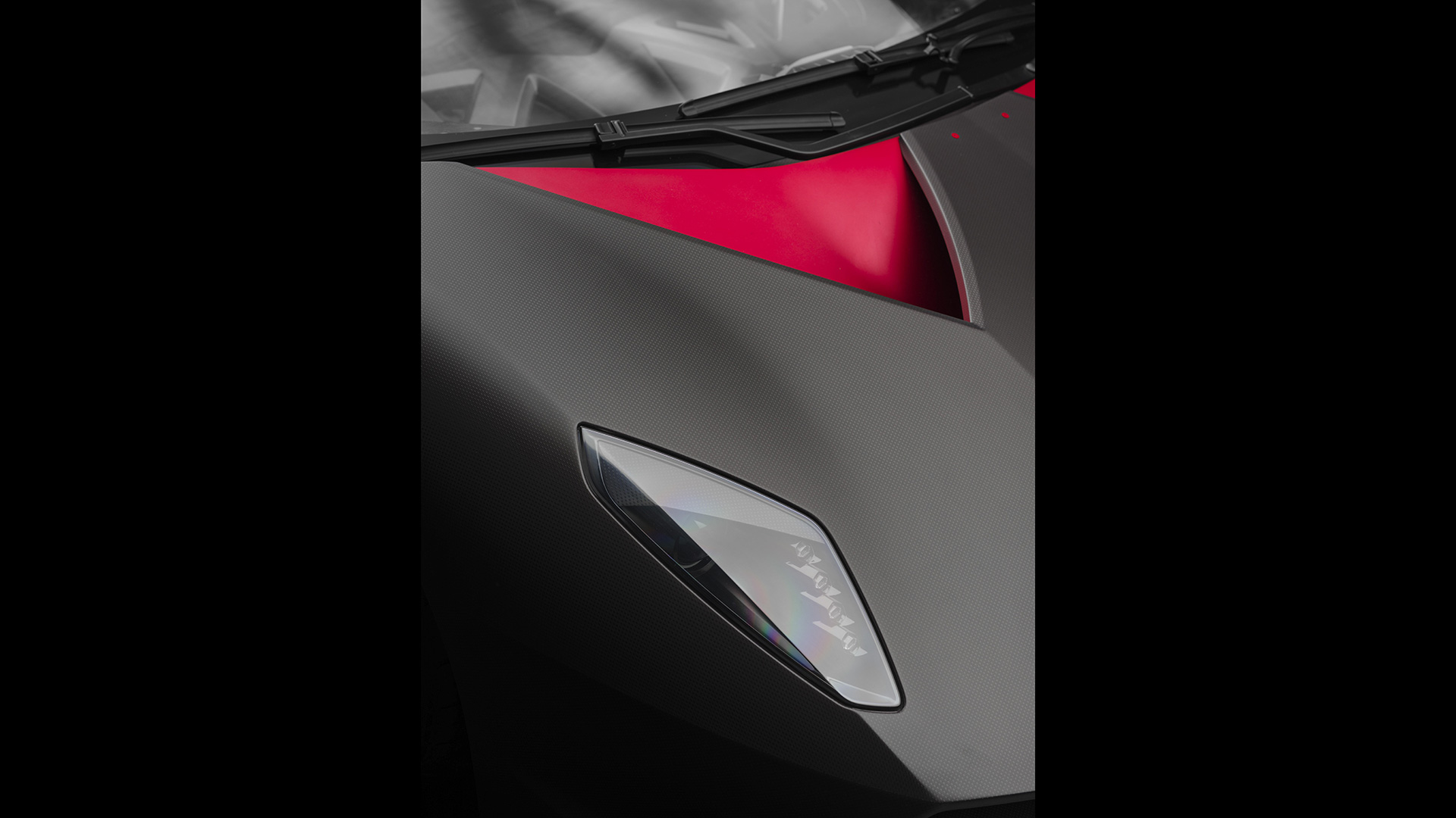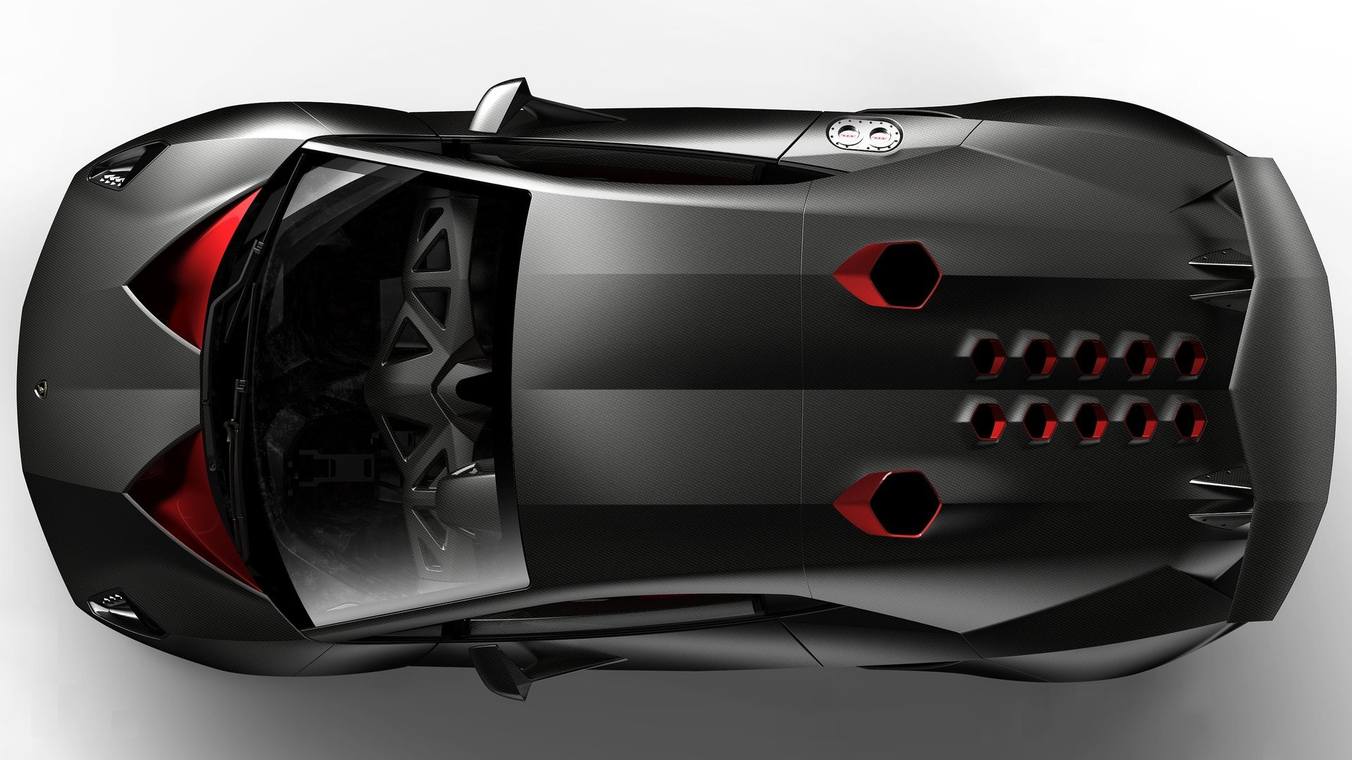 Ma andiamo per ordine. Come dicevamo, alla base della vettura troviamo una struttura di fibra di carbonio solida, rigida e leggera, in quanto la cellula dell’auto altro non è che una monoscocca: sezione anteriore, carrozzeria (non verniciata), assorbitori di impatto, le principali componenti delle sospensioni e i cerchi sono realizzati in fibra di carbonio (perfino gli inserti rossi che troviamo nella carrozzeria sono realizzati in una vernice trasparente opaca che sfrutta componenti ceramici nano tecnologici e che vede l’aggiunta di micro cristalli riflettenti fortemente in grado di resistere all’usura: giusto per farvi comprendere quanto l’attenzione al contenimento delle masse, su questa vettura, sia stato veramente maniacale, al punto che anche i gusci dei sedili sono parte integrante dell’auto e non componenti a sé). Anche l’albero di trasmissione è stato realizzato in fibra di carbonio (soluzione che ha permesso la rimozione del giunto centrale dell’albero, portando quindi ad una consistente riduzione di peso), mentre i terminali di scarico sono invece in Pyrosic: un materiale composito di vetro a matrice ceramica in grado di tollerare temperature molto elevate, fino a 900°. Il tutto a demarcare il profondo legame aeronautico di questa incredibile e pazzesca supercar. E a proteggere tutto il nobile materiale di cui questa folle (nonché rastrematissima, super-compatta e minimalistica) auto è composta troviamo un rivestimento lucido-opaco. E come anticipavamo poc’anzi, le strutture complesse sono state integrate in un’unica componente: ad esempio, sezione anteriore e posteriore della scocca sono state entrambe realizzate in un unico pezzo. Queste componenti di grandi dimensioni sono state fissate con delle viti allo scopo di consentirne il rapido disassemblaggio. E come dicevamo, l’approccio minimalista è stato applicato anche agli interni (a loro volta iper-essenziali e che mettono alla vista inserti rossi e rivestimenti in Alcantara sempre in tale cromia), a partire dai sedili, che rinunciano completamente ad una struttura convenzionale per far parte direttamente della monoscocca. La triangolazione di guida può quindi essere variata agendo sulla regolazione dal volante (che può essere aggiustato in altezza e in estensione) e della pedaliera, che può essere sistemata longitudinalmente grazie ad un dispositivo elettrico. Inoltre – sempre allo scopo di contenere le masse – si è rinunciato ad un rivestimento interno inteso nel senso classico, in quanto a dominare la scena rimane il CFRP lasciato libero alla vista, presente nel pavimento, nel tunnel centrale, sul tetto della monoscocca, sulle portiere e sulla plancia. Anche le centraline elettroniche sono state lasciate visibili e montate con una speciale estetica hi-tech. Il motivo triangolare è evidente anche negli interni e contribuisce a sua volta alla riduzione di peso. I dispositivi di controllo sono presenti con un format ridotto, mentre le leve del cambio hanno un design dedicato. La strumentazione fornisce informazioni sulla velocità, così come su tutti i parametri relativi al funzionamento del motore. Tre pulsanti piezoelettrici completano la consolle centrale: il pulsante start, quello per la retromarcia e quello per le luci.