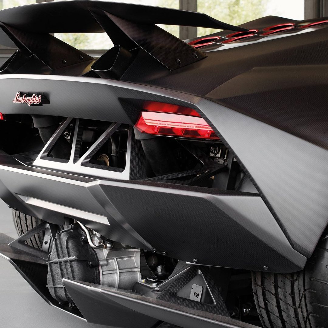 A dare vita alla Lamborghini Sesto Elemento è un’unità termica a 10 cilindri (con V a 90°) da 5.204 cc mutuata dalla Gallardo LP 570-4 Superleggera e collocata in posizione longitudinale posteriore e che sviluppa 570 CV di potenza a 8.000 giri/min e 540 Nm di coppia a 6.500 giri/min, nonché una potenza specifica di 109,6 CV/l. Sul fronte delle primizie tecniche, tale unità sfoggia la corsa lunga, il basamento in alluminio, un sistema di lubrificazione a carter secco, il collettore d’aspirazione a geometria variabile, la fasatura variabile degli alberi di distribuzione (dotati di comando a catena) e l’Iniezione Diretta Stratificata (che immette il carburante direttamente in camera di combustione). Tutto questo consente il raggiungimento del già menzionato rapporto peso/potenza di soli 1,75 kg per CV, e la capacità di ‘bruciare’ lo 0-100 km/h in soli 2,5 secondi, nonché il raggiungimento di una velocità massima ampiamente superiore ai 300 km/h. Al fianco di tale powertrain lavora un cambio e.gear automatico (e con cambio al volante) a sei marce con trazione integrale permanente e con giunto centrale viscoso autobloccante al 45%. Risultati che sono stati resi possibili grazie ad un lavoro di perfezionamento sopraffino operato sulla base di partenza prescelta adottata per sviluppare questa vettura, ovvero la Gallardo LP 570-4 Superleggera (che di suo fermava l’ago della bilancia su un peso a secco di 1.340 kg), che – grazie ad un incredibile lavoro di cesello compiuto dai tecnici di Sant’Agata Bolognese – è stata alleggerita di ben 70 kg grazie all’ampio ricorso alla fibra di carbonio per carrozzeria, interni e componenti tecniche.