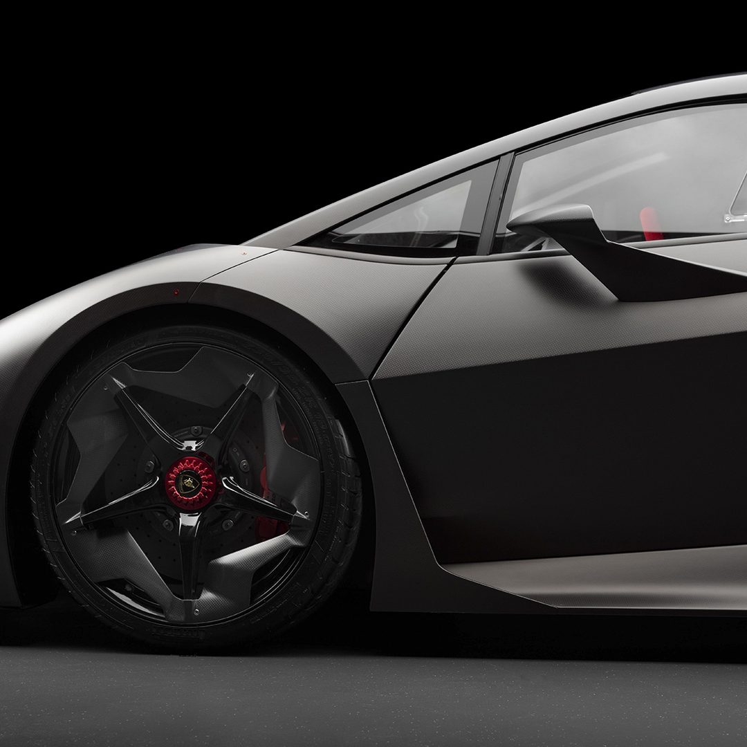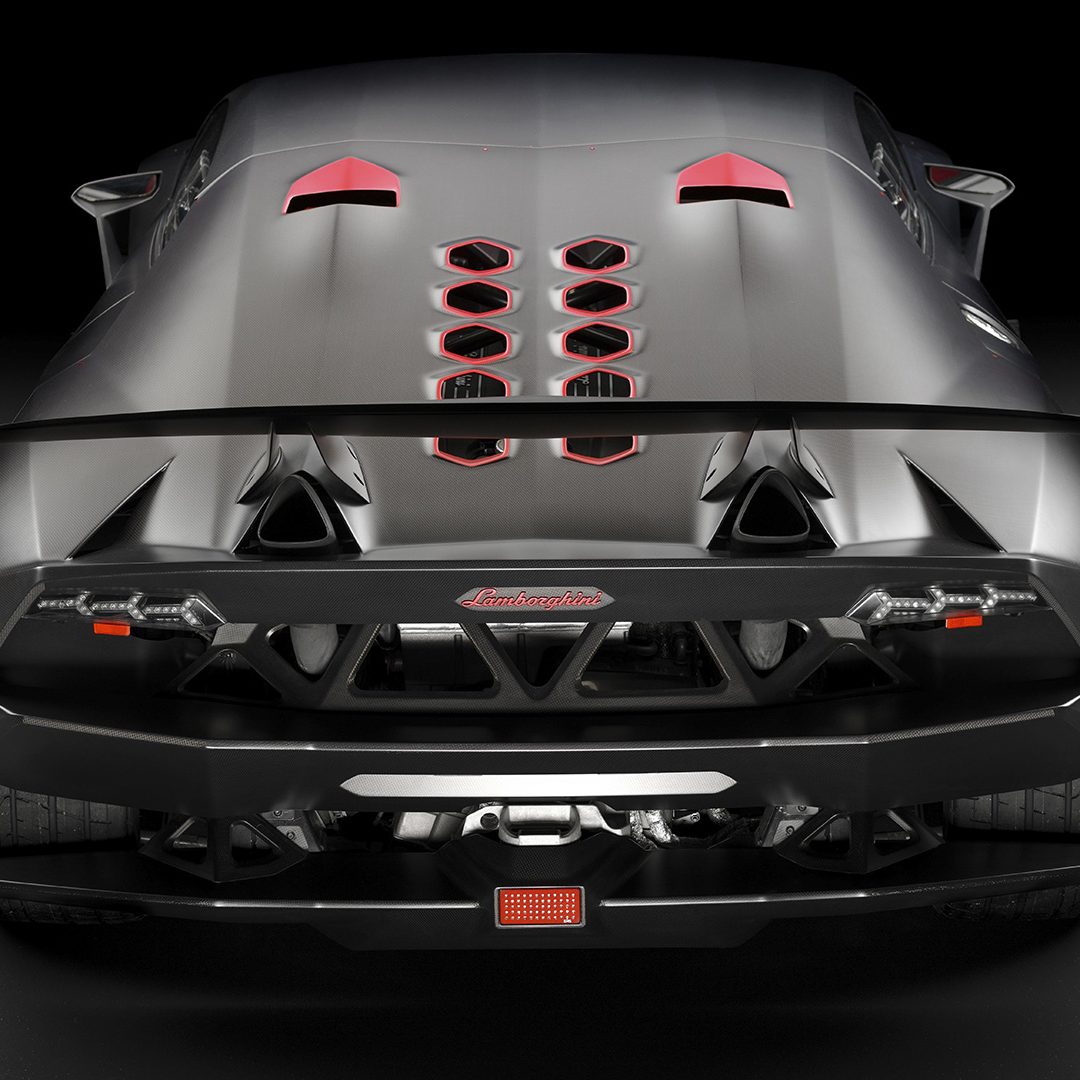 Ovviamente ad uno sviluppo tecnico così straordinario è corrisposta un’attenzione maniacale per stile e aerodinamica che sono andati di pari passo. Ad ogni forma è stata quindi corrisposta una precisa funzione. Ad esempio, le due nervature verticali poste lungo la sezione anteriore migliorano la rigidità della componente in carbonio e convogliano l’aria di raffreddamento direttamente al radiatore posto dietro di esse e ai freni. Questo allo scopo di restituire una corretta temperatura del sistema di raffreddamento anche nelle più severe condizioni di guida in pista. Il raffreddamento ad aria scorre attraverso due aperture rosse triangolari poste sul cofano, sotto il parabrezza e attraverso bocche di grandi dimensioni nei pannelli laterali posti alle spalle delle ruote anteriori. A completare la caratterizzazione tecnico-stilistica troviamo i gruppi ottici minimalistici con proiettori bi-xenon e con quattro LED per ogni unità. Il profilo laterale – come da tradizione Lamborghini – presenta una conformazione a cuneo affilato, con il baricentro della vettura posto dinnanzi all’asse posteriore. Una netta linea laterale parte dal passaruota anteriore, sale sulla portiera verso la parte posteriore e finisce poco al di sopra della ruota posteriore. Il triangolo – come quello intorno alla maniglia della porta – è un elemento di design ricorrente, definito da precisi contorni nella carrozzeria della Sesto Elemento. Dai vertici dei due triangoli delle uscite d’aria partono linee di design che corrono lungo il tetto. Gli ampi brancardi formano una connessione tra le uscite d’aria dietro le ruote anteriori e le grandi prese aria davanti alle ruote posteriori. Questi alloggiamenti ospitano componenti come i radiatori per il raffreddamento del motore e l’olio di trasmissione. I cerchi hanno un disegno a cinque razze e sono realizzati interamente in fibra di carbonio, permettendo di intravedere i freni con dischi carbo-ceramici ad alte prestazioni. Lo sbalzo posteriore è estremamente corto. Il grande spoiler si coniuga al diffusore, oltre che a un deflettore dell’aria al centro, allo scopo di restituire un elevato carico aerodinamico ad alte velocità (nonché elevata in curva) e promettendo anche stabilità direzionale a velocità elevate. I terminali di scarico in Pyrosic sono diretti verso l’alto (veicolando così il flusso d’aria calda verso dove si ha interesse ad averlo direzionato) e attraversano il cofano motore. Quest’ultimo mostra anche dieci aperture esagonali e due prese d’aria alle spalle del tetto allo scopo di consentire il raffreddamento del V10. Come già detto, la Lamborghini Sesto Elemento venne realizzata in sole 20 unità, tutte omologate per il solo impiego tra i cordoli. Ma se siete fortunati (curiosità per i car-spotter) – dato che si tratta di un avvistamento molto raro – vi potrà capitare anche di vederne qualcuna anche su strada (e quindi regolarmente omologata per la circolazione su essa), in quanto il preparatore britannico Lanzante ha realizzato almeno una versione road-legal grazie all’installazione di luci supplementari, indicatori di direzione, targhe e funzionalità di sicurezza. E se siete tra i fortunati ad averla osservata, in particolar modo su strada appunto, sappiate che avete assistito ad un evento più unico che raro. Come vedere un fulmine che colpisce a terra. Se invece vi state domandando quale sia il valore di quest’auto: all’istante del lancio venne commercializzata a circa 1.8 milioni di euro, ma al momento le quotazioni hanno superato i 2.5/3 milioni di euro. Giusto per comprendere appieno di cosa parliamo. E se giunti a questo punto volete avere il piacere di osservarla da vivo – a meno che non siate tra i 20 fortunati che ce l’hanno in garage (in quel caso avete tutta la nostra stima) – la vostra nuova meta di pellegrinaggio può essere solo Sant’Agata Bolognese, dove nel Museo Lamborghini potrete osservarne una in esposizione. State già programmando la vostra prossima meta per un viaggio a questo punto?