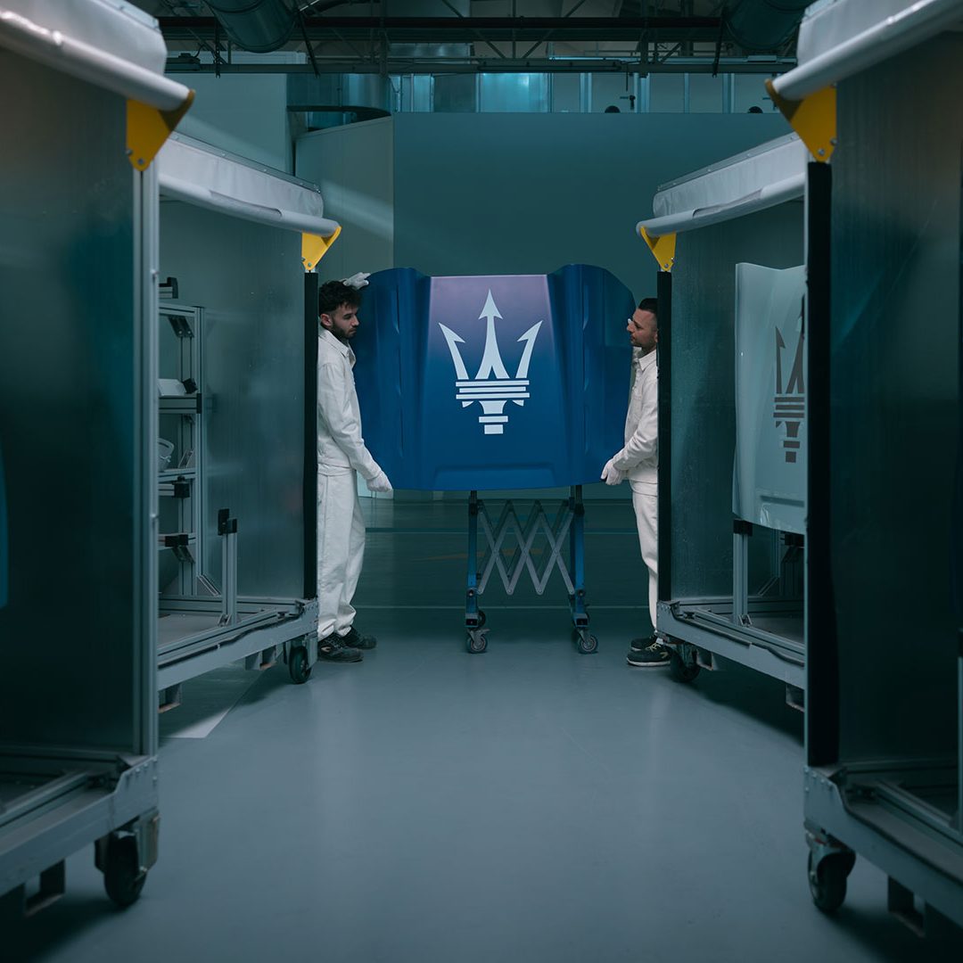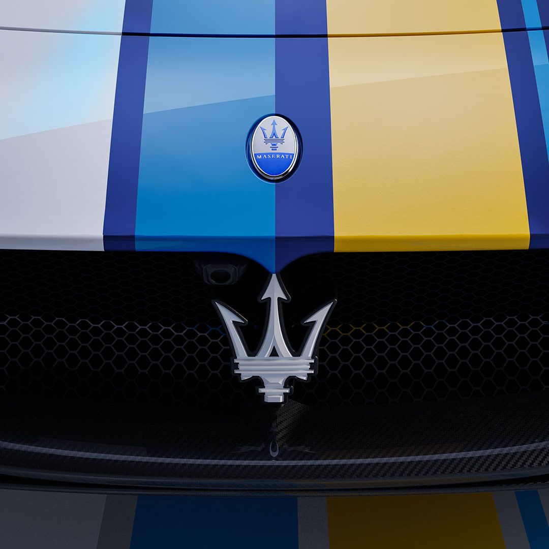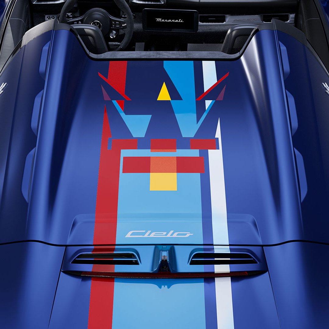 La successione dei colori, scelti partendo dai classici toni del Bauhaus e reinterpretandoli in chiave Maserati, è unica. Le forme geometriche vanno dal Rosso Capannelle Glossy, tonalità che identificava le prime vetture da corsa della Casa del Tridente, al Giallo Avia Pervia Glossy, a richiamare lo stemma di Modena, fino al Bianco Audace, tinta di lancio di Maserati MC20 nella sua finitura matte, qui proposto lucido attraverso una lavorazione manuale. Ulteriori dettagli sono in Azzurro Himmelblau e in Nero. L’Arancio Devil è stato creato per ricordare Maria Teresa De Filippis che fu la prima donna ad essersi qualificata ad un gran premio di Formula 1, facendolo a bordo di una Maserati 250F, e il Viola Salchi, derivato da una personalizzazione di una Ghibli SS Coupè.
