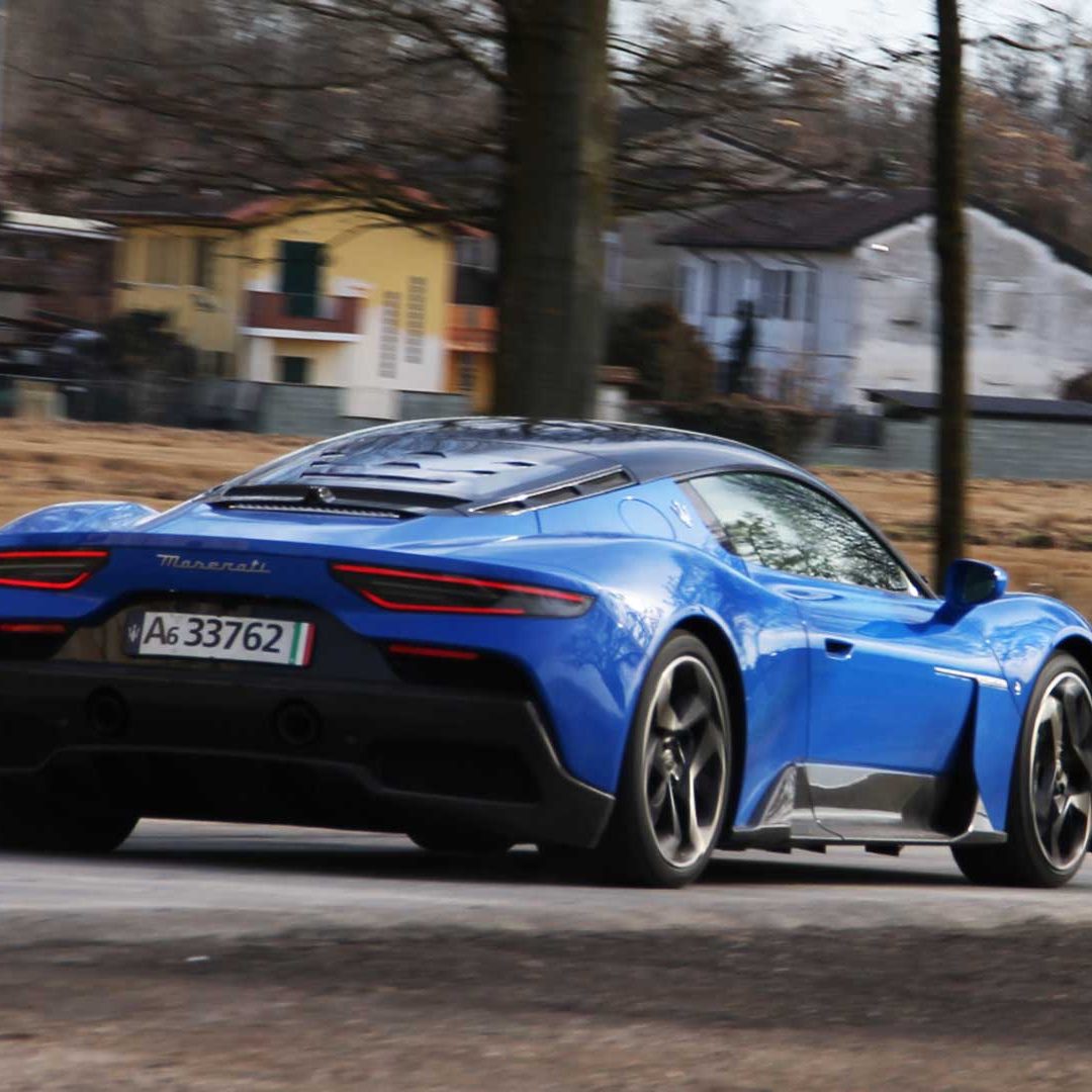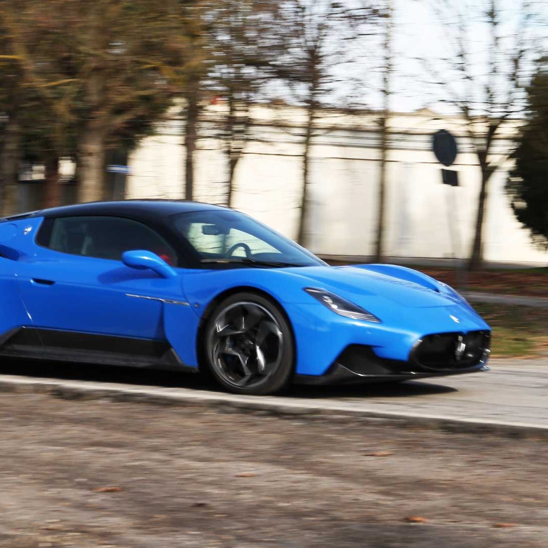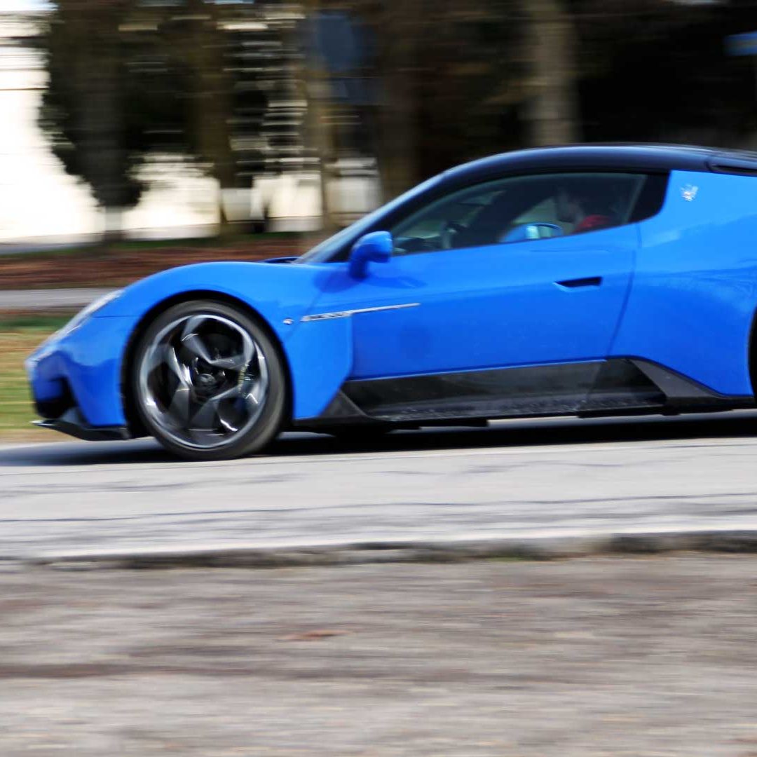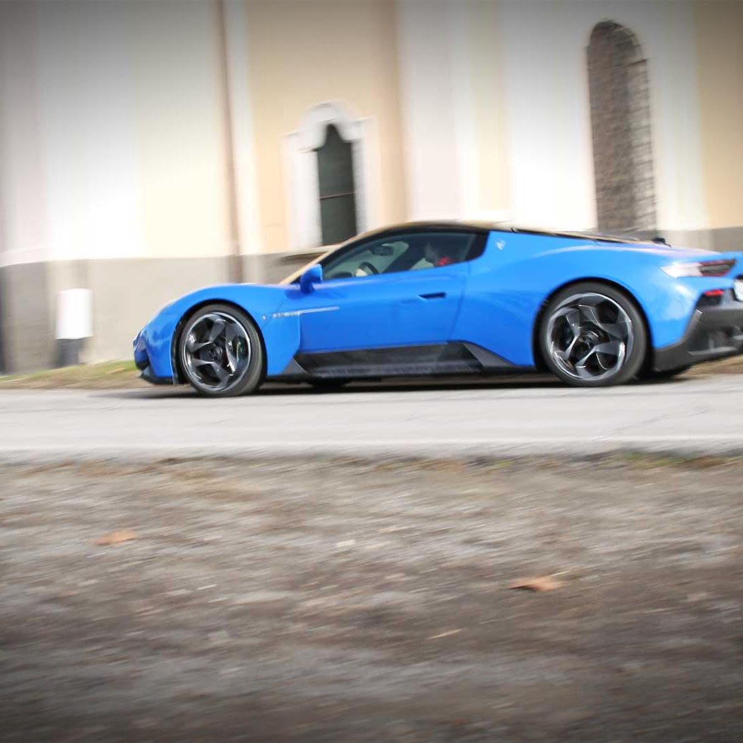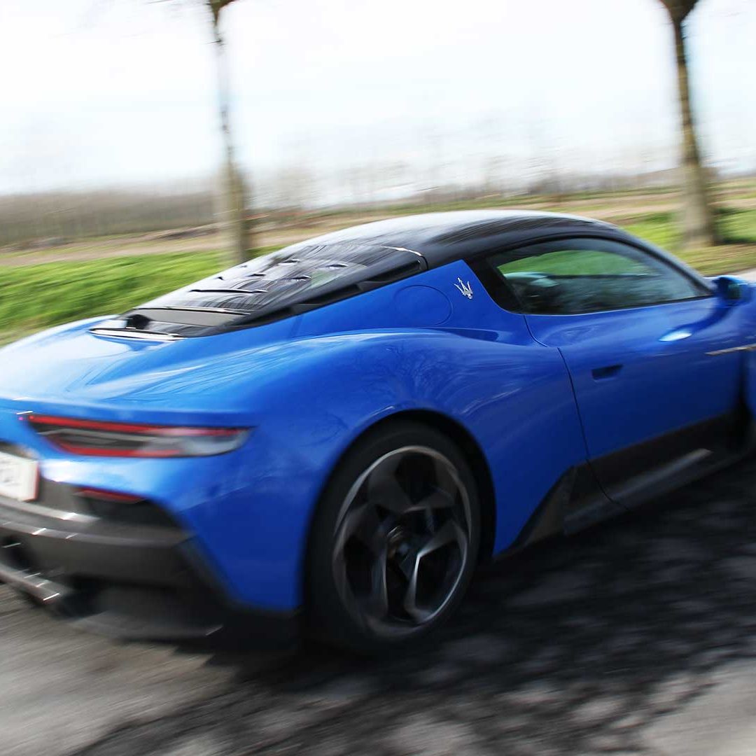 Le sedute (firmate Sabelt) sono comode, non affaticano e accolgono pilota e passeggero in una triangolazione praticamente perfetta, tanto per macinare km in scioltezza quanto per divertirsi a dare gas una volta al posto di guida. Gli oggetti di piccole dimensioni trovano tutto lo spazio necessario nei vani del tunnel centrale (c’è anche la ricarica wireless per lo smartphone) e dinnanzi al passeggero. Decisamente più risicato (al pari di un serbatoio che non brilla per capienza) – come a demarcare la vera vocazione di questa vettura – quello riservato agli oggetti di grandi dimensioni come possono essere borse o trolley: di questi ultimi ci si può tranquillamente dimenticare dell’esistenza. Nel piccolo vano alle spalle del motore c’è posto per un paio di zaini o due borsone e poco più. Alle spalle dei sedili possono essere riposti due zaini, le giacche e poco altro. Insomma: sì alle uscite per il weekend, ma a patto di portare con voi davvero lo stretto indispensabile. Ma d’altronde non è certo per la capacità di carico che questa vettura è concepita (anche se molte competitor lasciano comunque più spazio davanti anche per due trolley di piccole dimensioni). L’ambiente, come detto poc’anzi, è molto pulito: il tunnel centrale mette alla vista solo due pulsanti e il selettore dei 5 driving mode, che richiama nelle forme l’orologio analogico che è un marchio di fabbrica degli interni Maserati e qua scomparso dalla plancia per ovvie ragioni di sportività e di pulizia estetica. Molto belli i giochi di volumi e la conformazione delle varie superfici. Il volante integra tutti i comandi essenziali, nonché i pulsanti dello start e del launch control (quest’ultimo però, nel corso del nostro test, non ne ha voluto sapere di funzionare). Sospensioni a doppio braccio oscillante con ammortizzatori attivi e in alluminio forgiato e trasmissione Dual Clutch a bagno d’olio a 8 rapporti completano la dotazione di Maserati MC20, che mette alla vista anche bellissimi cerchi con disegno a tridente (che viene ripreso anche dal lunotto posteriore) da 20” (gommati di primo equipaggiamento con penumatici Bridgestone) e alle cui spalle si staglia un mastodontico impianto frenante carbo-ceramico Brembo (con pinza radiale monoblocco a 6 pistoni, con disco freno CCM in carbonio ceramico da 390x36mm davanti e pinza freno Brembo monoblocco a 4 pistoni con disco freno CCM in carbonio ceramico da 360x28mm dietro) che regala il meglio delle sue performance una volta portato in temperatura. Opzionale il sistema di sollevamento anteriore della vettura.