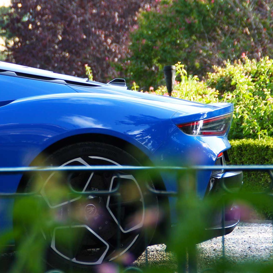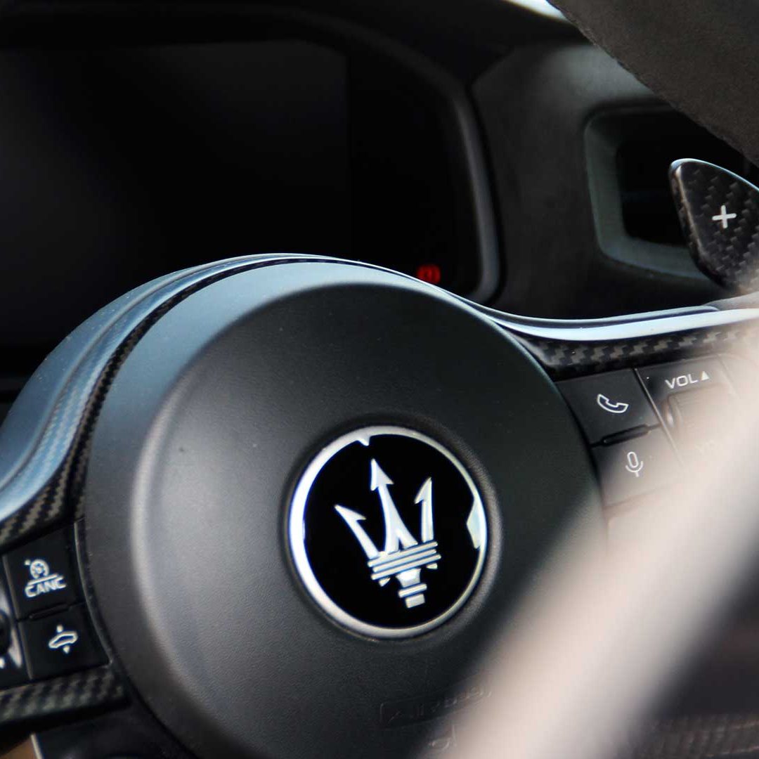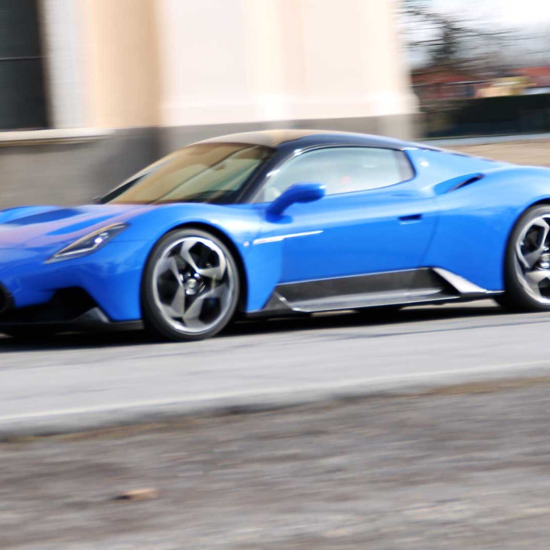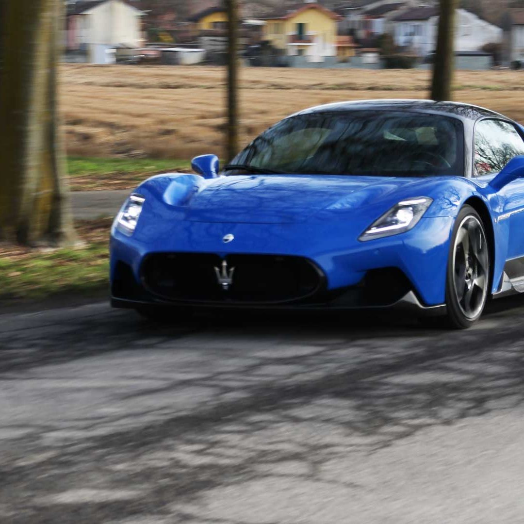 Le sedute (firmate Sabelt) sono comode, non affaticano e accolgono pilota e passeggero in una triangolazione praticamente perfetta, tanto per macinare km in scioltezza quanto per divertirsi a dare gas una volta al posto di guida. Gli oggetti di piccole dimensioni trovano tutto lo spazio necessario nei vani del tunnel centrale (c’è anche la ricarica wireless per lo smartphone) e dinnanzi al passeggero. Decisamente più risicato (al pari di un serbatoio che non brilla per capienza) – come a demarcare la vera vocazione di questa vettura – quello riservato agli oggetti di grandi dimensioni come possono essere borse o trolley: di questi ultimi ci si può tranquillamente dimenticare dell’esistenza. Nel piccolo vano alle spalle del motore c’è posto per un paio di zaini o due borsone e poco più. Alle spalle dei sedili possono essere riposti due zaini, le giacche e poco altro. Insomma: sì alle uscite per il weekend, ma a patto di portare con voi davvero lo stretto indispensabile. Ma d’altronde non è certo per la capacità di carico che questa vettura è concepita (anche se molte competitor lasciano comunque più spazio davanti anche per due trolley di piccole dimensioni). L’ambiente, come detto poc’anzi, è molto pulito: il tunnel centrale mette alla vista solo due pulsanti e il selettore dei 5 driving mode, che richiama nelle forme l’orologio analogico che è un marchio di fabbrica degli interni Maserati e qua scomparso dalla plancia per ovvie ragioni di sportività e di pulizia estetica. Molto belli i giochi di volumi e la conformazione delle varie superfici. Il volante integra tutti i comandi essenziali, nonché i pulsanti dello start e del launch control (quest’ultimo però, nel corso del nostro test, non ne ha voluto sapere di funzionare). Sospensioni a doppio braccio oscillante con ammortizzatori attivi e in alluminio forgiato e trasmissione Dual Clutch a bagno d’olio a 8 rapporti completano la dotazione di Maserati MC20, che mette alla vista anche bellissimi cerchi con disegno a tridente (che viene ripreso anche dal lunotto posteriore) da 20” (gommati di primo equipaggiamento con penumatici Bridgestone) e alle cui spalle si staglia un mastodontico impianto frenante carbo-ceramico Brembo (con pinza radiale monoblocco a 6 pistoni, con disco freno CCM in carbonio ceramico da 390x36mm davanti e pinza freno Brembo monoblocco a 4 pistoni con disco freno CCM in carbonio ceramico da 360x28mm dietro) che regala il meglio delle sue performance una volta portato in temperatura. Opzionale il sistema di sollevamento anteriore della vettura.