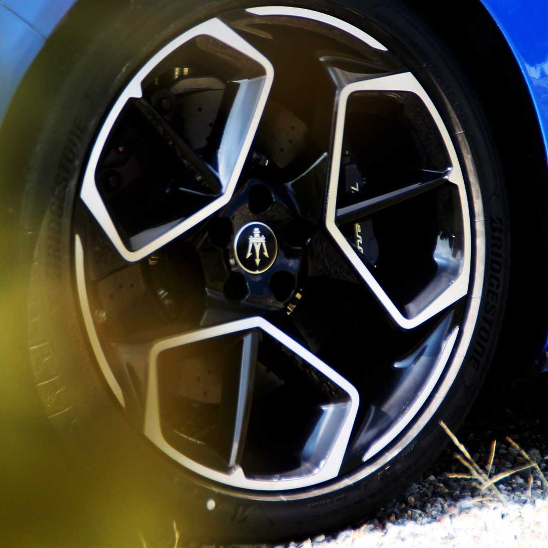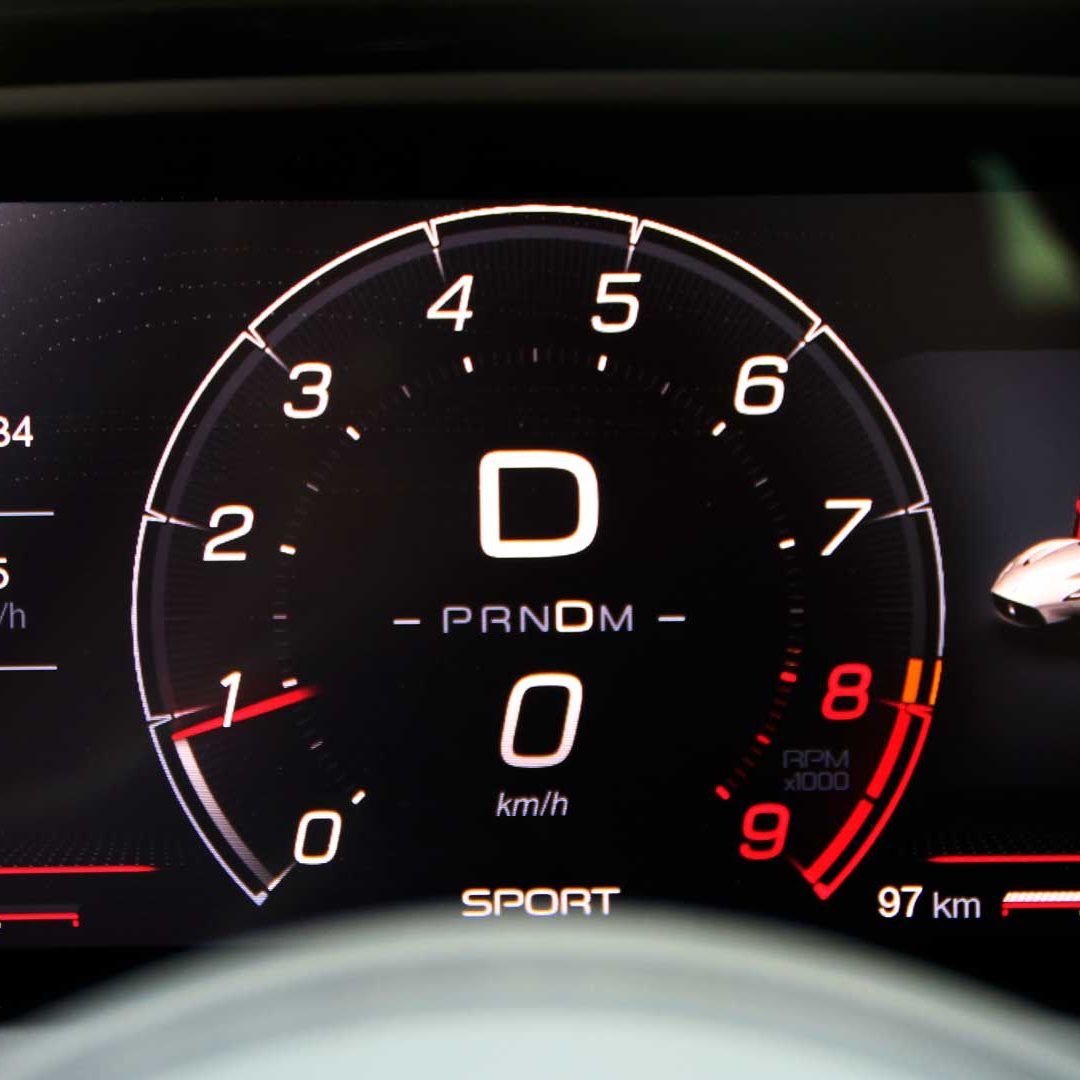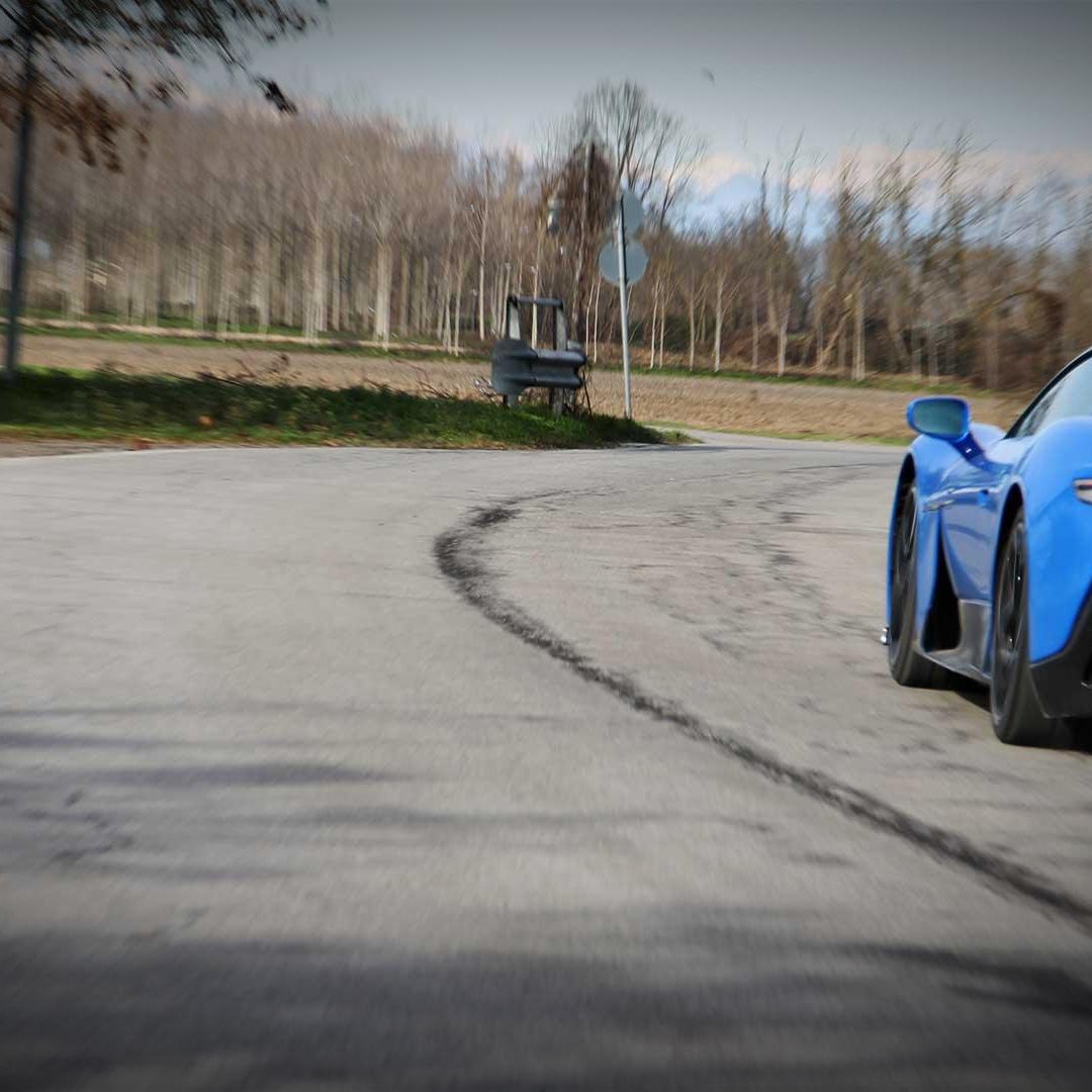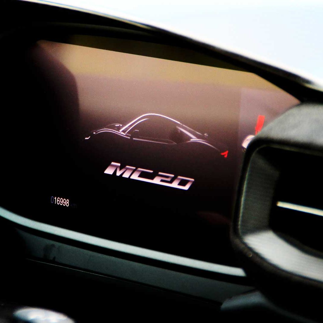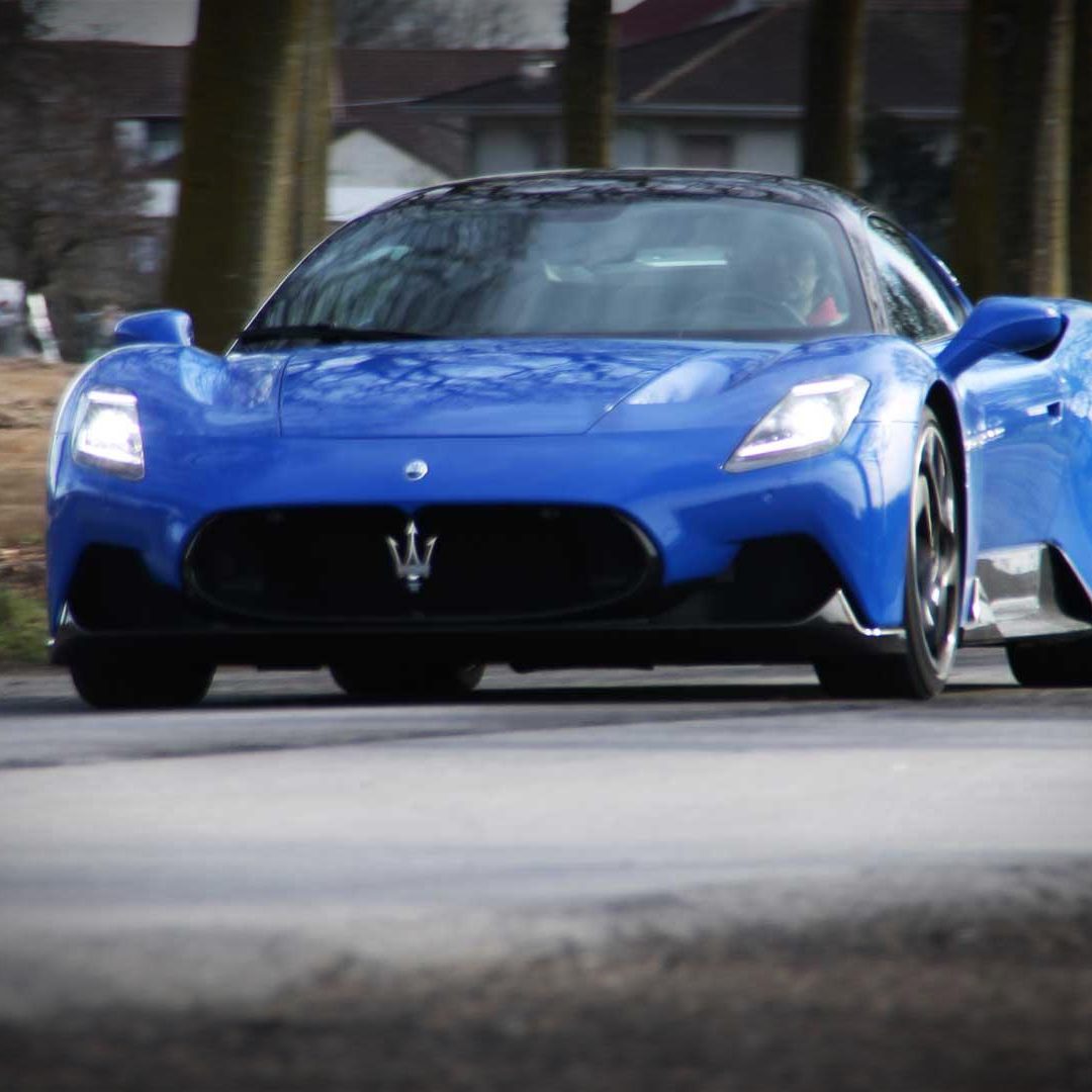 Le sedute (firmate Sabelt) sono comode, non affaticano e accolgono pilota e passeggero in una triangolazione praticamente perfetta, tanto per macinare km in scioltezza quanto per divertirsi a dare gas una volta al posto di guida. Gli oggetti di piccole dimensioni trovano tutto lo spazio necessario nei vani del tunnel centrale (c’è anche la ricarica wireless per lo smartphone) e dinnanzi al passeggero. Decisamente più risicato (al pari di un serbatoio che non brilla per capienza) – come a demarcare la vera vocazione di questa vettura – quello riservato agli oggetti di grandi dimensioni come possono essere borse o trolley: di questi ultimi ci si può tranquillamente dimenticare dell’esistenza. Nel piccolo vano alle spalle del motore c’è posto per un paio di zaini o due borsone e poco più. Alle spalle dei sedili possono essere riposti due zaini, le giacche e poco altro. Insomma: sì alle uscite per il weekend, ma a patto di portare con voi davvero lo stretto indispensabile. Ma d’altronde non è certo per la capacità di carico che questa vettura è concepita (anche se molte competitor lasciano comunque più spazio davanti anche per due trolley di piccole dimensioni). L’ambiente, come detto poc’anzi, è molto pulito: il tunnel centrale mette alla vista solo due pulsanti e il selettore dei 5 driving mode, che richiama nelle forme l’orologio analogico che è un marchio di fabbrica degli interni Maserati e qua scomparso dalla plancia per ovvie ragioni di sportività e di pulizia estetica. Molto belli i giochi di volumi e la conformazione delle varie superfici. Il volante integra tutti i comandi essenziali, nonché i pulsanti dello start e del launch control (quest’ultimo però, nel corso del nostro test, non ne ha voluto sapere di funzionare). Sospensioni a doppio braccio oscillante con ammortizzatori attivi e in alluminio forgiato e trasmissione Dual Clutch a bagno d’olio a 8 rapporti completano la dotazione di Maserati MC20, che mette alla vista anche bellissimi cerchi con disegno a tridente (che viene ripreso anche dal lunotto posteriore) da 20” (gommati di primo equipaggiamento con penumatici Bridgestone) e alle cui spalle si staglia un mastodontico impianto frenante carbo-ceramico Brembo (con pinza radiale monoblocco a 6 pistoni, con disco freno CCM in carbonio ceramico da 390x36mm davanti e pinza freno Brembo monoblocco a 4 pistoni con disco freno CCM in carbonio ceramico da 360x28mm dietro) che regala il meglio delle sue performance una volta portato in temperatura. Opzionale il sistema di sollevamento anteriore della vettura.
