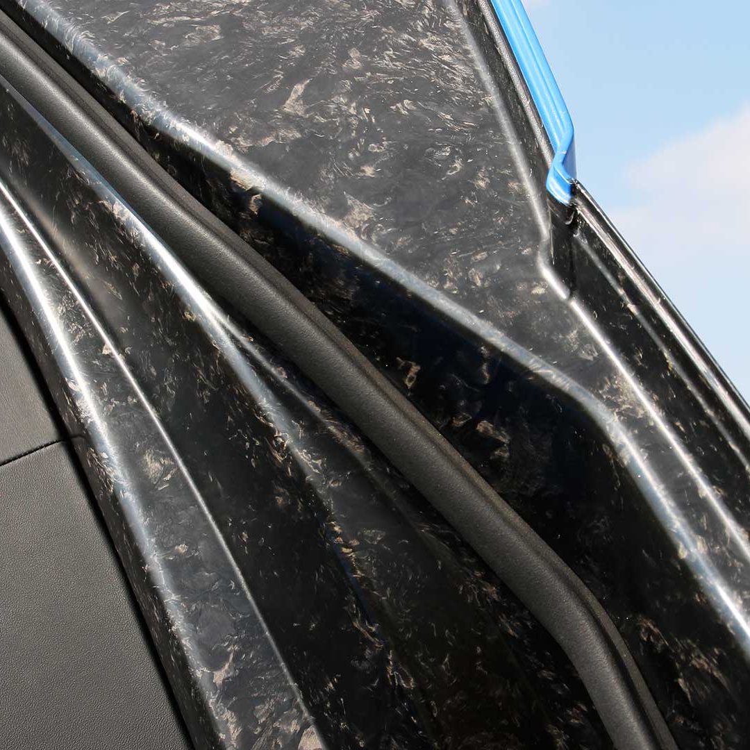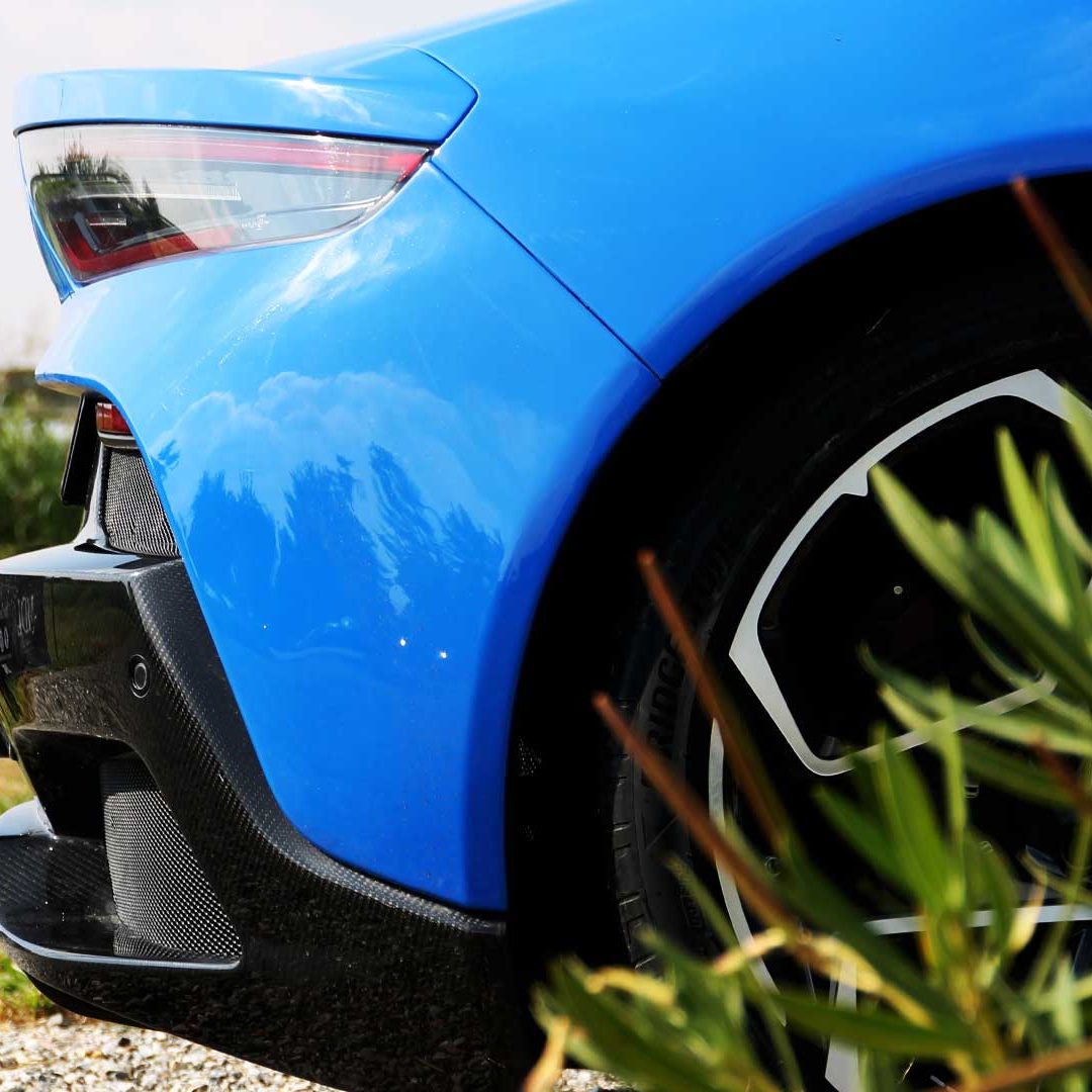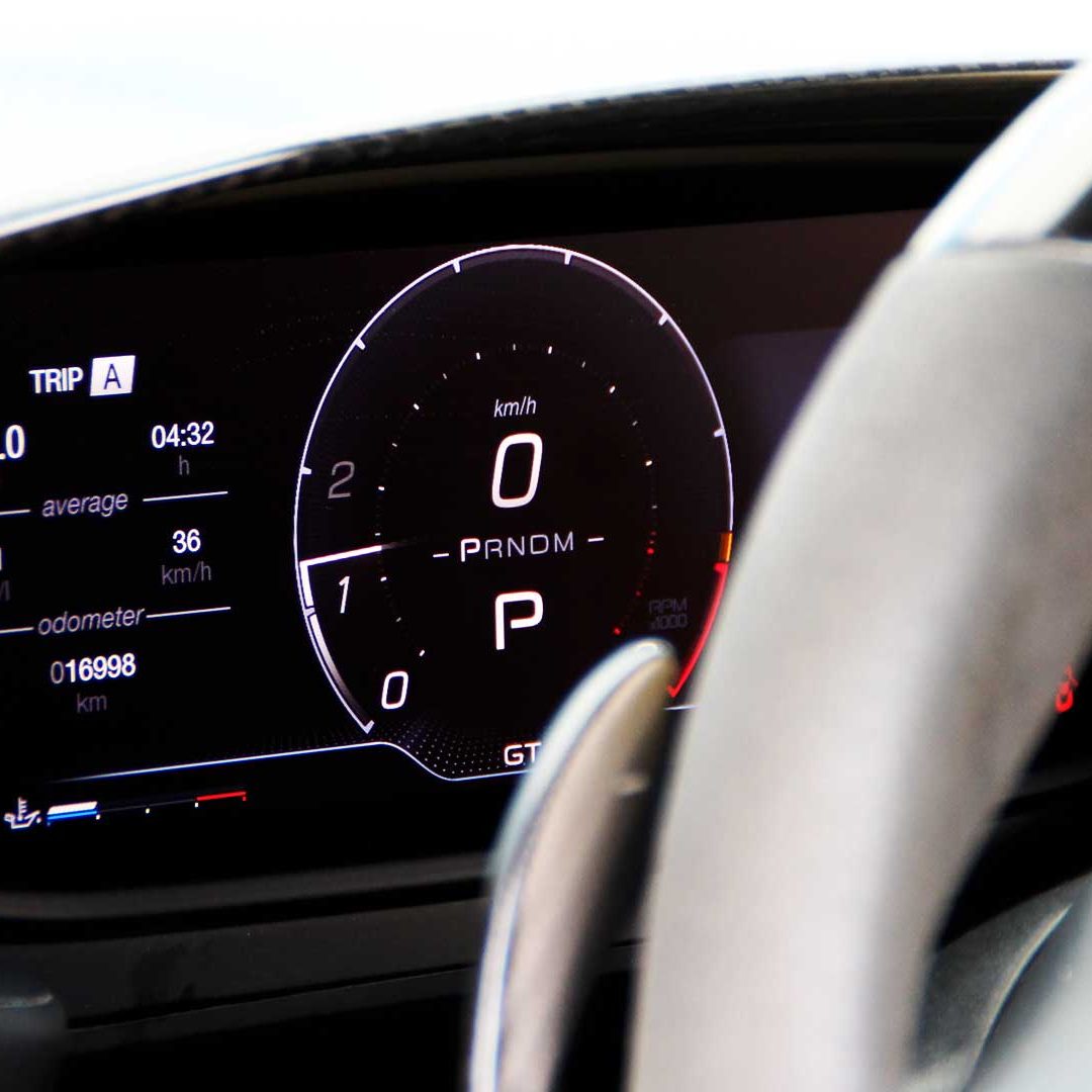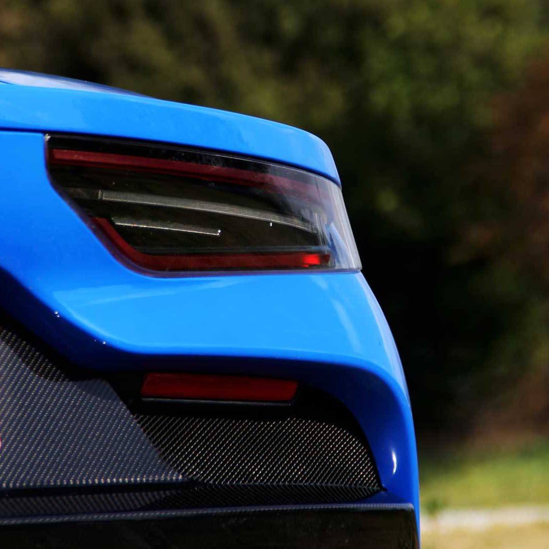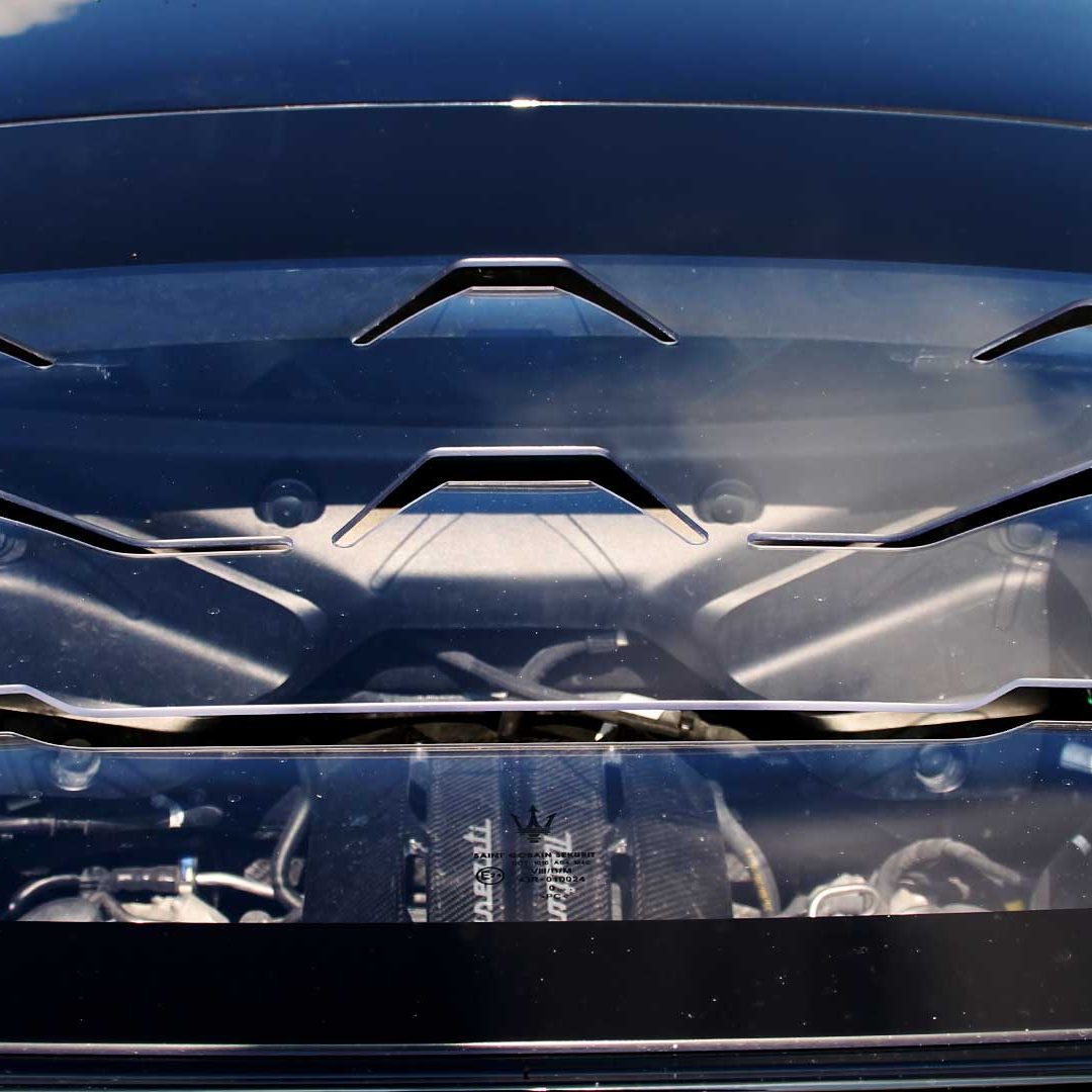 Le sedute (firmate Sabelt) sono comode, non affaticano e accolgono pilota e passeggero in una triangolazione praticamente perfetta, tanto per macinare km in scioltezza quanto per divertirsi a dare gas una volta al posto di guida. Gli oggetti di piccole dimensioni trovano tutto lo spazio necessario nei vani del tunnel centrale (c’è anche la ricarica wireless per lo smartphone) e dinnanzi al passeggero. Decisamente più risicato (al pari di un serbatoio che non brilla per capienza) – come a demarcare la vera vocazione di questa vettura – quello riservato agli oggetti di grandi dimensioni come possono essere borse o trolley: di questi ultimi ci si può tranquillamente dimenticare dell’esistenza. Nel piccolo vano alle spalle del motore c’è posto per un paio di zaini o due borsone e poco più. Alle spalle dei sedili possono essere riposti due zaini, le giacche e poco altro. Insomma: sì alle uscite per il weekend, ma a patto di portare con voi davvero lo stretto indispensabile. Ma d’altronde non è certo per la capacità di carico che questa vettura è concepita (anche se molte competitor lasciano comunque più spazio davanti anche per due trolley di piccole dimensioni). L’ambiente, come detto poc’anzi, è molto pulito: il tunnel centrale mette alla vista solo due pulsanti e il selettore dei 5 driving mode, che richiama nelle forme l’orologio analogico che è un marchio di fabbrica degli interni Maserati e qua scomparso dalla plancia per ovvie ragioni di sportività e di pulizia estetica. Molto belli i giochi di volumi e la conformazione delle varie superfici. Il volante integra tutti i comandi essenziali, nonché i pulsanti dello start e del launch control (quest’ultimo però, nel corso del nostro test, non ne ha voluto sapere di funzionare). Sospensioni a doppio braccio oscillante con ammortizzatori attivi e in alluminio forgiato e trasmissione Dual Clutch a bagno d’olio a 8 rapporti completano la dotazione di Maserati MC20, che mette alla vista anche bellissimi cerchi con disegno a tridente (che viene ripreso anche dal lunotto posteriore) da 20” (gommati di primo equipaggiamento con penumatici Bridgestone) e alle cui spalle si staglia un mastodontico impianto frenante carbo-ceramico Brembo (con pinza radiale monoblocco a 6 pistoni, con disco freno CCM in carbonio ceramico da 390x36mm davanti e pinza freno Brembo monoblocco a 4 pistoni con disco freno CCM in carbonio ceramico da 360x28mm dietro) che regala il meglio delle sue performance una volta portato in temperatura. Opzionale il sistema di sollevamento anteriore della vettura.