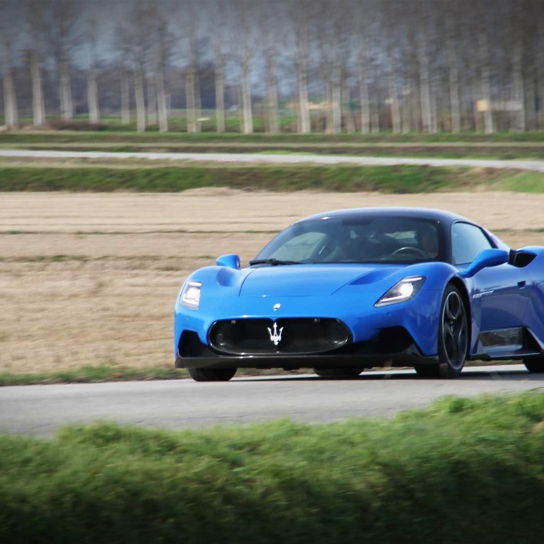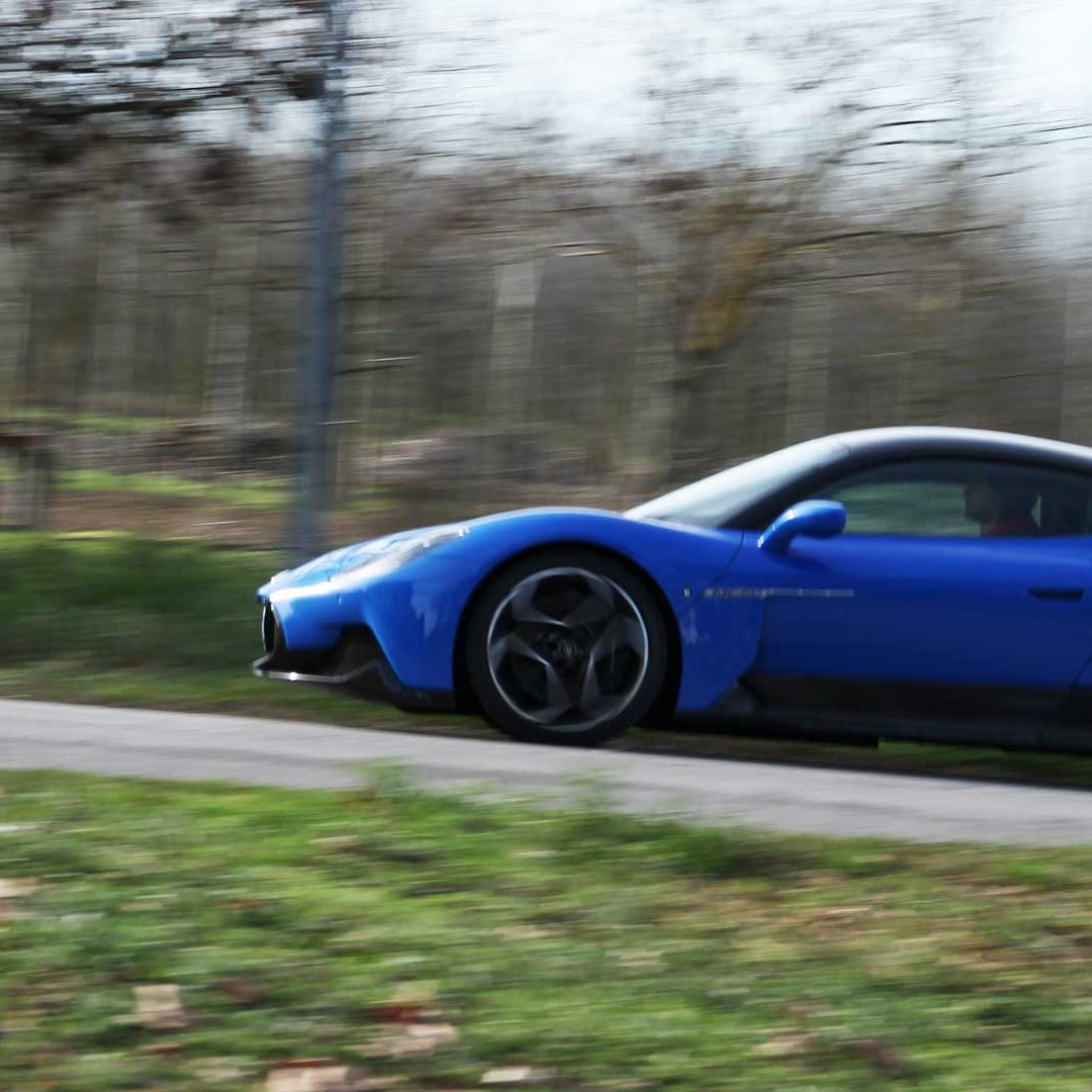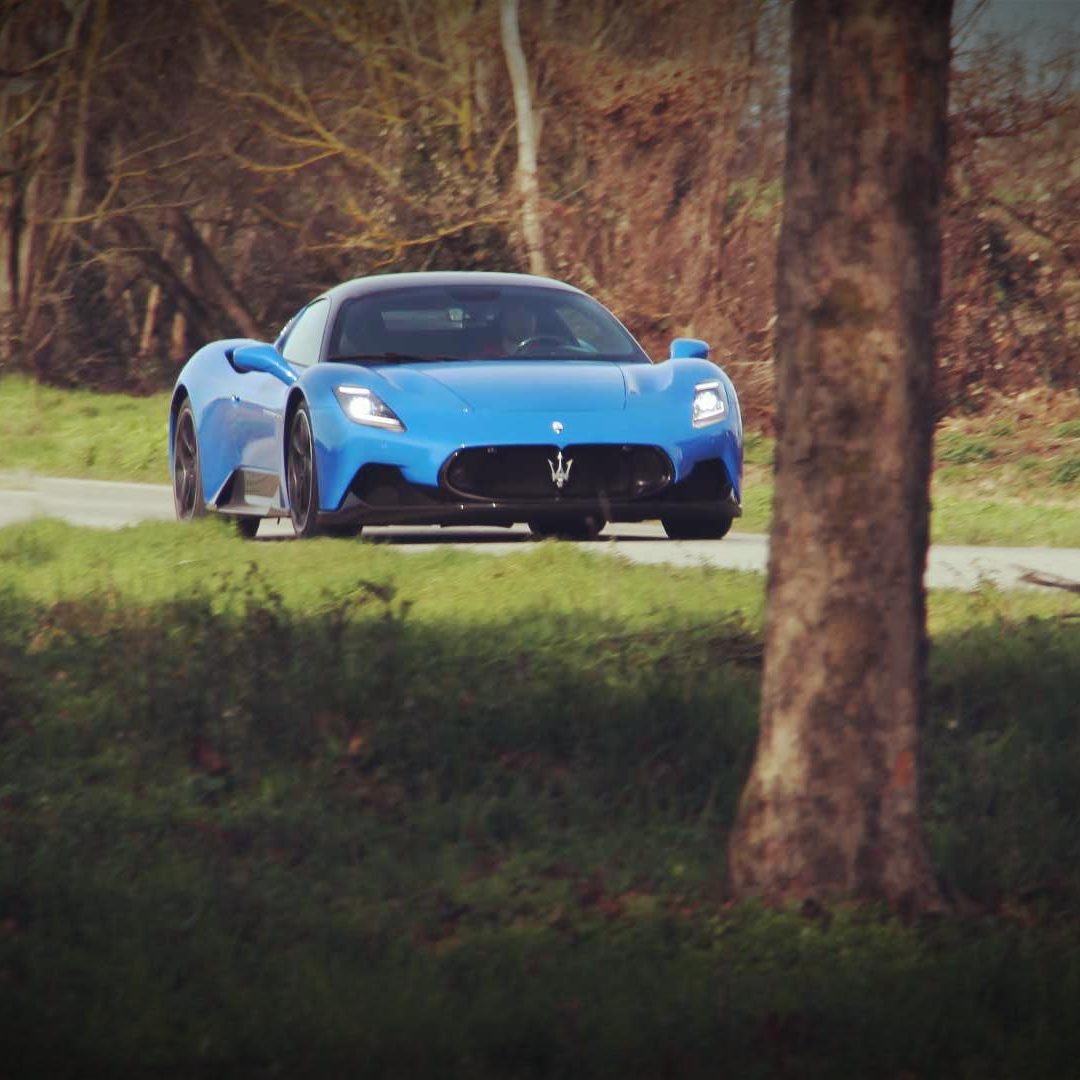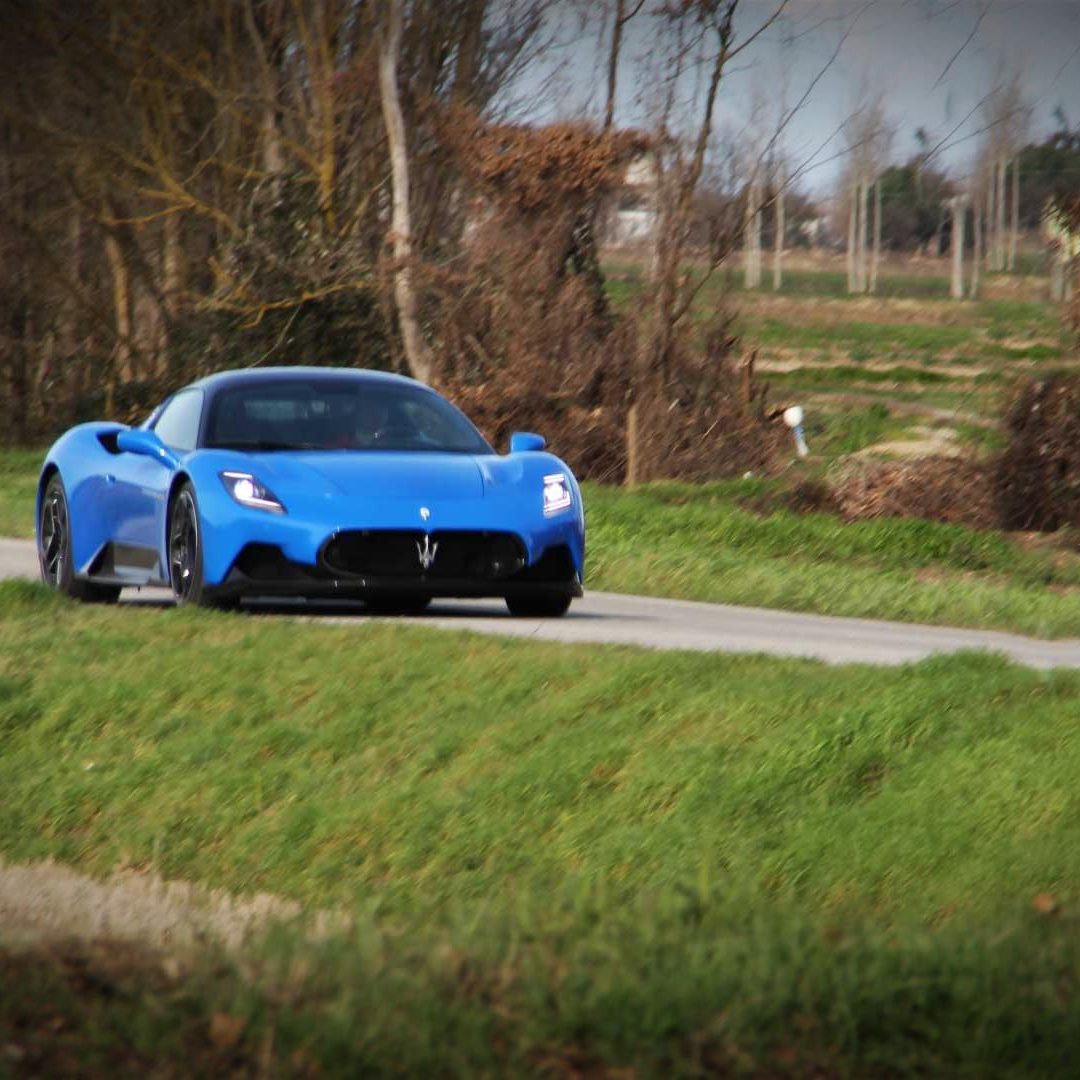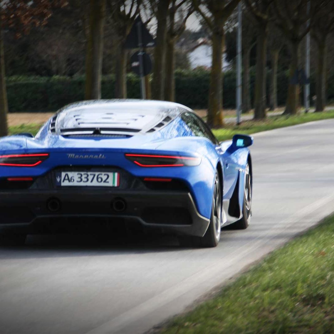 Ma è dalla modalità CORSA che accade il finimondo: il quadro strumenti diviene più essenziale nella sua infografica, le valvole di scarico sono sempre aperte e il motore incredibilmente pronto. L’elettronica che rimaneva attiva in SPORT, inizia ad abbassare notevolmente le sue soglie di intervento, lasciando così al pilota nettamente più spazio di protagonismo sulla gestione dinamica della vettura. I traversi e i controsterzi sono assicurati ad ogni uscita di curva, così come lo è lo stato di estasi dietro a quel volante che si inizia a cercare di tenere un po’ come un toro per le corna. Il V6 Nettuno allunga qui con una brutalità inaudita, regalando sensazioni viscerali, profonde, mozzafiato e una guida che non si dimenticherà facilmente. Gli inserimenti in curva sono inesorabilmente precisi, così come lo è anche la percorrenza. MC20 adesso è una vera arma da pista (che va saputa gestire e domare e che si rivolge agli impavidi di cuore) che consente di esaltare in maniera esponenziale il piacere al volante nei tratti guidati, in particolar modo lungo quelli veloci e contropendenti. Sensazioni che vengono elevate all’ennesima potenza in modalità ESC-OFF. Qua i controlli sono infatti completamente disabilitati, lasciando al pilota l’arduo compito di gestire i 630 CV di potenza e i 730 Nm di coppia del propulsore italiano. Una menzione speciale la merita la modalità WET: davvero calibrata in maniera incredibile. I controlli sono qua tutti attivi e le valvole di scarico si aprono solo dopo i 5.000 giri, ma la cosa sorprendente è la confidenza che la vettura è in grado di trasmettere al driver anche in caso di pioggia scrosciante (come è capitato a noi nel corso del rientro da Monte-Carlo); sembra quasi di guidare una trazione anteriore, se non addirittura integrale per l’incredibile feeling che è in grado di restituire. Un plauso vero agli sviluppatori Maserati per questo miracolo ingegneristico. Un telaio estremamente preciso, che lavora in sinergia con delle sospensioni molto sincere – che copiano bene le imperfezioni se lasciate nel setting più morbido, o che restituiscono grande precisione se impostate sulla taratura più sportiva – nonché con un’aerodinamica raffinatamente elegante che non mostra eccessivi orpelli estetici per preservare lo stile elegante della vettura, con uno sterzo molto diretto e piacevole da impugnare e che mette a portata di mano tutti i comandi essenziali (con alle sue spalle dei paddles di grandi dimensioni in CFRP che vanno a lavorare su un cambio dual clutch a bagno d’olio a otto velocità incredibilmente rapido e preciso) chiudono il cerchio della guida di Maserati MC20, che è a nostro avviso una delle poche supercar moderne in grado di restituire sensazioni di guida sopite da anni e appannaggio principalmente di vetture d’altri tempi.