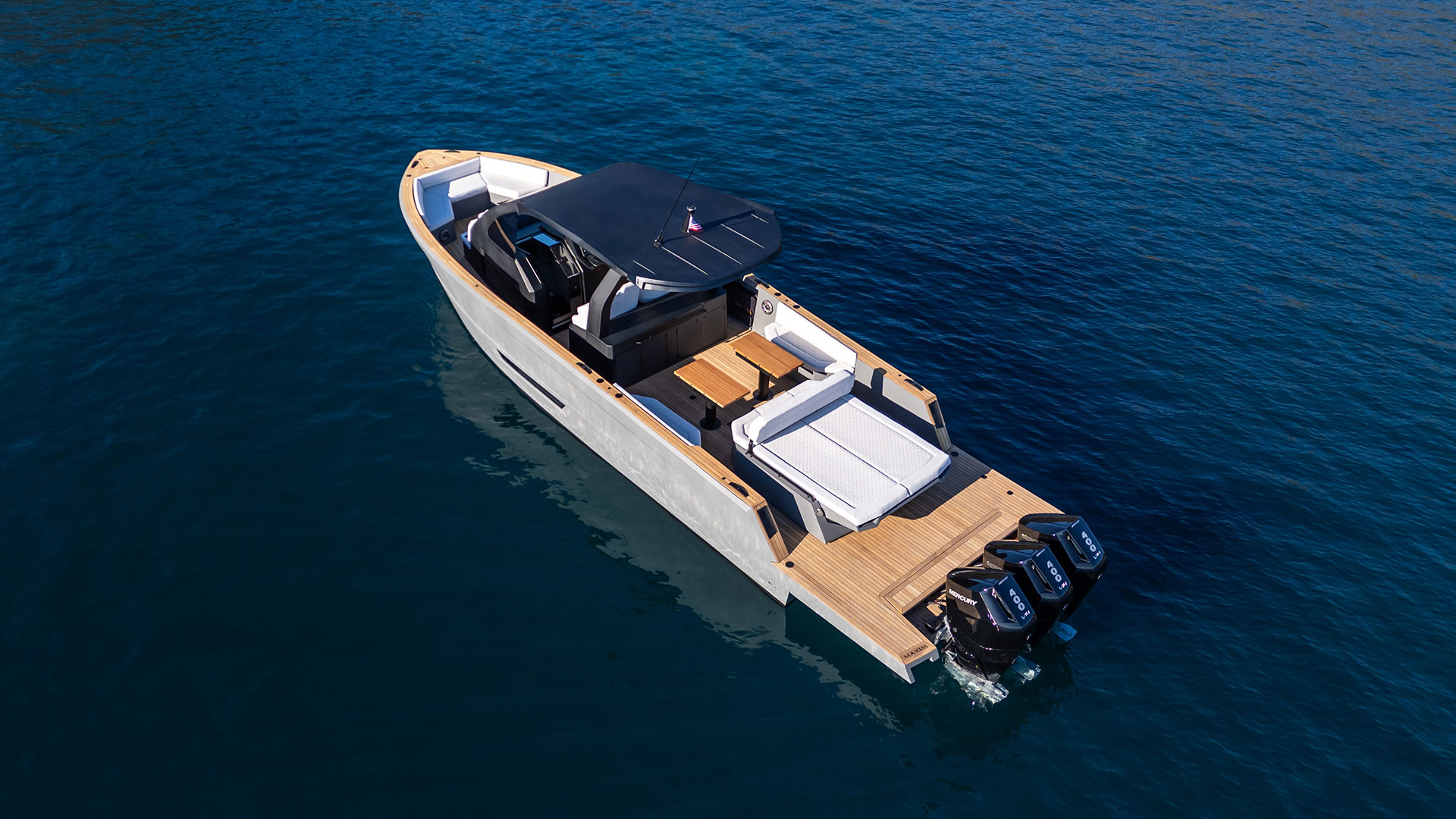 Maxim Yachts Max 44 R è un daycruiser pensato per il mercato americano, con design di Alex Cherigny e ingegneria dello studio Isonaval, progettato per raggiungere i 51 nodi di velocità massima grazie a una tripla motorizzazione fuoribordo da 1.200 cavalli totali firmata Mercury Verado. In opzione ci saranno tre Yamaha da 450 cavalli.