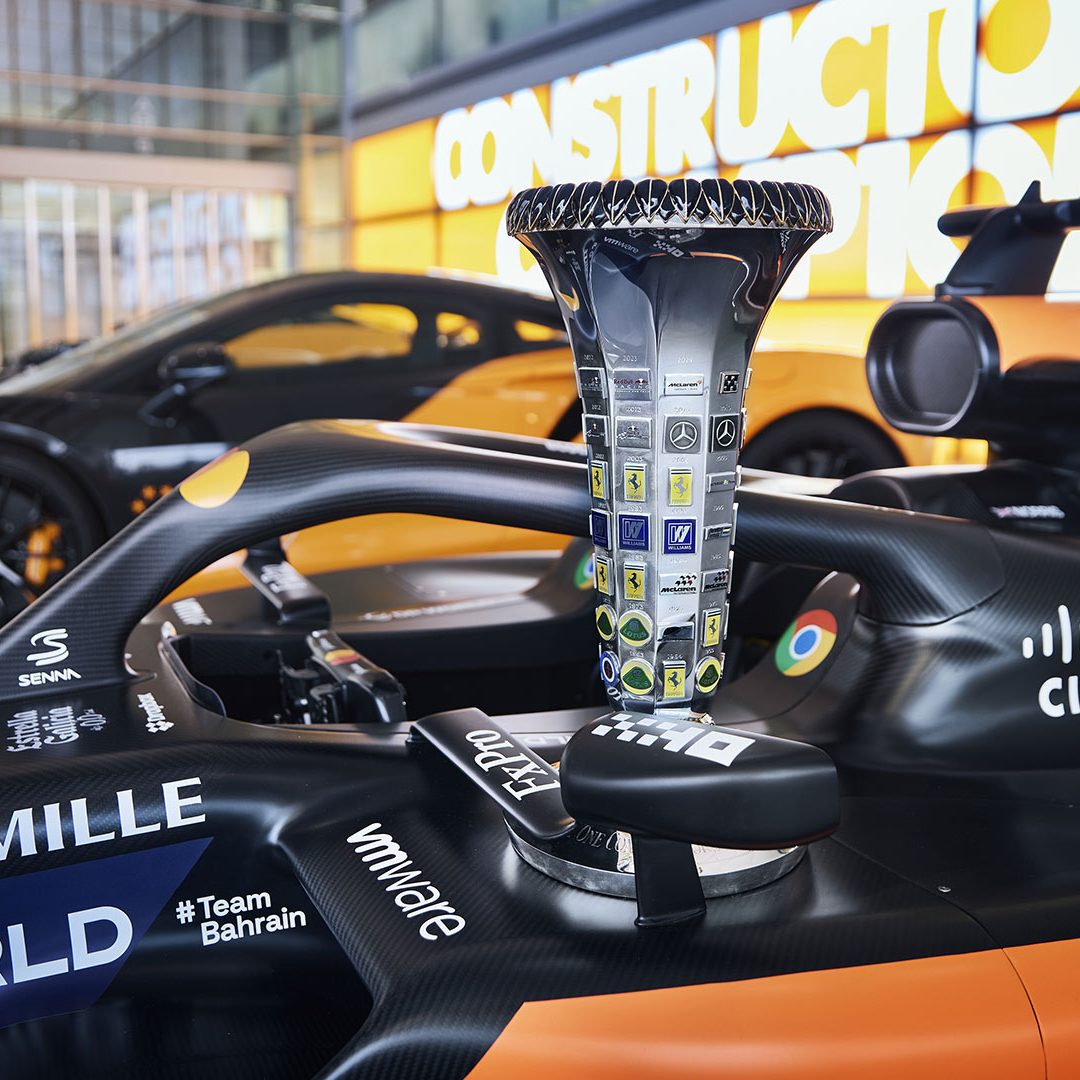 Aperta la portiera si notano: il Visual Carbon Fiber Extended Still Cover sul lato del guidatore con la firma dei rispettivi piloti e il logo Champions’Laurel sul poggiatesta del sedile nonché una targhetta identificativa che incorpora una sezione originale della carrozzeria in fibra di carbonio direttamente proveniente da una vettura MCL38. Nell’area di stivaggio del cofano, possiamo trovare una targhetta in cui sono stati riportati i giri veloci, le vittorie e le pole position ottenute lo scorso anno.