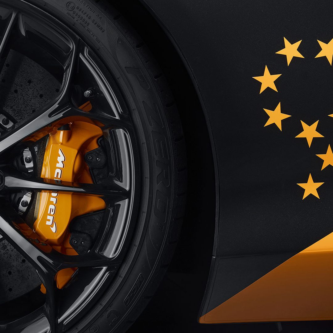 La livrea riprende i colori classici McLaren F1, ovvero il Papaya Orange e Antracite, con i loghi Champions’Laurel e Nine-Star. Entrambi i modelli saranno dotati di battitacco in fibra di carbonio personalizzati con la firma dei piloti Lando Norris ed Oscar Piastri. Verrà applicata un’ulteriore targhetta con dedica “MCL38” su ogni vettura, che incorpora un pezzo di carrozzeria in fibra di carbonio utilizzata sulla monoposto del 2024. Sono presenti anche dei loghi Champions’Laurel e Nine-Star, con accenti arancioni aggiuntivi, come la striscia sul cofano con il logo Champions’Laurel e le pinze dei freni.